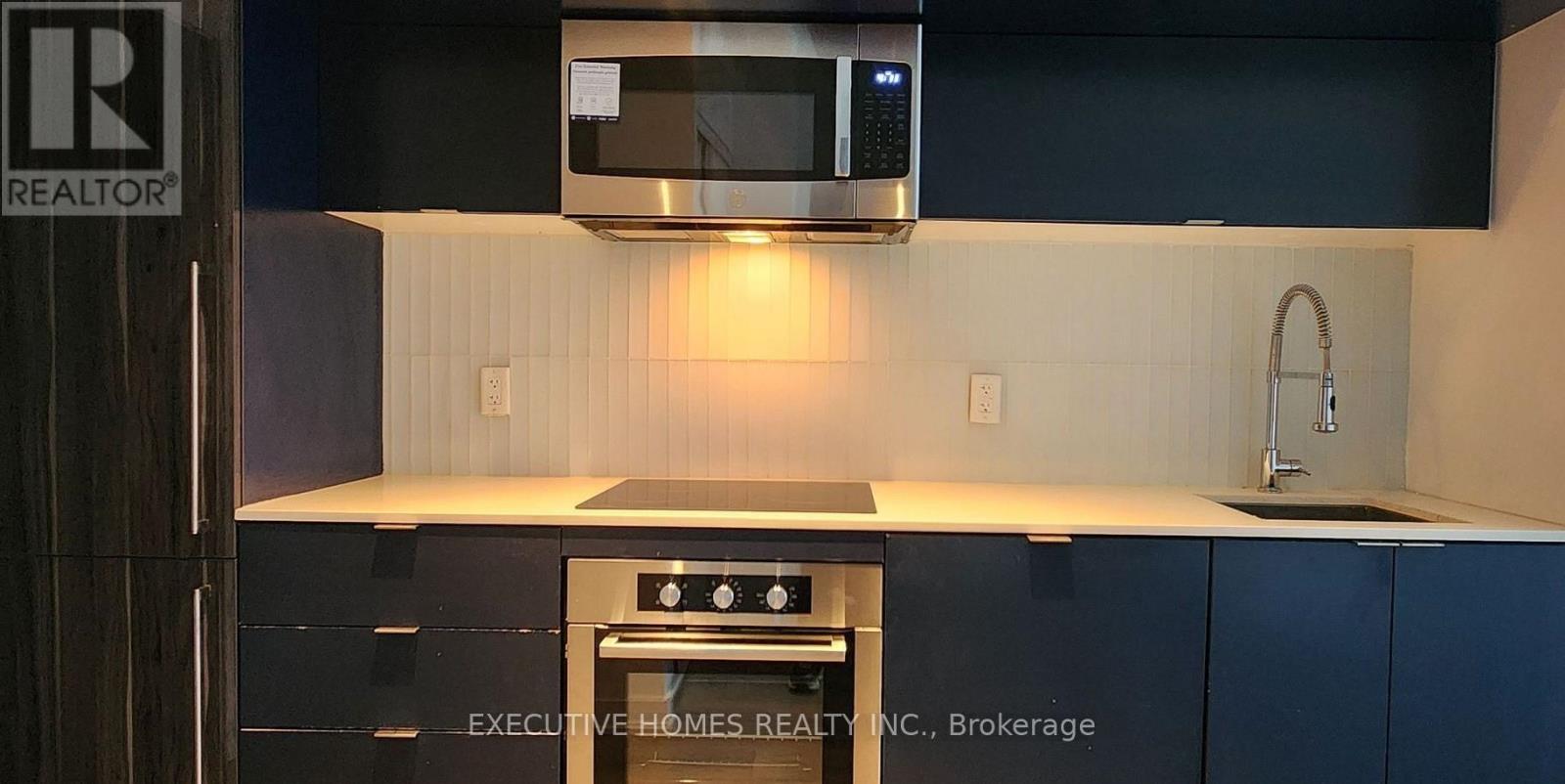 Experience refined urban living at Flo Condos, a boutique 12-storey residence quietly nestled on a charming low-rise street. This beautifully refreshed one-bedroom suite showcases a modern aesthetic with 9-foot ceilings, sleek laminate flooring throughout, and a private balcony for added comfort.The designer kitchen is both stylish and functional, featuring stainless steel appliances including a built-in fridge, brand new cooktop, oven, and microwave/hood fan. A stone countertop and glass tile backsplash complete the contemporary look. The unit includes a convenient front-load washer and dryer - truly move-in ready. Residents enjoy access to premium amenities such as two rooftop terraces, a party room, a fully equipped fitness centre, and visitor parking. Perfectly located just steps to the subway and within walking distance to Hullmark Centre, Service Canada, restaurants, and the library, this home offers an exceptional blend of convenience, comfort, and modern living. (id:64974)