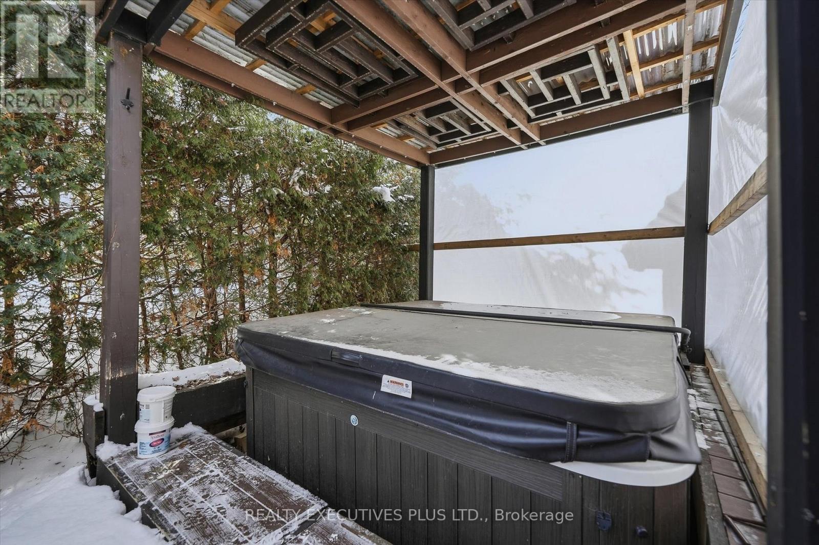 Offered for the first time by the original owner, this extensively updated 3-bedroom home sits on a premium pie-shaped lot with an exceptionally spacious backyard designed for true outdoor living. With 1,551 sq.ft. above grade plus a fully finished basement, this property delivers the perfect balance of comfort, function, and lifestyle. Step outside to your private spa-inspired retreat featuring a covered deck with TV, hot tub, wood-burning sauna, and firepit - an ideal setting for entertaining or relaxing year-round. Inside, the fully renovated 2021 kitchen is a standout, showcasing a gas stove with pot filler, leather-finish granite countertops, abundant storage, built-in dining area, and quality finishes throughout. The main floor bathroom has been fully remodeled. Upstairs, the spacious primary bedroom offers cheater access to a beautifully updated bathroom complete with a walk-in shower and convenient laundry area. Two additional bedrooms are generously sized. The fully finished basement adds outstanding versatility with a Murphy bed, bar area for entertaining, and a stunning 4-piece bathroom (2025) featuring a freestanding tub and heated floors. Major upgrades include heat pump, furnace, roof shingles with lifetime warranty, siding, fascia and soffit, select windows and doors, and full kitchen and bathroom remodels in 2021. All appliances, hot tub, sauna, central vacuum, and window blinds are included.Click the brochure link button to explore the complete list of upgrades, inclusions and detailed improvements made over the years. Move-in ready and meticulously maintained, this home truly has it all. (id:64974)