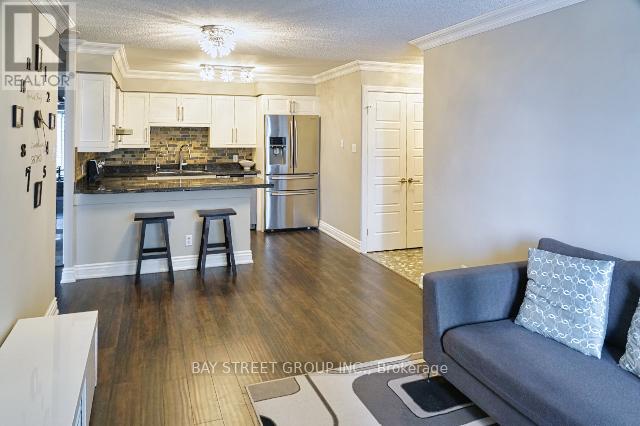 Prime location! Beautifully renovated large One-bedroom condo offers over 650 Sf in the heart of North York. Offering a spacious and functional layout that perfectly blends style, comfort, and convenience. This bright unit features an open-concept living and dining area enhanced with elegant crown moulding throughout-ideal for both relaxing and entertaining. Large windows bring in abundant natural light, creating a warm and inviting atmosphere. The tastefully renovated kitchen showcases premium finishes, including stone countertops, stainless steel appliances, stylish backsplash, and quality cabinetry that combines both style and functionality. The updated bathroom is beautifully finished with a modern glass shower, upgraded fixtures, and a sleek vanity, creating a refined and contemporary space. The generously sized bedroom provides comfort and relaxation, while the oversized balcony-accessible from both the living room and bedroom-offers the perfect outdoor space to relax and enjoy city views. Located just steps from the highly ranked Earl Haig Secondary School, and within walking distance to the subway, Mel Lastman Square, library, community center, shops, and restaurants. Easy access to major highways . An exceptional opportunity to own a beautifully upgraded home featuring high-quality materials in one of North York's most desirable and convenient neighbourhoods. (id:64974)