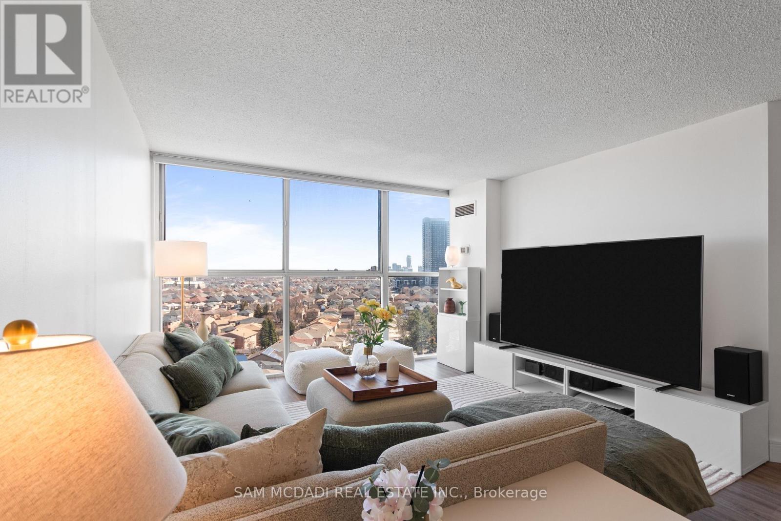 Your search ends here! Welcome to this beautifully upgraded 2 bedroom 2 bathroom condo living in the sought-after Hurontario community. Showcasing a modern interior, this lovely home features a thoughtfully designed open concept layout, elegant finishes, and a bright and airy atmosphere perfect for both everyday living and entertaining. The spacious living and dining areas flow seamlessly into the stylish kitchen, which features stainless steel appliances and a custom stone backsplash, while floor-to-ceiling windows fill the home with natural light. Both bedrooms are generously sized with the primary retreat offering a walk-in closet and a private 4pc ensuite for added comfort and convenience. Every detail has been carefully curated to deliver a refined, move-in ready experience. It doesn't end there; heat, hydro, and water are included in your monthly maintenance fees, providing ease and peace of mind. Enjoy resort-style living with exceptional building amenities including a swimming pool, hot tub, fully equipped gym, and 24/7 concierge service. Perfectly located, you're just minutes from Square One Shopping Centre, Heartland Town Centre, great restaurants, several grocery stores, parks, schools, and transit options-including the future Hurontario LRT-with easy access to highways 403, 401, and QEW-making commuting a breeze. Complete with 1 underground parking space and a convenient ensuite locker, this exceptional unit is truly an absolute must-see! (id:64974)