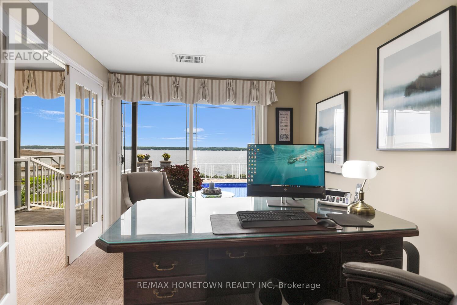 Perched on the banks of the St. Lawrence River, this impeccably maintained all-brick/stone bungalow awaits you. Step inside this deceptively modest façade and discover a 3,100 sq ft, 3 + 1-bedroom, 3-bath retreat on the banks of the St. Lawrence River complete with a double-car garage, in-ground pool, and full walk-out lower level that's primed for an in-law suite or multifamily setup. Key Features: Waterfront Wow-Factor Instant river views greet you the moment you cross the threshold. Expansive, low-maintenance decks (one covered with an adjustable awning) overlook the pool and riverfront. Private dock, perfect for your boat or evening sunset sessions. Main Level Living Open living/dining layout divided by a gas fireplace, both rooms opening onto the deck; chef's kitchen with abundant cabinetry, generous counter space, and patio access - Primary suite with built-in closets, private deck access, and 3-piece ensuite - Two additional bedrooms and a 4-piece bath round out this level. Lower-Level Versatility Fourth bedroom and 3-piece bath-ideal guest or nanny quarters. Media room and exercise room, each with built-in storage. Cozy family room centered around a gas fireplace-home office life has never been so distracting! Laundry room plus a dedicated hot-tub room for year-round relaxation - Outdoor & Lot Highlights - Professionally interlocked driveway and newly planted gardens showcase true pride of ownership. - The inground pool is ready for summer afternoons, with steps leading directly to your dock. A full walk-out basement offers easy subdivision or suite conversion with a separate entrance. Everything you've been looking for-space, light, luxury, and waterfront lifestyle-is here. Come see how deceiving exteriors can set the stage for something truly extraordinary. (id:64974)