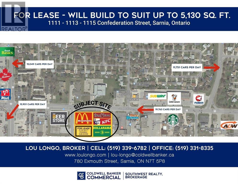 Brand new just completed, up to 5130 square feet available for retail or office space. Put your business front and centre and join McDonalds, Dollarama, KFC and Swan Pizza already in the development. Sarnia’s biggest up and coming corridor with The Beer Store, Subway, and Mary Brown’s adjacent, and neighbouring Wendy’s and Starbucks under construction now. Units can be demised for smaller square footage. Lease price is per square foot per year plus TMI estimated at $12 per square foot per year. (id:64974)