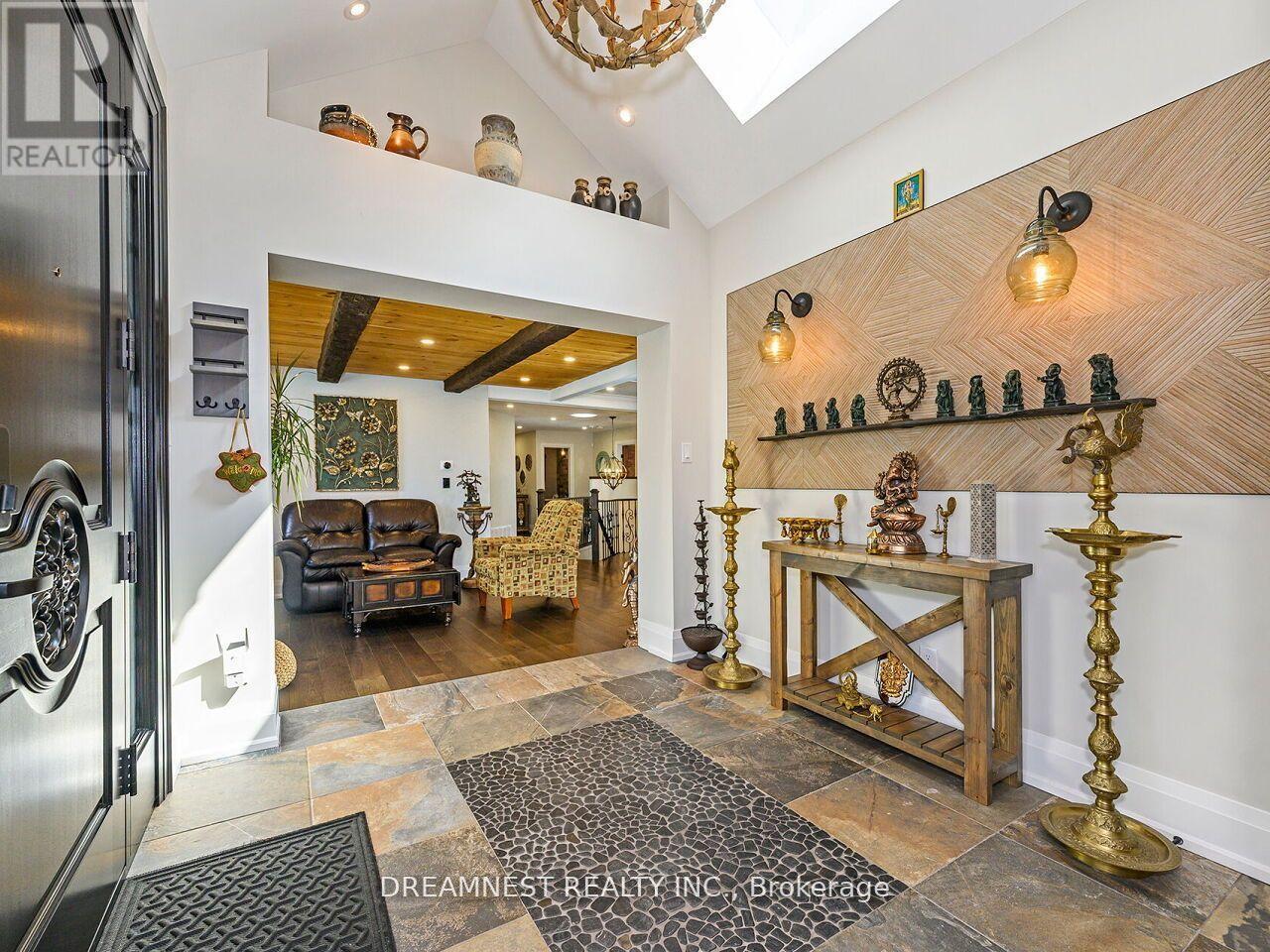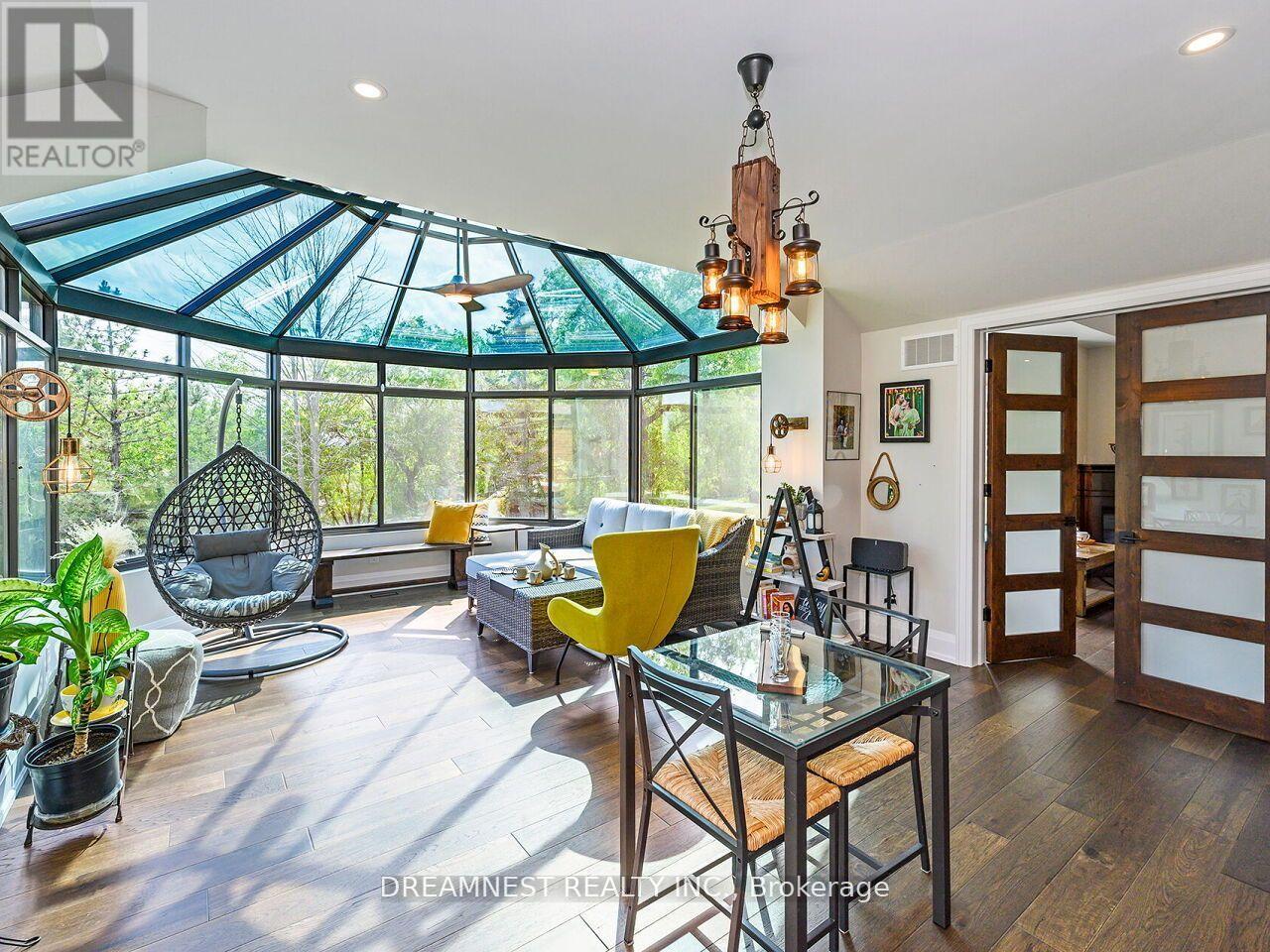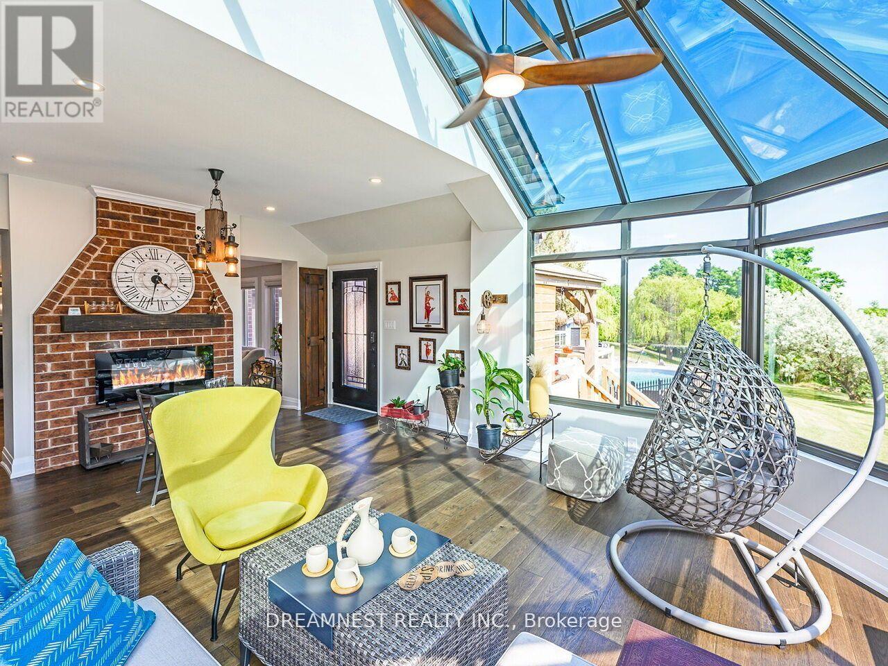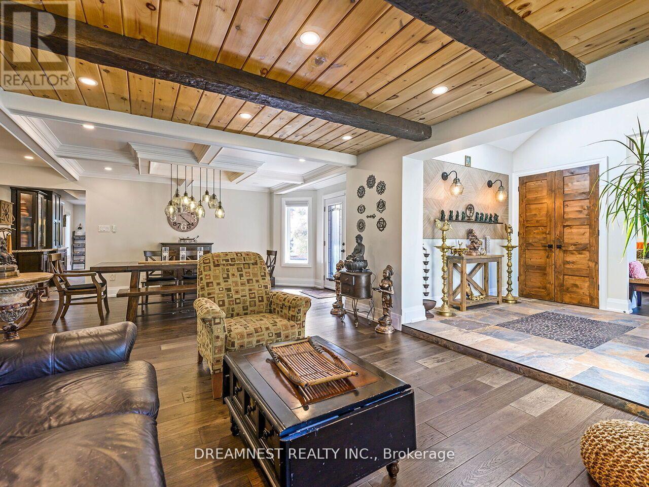 Nestled on a lush 1.67 acre lot in scenic Campbellville, this fully renovated 5 bedroom, 6.5 Bathroom bungalow perfectly blends contemporary farmhouse charm with luxurious resort-style living. Meticulously designed, this turnkey estate delivers an exceptional family estate and entertainer's paradise. Boasting over 6000 sq. ft. of finished living space, the gourmet chef's kitchen showcase top-of-the-line Thermador appliances, a Bosch built-in espresso machine, Miele double ovens, dual dishwashers, refined under-cabinet lighting - all seamlessly connected to a bright four-season sunroom, perfect for year-round enjoyment. The expansive primary suite provides a private sancturay featuring ensuite with dual rain shower heads with premium finishes. Main floor includes a dedicated spa wing with heated inground salt-water pool, hot-tub, sauna and fitness area with full bath, delivering an exclusive at-home wellness retreat. A private in-law suite offering a separate living room, bedroom with ensuite bath, and walk-in closet, perfect for multigenerational living or guest accommodation. The fully finished lower level includes a custom home theatre, bespoke live-edge bar, additional full bathroom, cedar-lined storage room, and secondary laundry - enhanced by designer millwork, barn doors, skylights, and upscale finishes throughout. Smart home technology is integrated via the Control4 system, offering complete automation and control of indoor and outdoor lighting as well as outdoor audio system, all accessible through a user-friendly app for seamless convenience. The professionally landscaped backyard is a true entertainer's dream, featuring a full outdoor kitchen, covered gazebo lounge, and cozy firepit area, surrounded by mature trees for ultimate privacy. Additional highlights include a detached barn, expansive manicured green spaces and a spacious three-car garage. (id:64974)