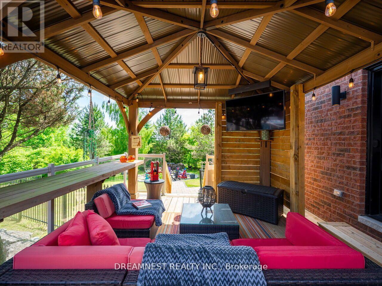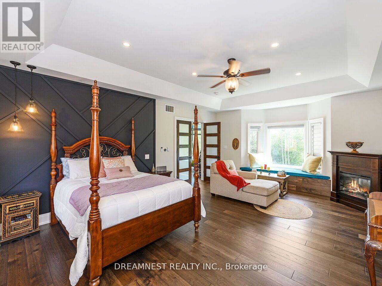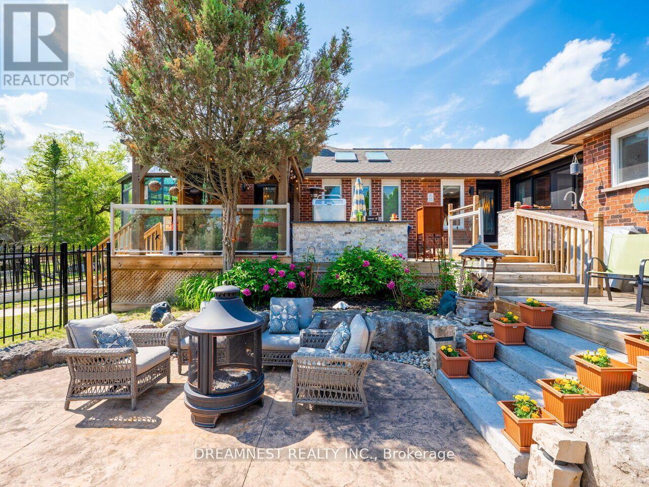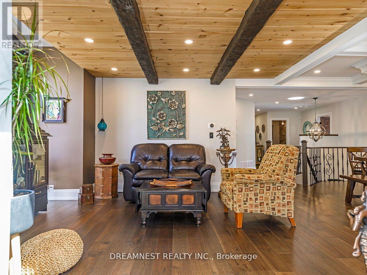 Nestled on a lush 1.67 acre lot in scenic Campbellville, this fully renovated 5 bedroom, 6.5 Bathroom bungalow perfectly blends contemporary farmhouse charm with luxurious resort-style living. Meticulously designed, this turnkey estate delivers an exceptional family estate and entertainer's paradise. Boasting over 6000 sq. ft. of finished living space, the gourmet chef's kitchen showcase top-of-the-line Thermador appliances, a Bosch built-in espresso machine, Miele double ovens, dual dishwashers, refined under-cabinet lighting - all seamlessly connected to a bright four-season sunroom, perfect for year-round enjoyment. The expansive primary suite provides a private sancturay featuring ensuite with dual rain shower heads with premium finishes. Main floor includes a dedicated spa wing with heated inground salt-water pool, hot-tub, sauna and fitness area with full bath, delivering an exclusive at-home wellness retreat. A private in-law suite offering a separate living room, bedroom with ensuite bath, and walk-in closet, perfect for multigenerational living or guest accommodation. The fully finished lower level includes a custom home theatre, bespoke live-edge bar, additional full bathroom, cedar-lined storage room, and secondary laundry - enhanced by designer millwork, barn doors, skylights, and upscale finishes throughout. Smart home technology is integrated via the Control4 system, offering complete automation and control of indoor and outdoor lighting as well as outdoor audio system, all accessible through a user-friendly app for seamless convenience. The professionally landscaped backyard is a true entertainer's dream, featuring a full outdoor kitchen, covered gazebo lounge, and cozy firepit area, surrounded by mature trees for ultimate privacy. Additional highlights include a detached barn, expansive manicured green spaces and a spacious three-car garage. (id:64974)