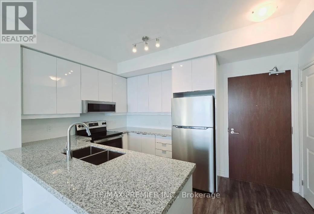 Welcome to Unit 1114 at 1050 Main Street in the Art on Main condominium. This well-designed 2-bedroom plus den, 2-bathroom suite features 10-foot ceilings and open views from the 11th floor. The kitchen offers quartz countertops, stainless steel appliances, and ample cabinetry, overlooking the open-concept living and dining area with a walk-out to a private balcony. The primary bedroom includes a walk-in closet and a 3-piece ensuite with a glass shower. A second full bathroom, a separate den ideal for a home office, and in-suite laundry provide added functionality. One underground parking space and one locker are included. Building amenities include a concierge, fitness centre, outdoor pool, party room, and rooftop terrace. Conveniently located close to shopping, restaurants, parks, and transit, with easy access to major routes. (id:64974)