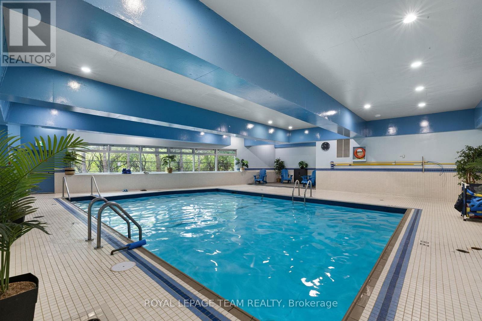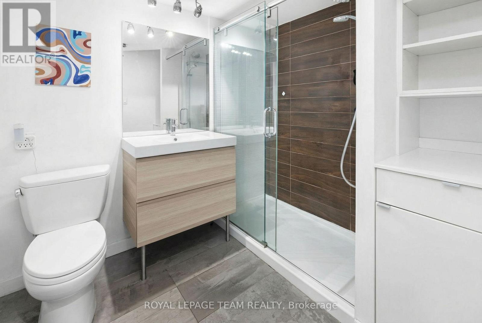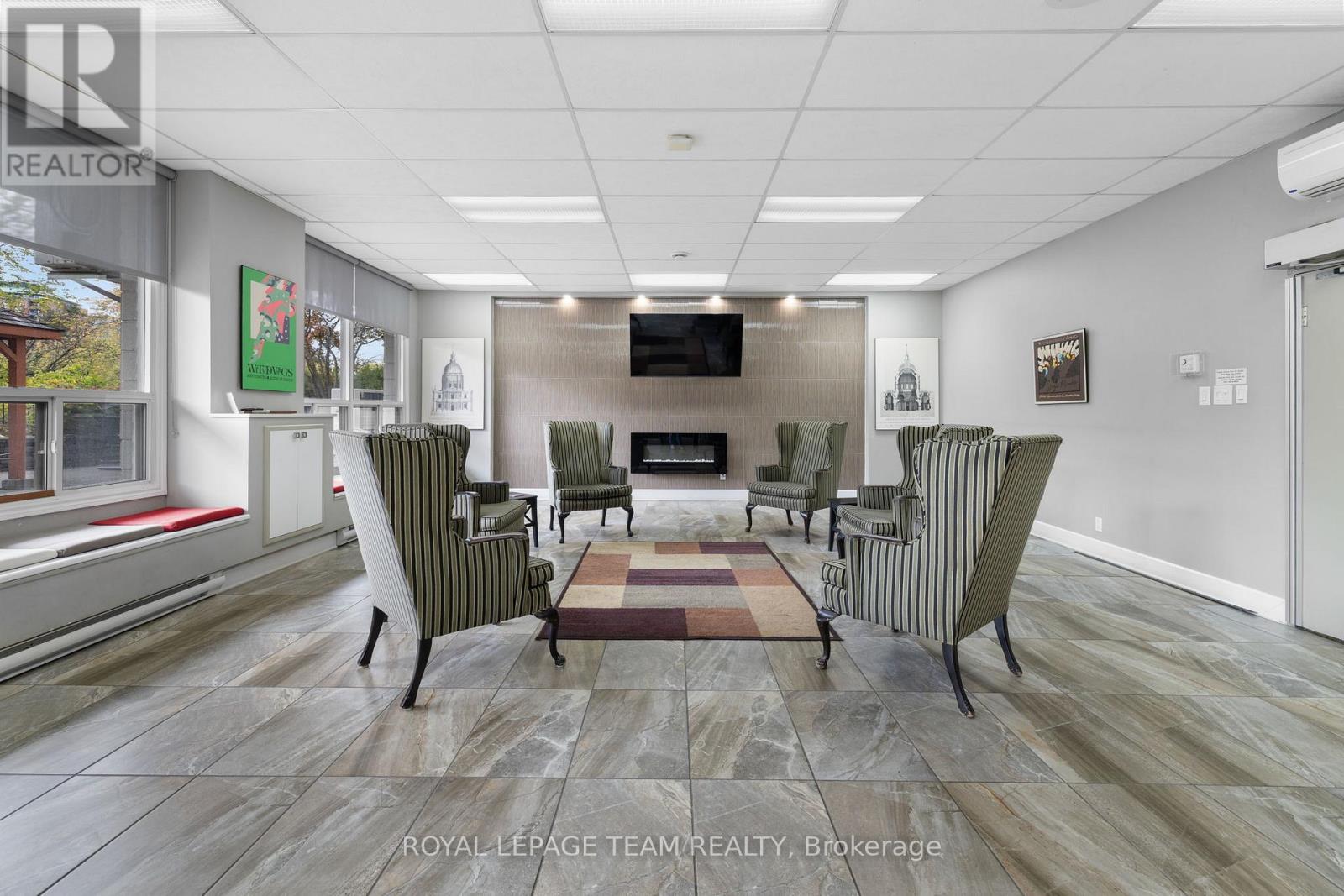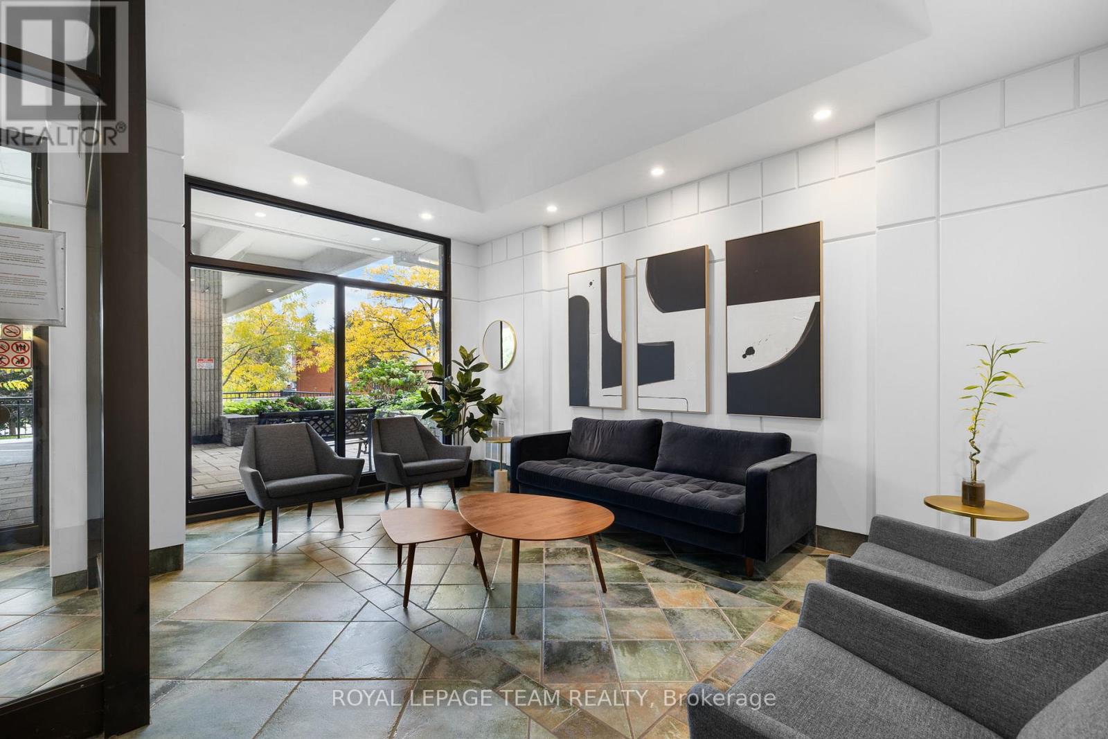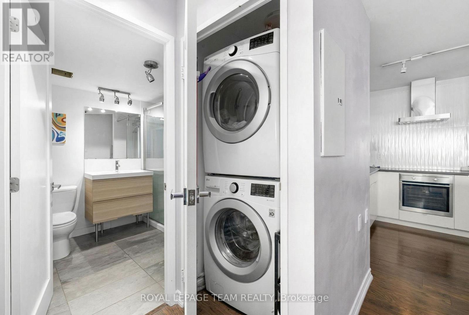 Welcome to 40 Landry Street, an updated 1 bed, 1 bath condo offering stylish, low-maintenance living in a prime Beechwood. This bright, open-concept unit features a modern white kitchen with quartz countertops, stainless steel appliances, and a large island with breakfast bar seating. Dark hardwood floors flow throughout the living space, complemented by expansive windows and sliding doors leading to a private balcony with unobstructed city views. The spacious bedroom offers excellent natural light, while the updated bathroom includes a glass shower and contemporary vanity. Enjoy the convenience of in-unit laundry, along with the added bonus of underground parking and a storage locker. This well-managed building boasts premium amenities including an indoor pool, sauna, gym, lounge, library, and outdoor terrace. Ideally located within walking distance to grocery stores, coffee shops, transit, parks, and the Ottawa River. (id:64974)