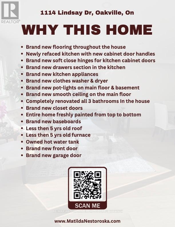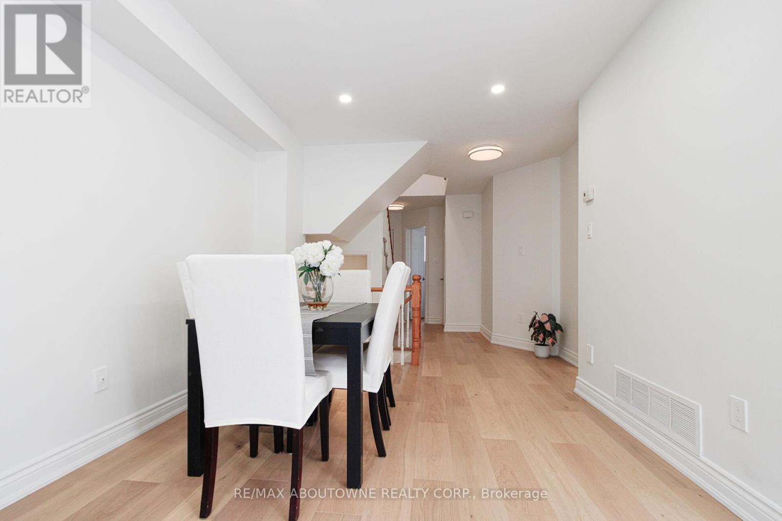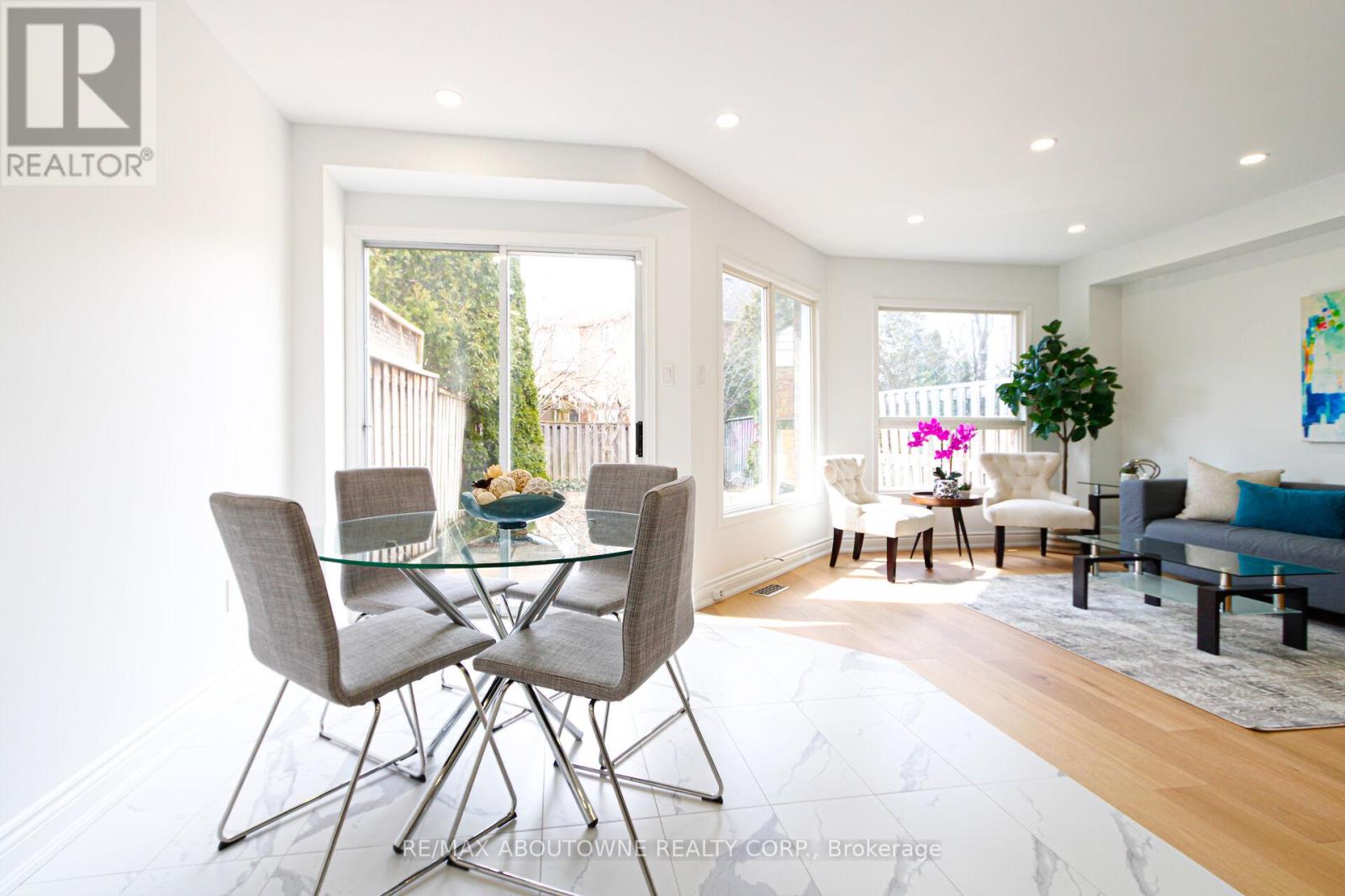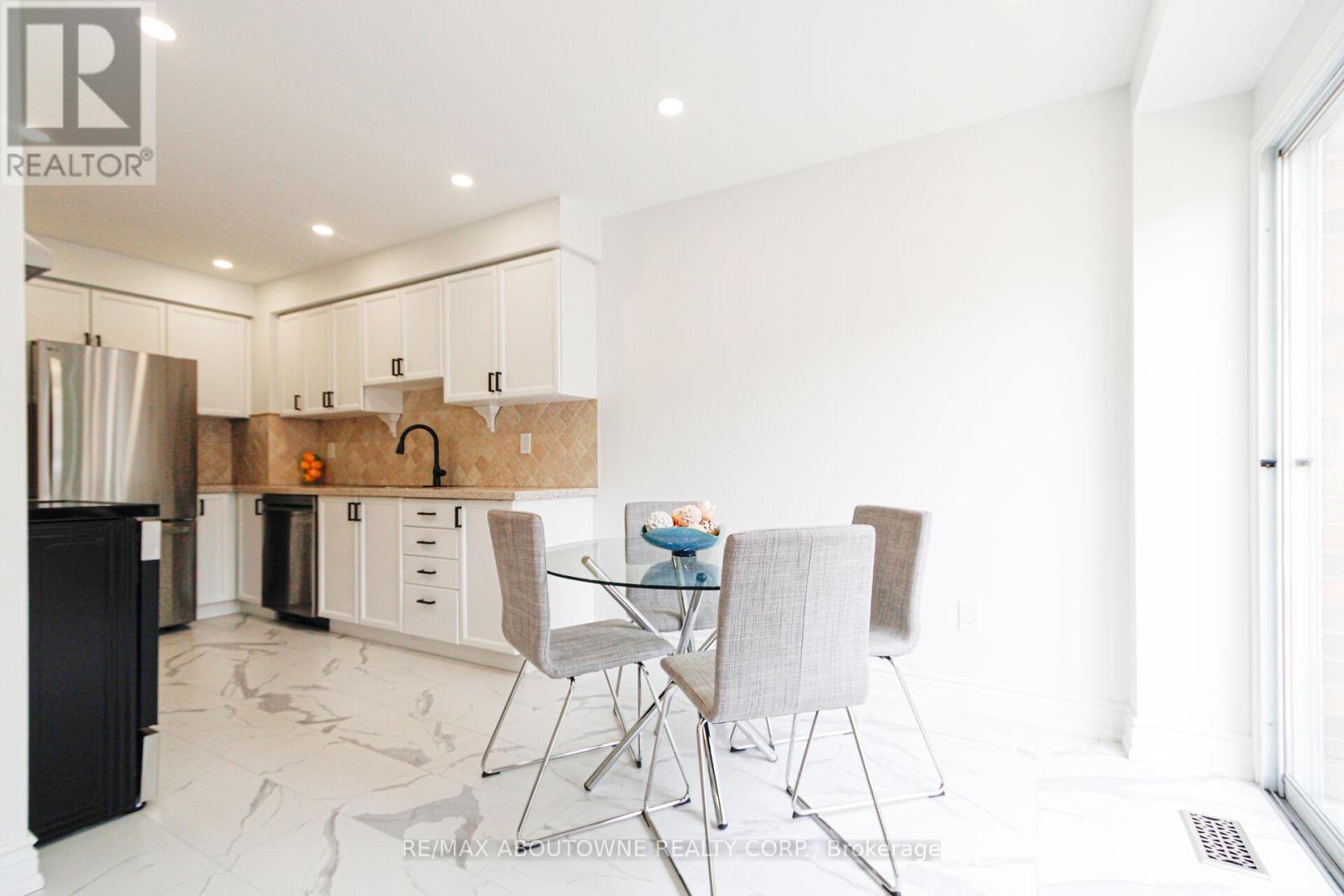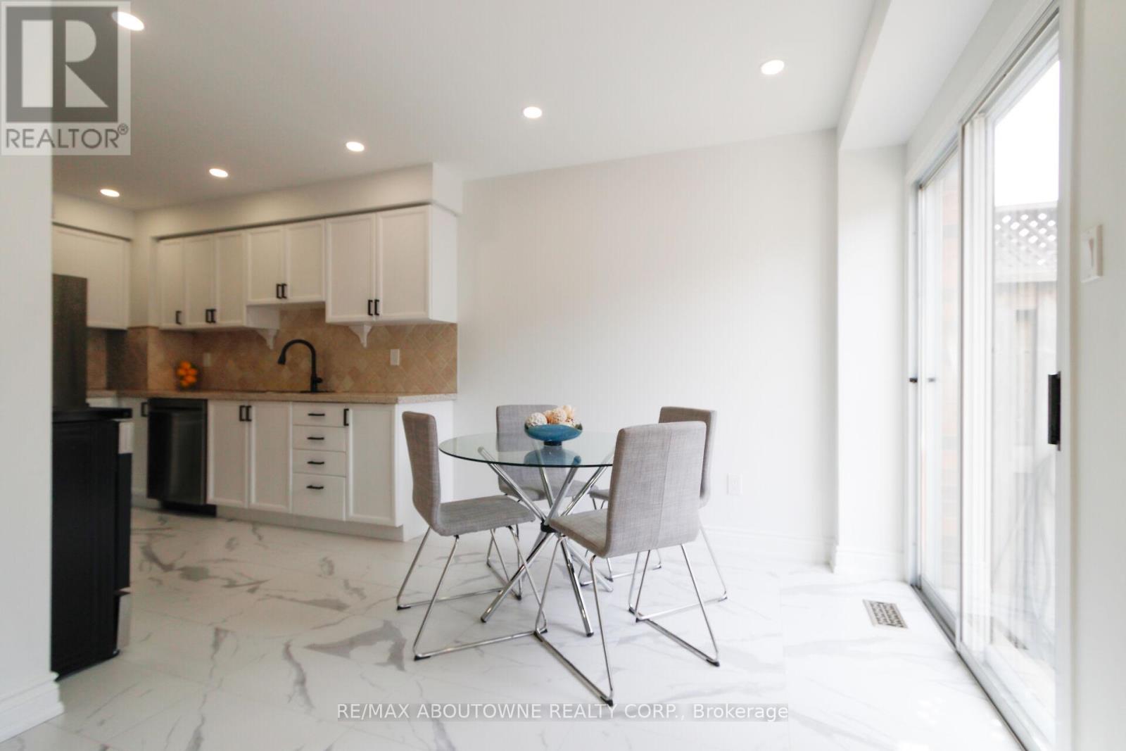Live in Glen Abbey - Walk to Parks, Trails, Shopping & great Schools! Beautifully updated townhouse in the highly sought-after Glen Abbey neighbourhood-known for its top-rated schools, family-friendly atmosphere, and unbeatable convenience. An ideal setting for growing families!This fully renovated and freshly painted home showcases a stunning eat-in kitchen featuring soft-close cabinetry, quartz countertops, stylish backsplash, and brand-new appliances. The main floor is enhanced with new pot lights, modern baseboards, and upgraded flooring throughout.Enjoy completely renovated bathrooms, new carpeting on the upper level and in the basement, and thoughtful upgrades at every turn. The spacious primary bedroom offers a versatile lounge area-perfect for a home office, nursery, or personal gym-along with his-and-hers closets with new doors and a beautifully updated ensuite.Two additional generously sized bedrooms easily accommodate queen-size beds or larger. Additional upgrades include new closet doors, front door, garage door, and a brand-new washer and dryer. Roof approximately 4 years old, plus a newer furnace-providing peace of mind for years to come.Step outside and walk to Old Abbey Lane Park, where you can enjoy scenic trails, a playground, and a splash pad for kids. Just steps to Dorval Crossing offering everyday conveniences including grocery stores, restaurants, shopping, medical offices, and more. Minutes to Glen Abbey Golf Club, QEW, Oakville GO Station, downtown Oakville, and the lake. (id:64974)