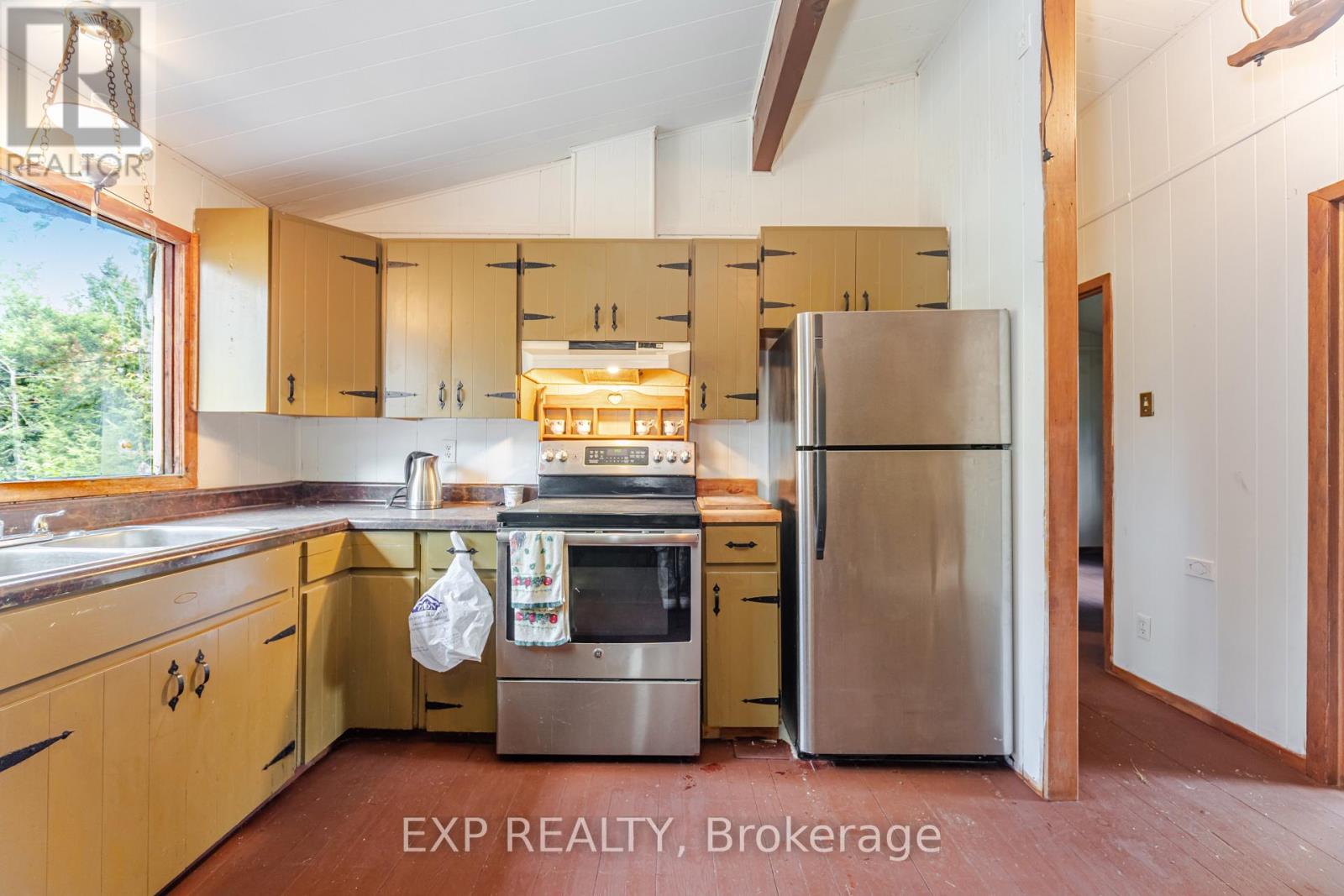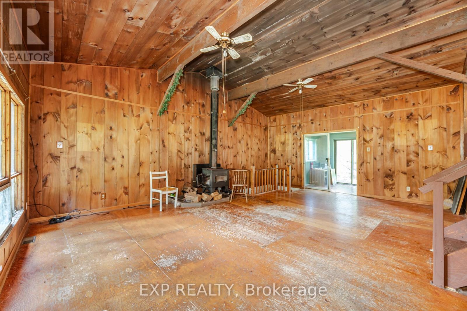 Welcome to your own peaceful retreat! Nestled on a breathtaking 10-acre estate, this delightful 3-bedroom, 2-bath bungalow offers the perfect blend of comfort and nature. Enjoy the tranquil pond, on-site dog kennel, and park-like surroundings framed by mature trees. Inside, you'll find soaring cathedral ceilings in the spacious living room, creating a bright, open atmosphere ideal for relaxing or entertaining. The eat-in kitchen overlooks the living area, making it easy to stay connected with family and guests. Three cozy bedrooms and two full bathrooms offer ample space, while the unfinished basement presents endless possibilities for your personal touch. A cold cellar adds convenient storage, and the rustic wood stove (sold as-is) brings added charm. The expansive driveway offers plenty of parking for you and your guests. Whether you're strolling along the property's trails or enjoying the quiet from your front porch, this home is a true countryside escape. Walking trails throughout the property, mature landscaping, and total privacy. Don't miss this rare opportunity to own a serene country estate just a short drive from town amenities. (id:64974)
