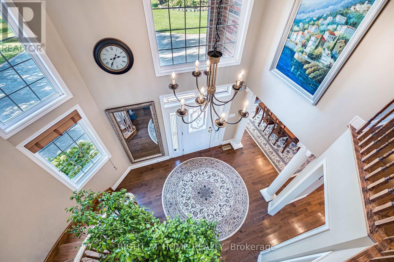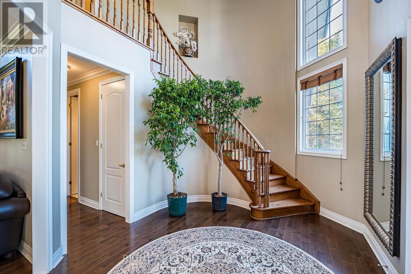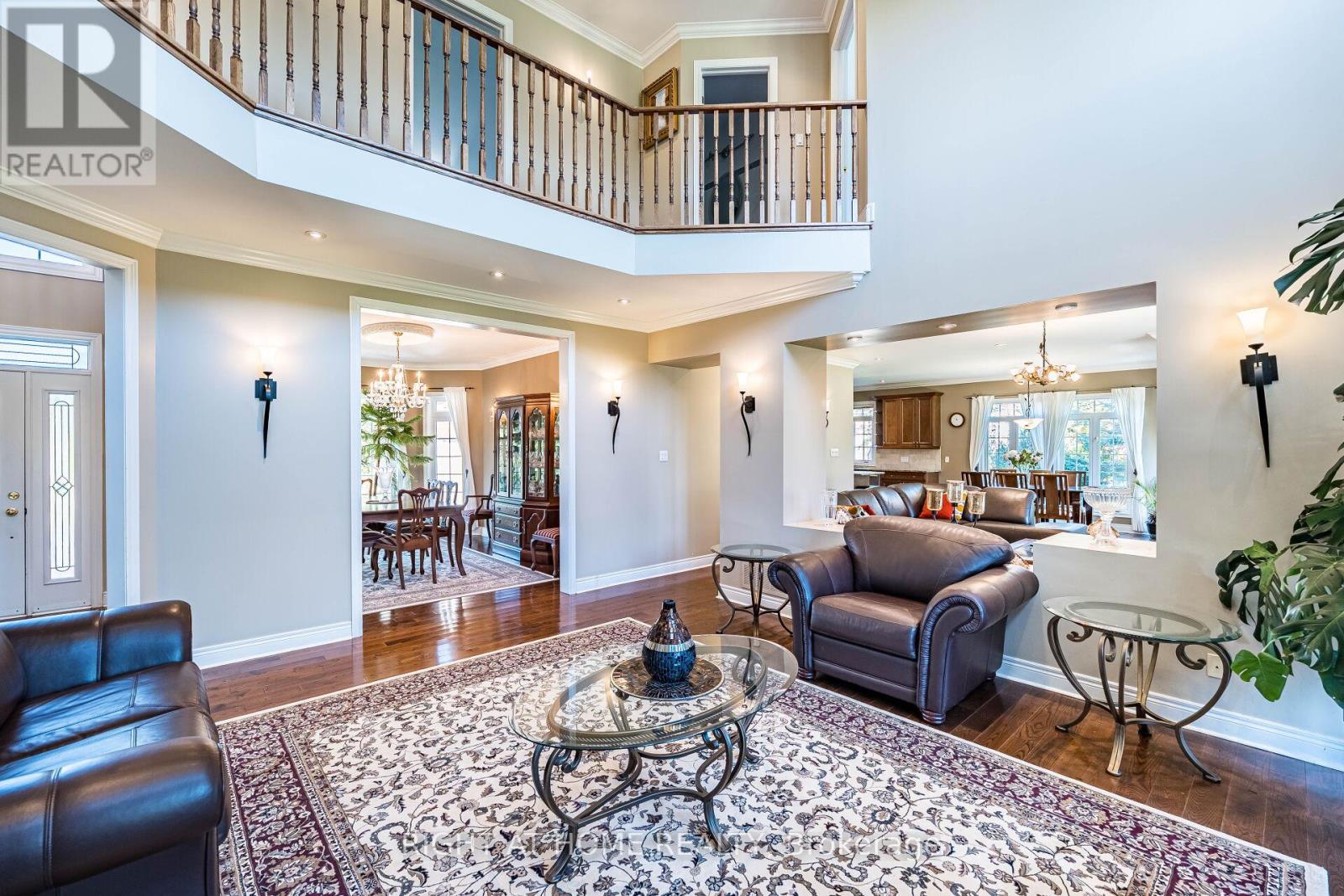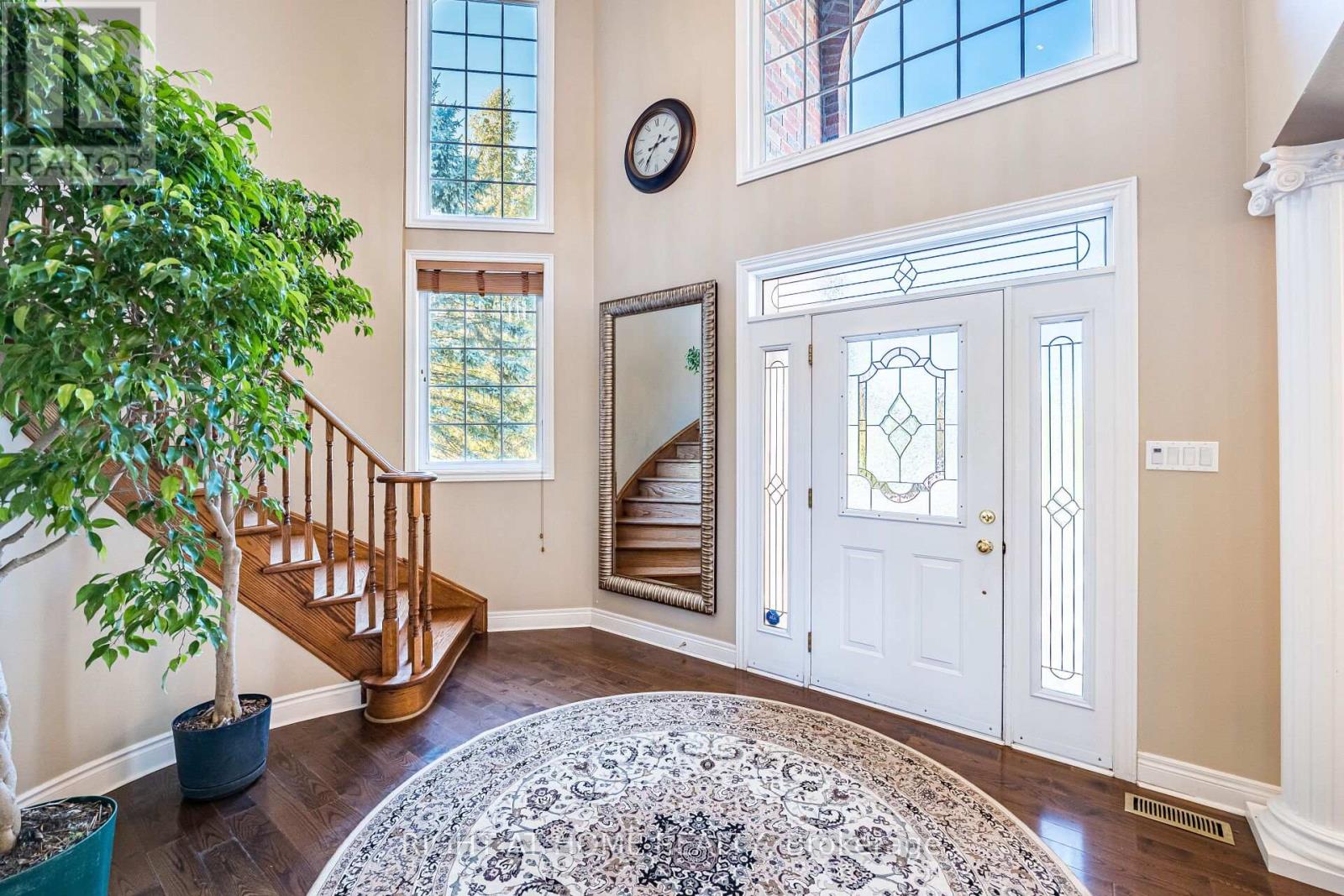 Step into this luxurious 5-bedroom custom-built residence, ideally positioned on a quiet court in the heart of Brookville. Nestled on a breathtaking 2-acre lot, this exceptional Churchill Estates home offers over 4,000 sq ft of elegant living space, privacy, and natural beauty. The main level features a spacious primary suite with a private ensuite, while the heart of the home is an entertainers dream: a chef-inspired kitchen with stainless steel appliances, centre island, and expansive breakfast area that opens to a large deck, perfect for indoor-outdoor living. The beautifully landscaped backyard provides a peaceful retreat surrounded by mature trees. Upstairs, youll find four additional generously sized, light-filled bedrooms, each with walk-in closets. Additional highlights include main floor laundry, a large mudroom, ample closet and storage space, and an oversized driveway with parking for 10+ vehicles. Located just minutes from major highways, this home combines luxury, comfort, and convenience in one of Miltons most sought-after communities. (id:64974)