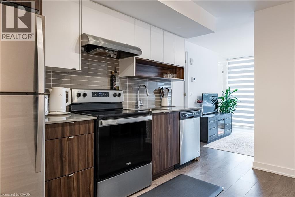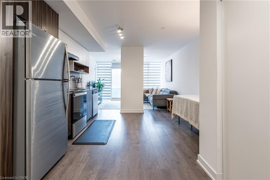 Welcome to Belair Studio Condo, Unit A112, a contemporary residence in the heart of Aldershot offering both convenience and modern comfort. Ideally located just minutes from downtown Burlington, the GO Station, and with quick access to Hamilton, this location is perfect for commuters and those looking to enjoy nearby shops, dining, and waterfront amenities. This thoughtfully designed studio features quality finishes throughout, including stainless steel appliances, in suite laundry, and a private balcony that extends the living space outdoors. The efficient layout offers excellent storage with generous closet space, along with a designated private locker (#239) for additional convenience. Residents enjoy secure underground parking (space #74) and access to desirable building amenities, including a 24 hour concierge, fully equipped fitness centre, and a stylish party room for entertaining. A fantastic opportunity to enjoy low maintenance living in one of Burlington’s most accessible and vibrant communities. (id:64974)