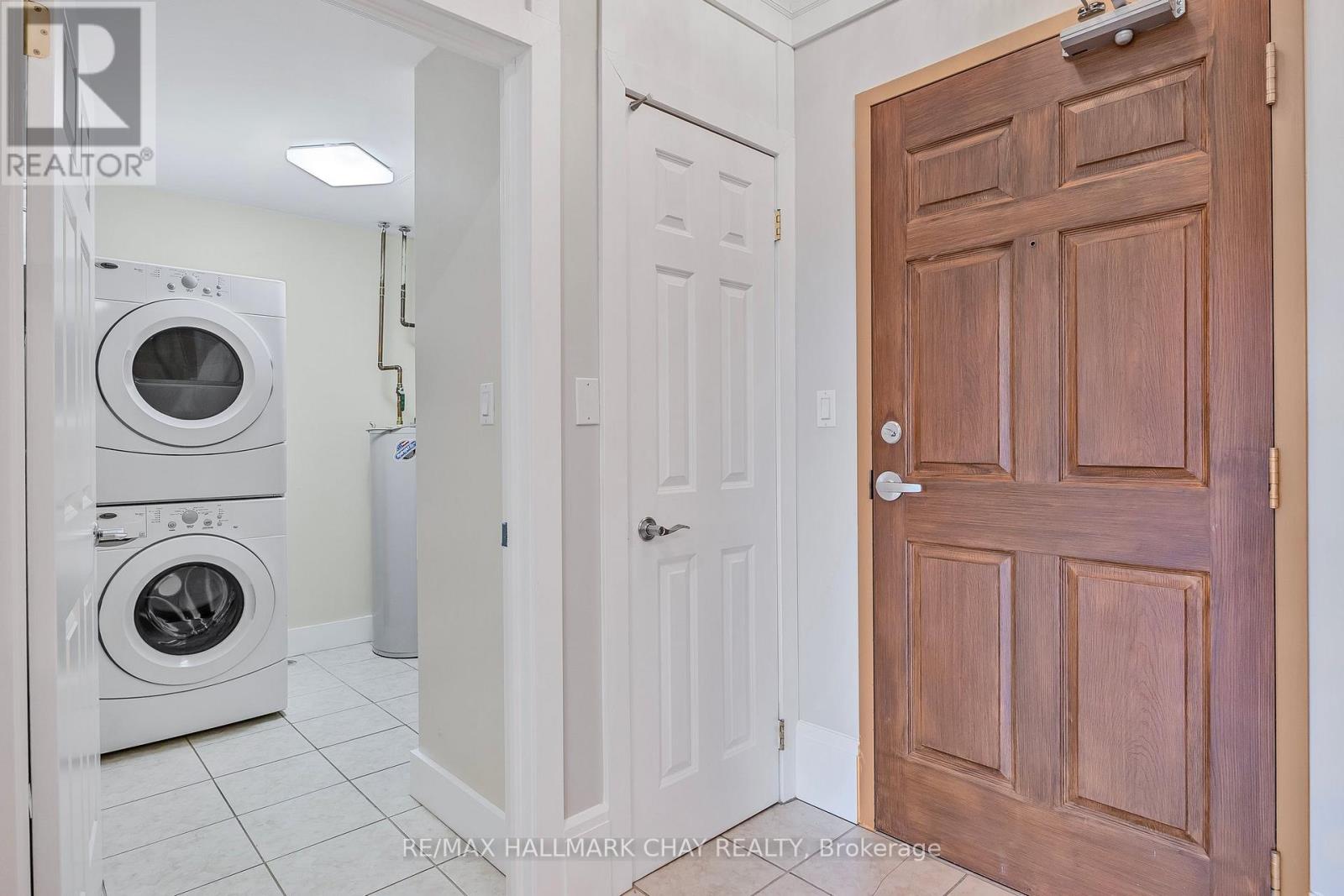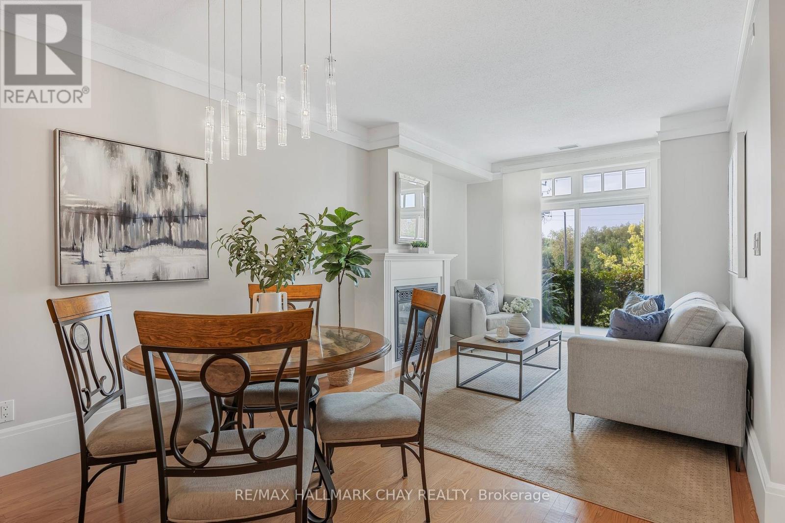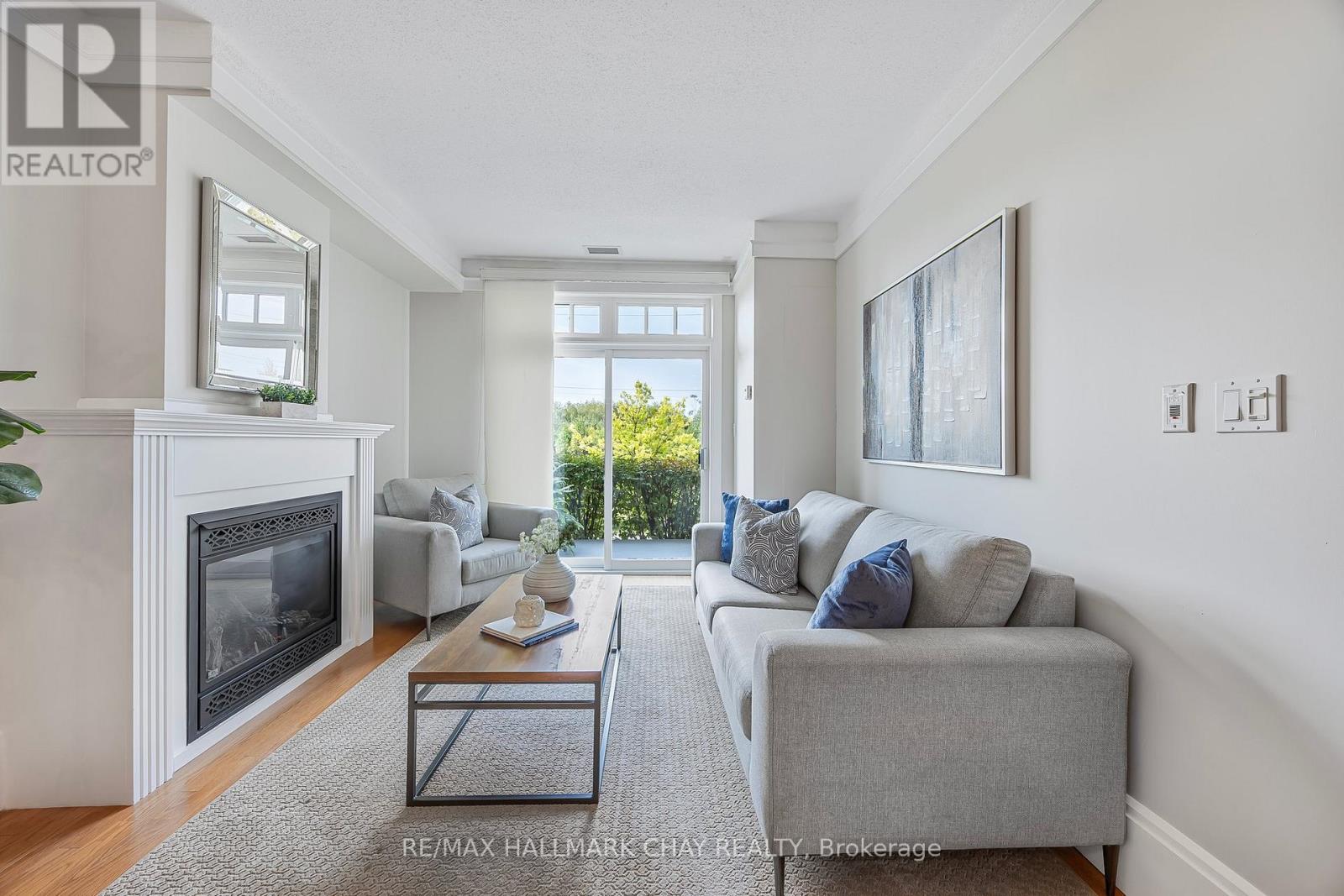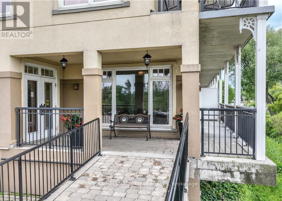 Barrie Condo Corner presents - elegant waterfront living nestled on the serene shores of Lake Couchiching. Own your very own private boat slip and condo unit in Orillia's premiere Elgin Bay Club Condos. This 1 bedroom, 1 bathroom gem boasts granite countertops, gleaming hardwood floors, tall baseboards and exquisite moulding, under the grace of 9ft ceilings. Revel in the abundant natural light, amplifying a bright & spacious ambiance. The open concept unit features a gorgeous living area with a gas fireplace to relax and unwind after a long day. Step out onto your quaint balcony overlooking lush greenery and the Millennium Trail, or entertain atop the rooftop terrace with breathtaking panoramic views of the water. The bedroom is a great size with an oversized closet and a separate walkout to a private patio. Included in the unit for your added convenience is a large laundry room with extra storage. Exclusive amenities include a party room, a private waterfront and heated underground parking. This unit also comes with a rare owned dock (only 25 units in this building) perfect for you to pull your boat right up to while getting to enjoy time outdoors on the water amidst the picturesque setting. For the days you don't want to take your boat out, also included is complimentary kayak storage. The location cant be beat. It is a short walk to Orillia's historic downtown district that features excellent restaurants, grocery, shopping, entertainment and more. It's also right next door to the Royal Canadian Legion. For nature enthusiasts there is direct access to Millennium Trail for year-round hiking and exploring. Your tranquil retreat awaits. (id:64974)