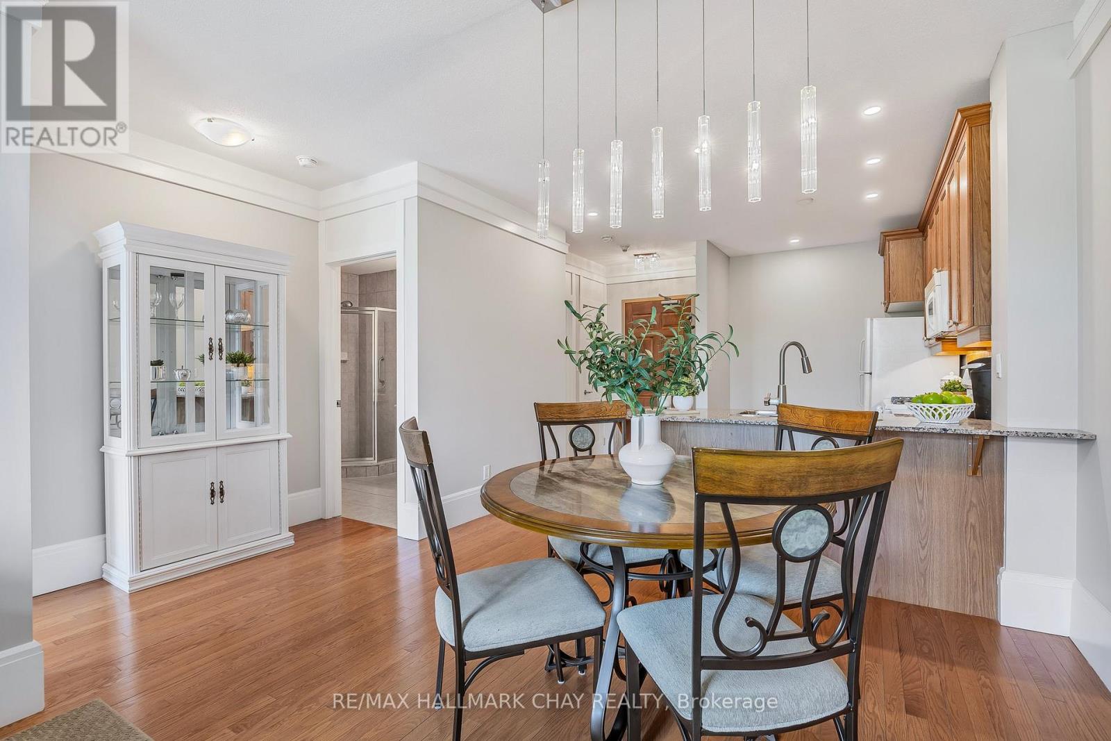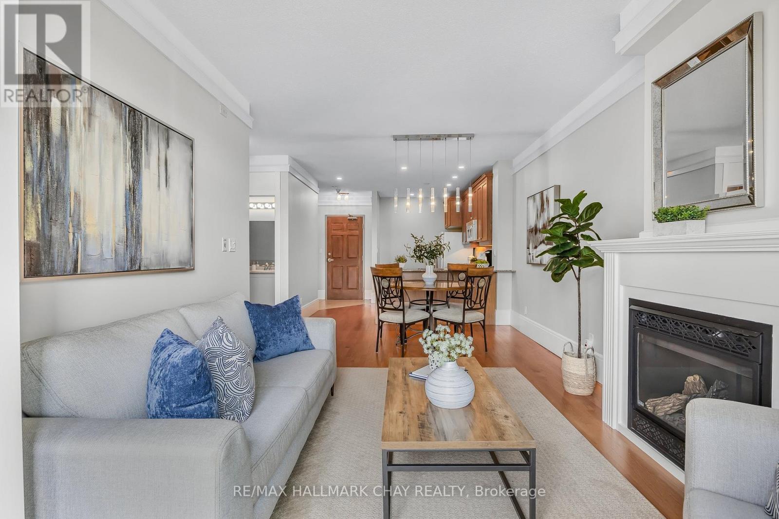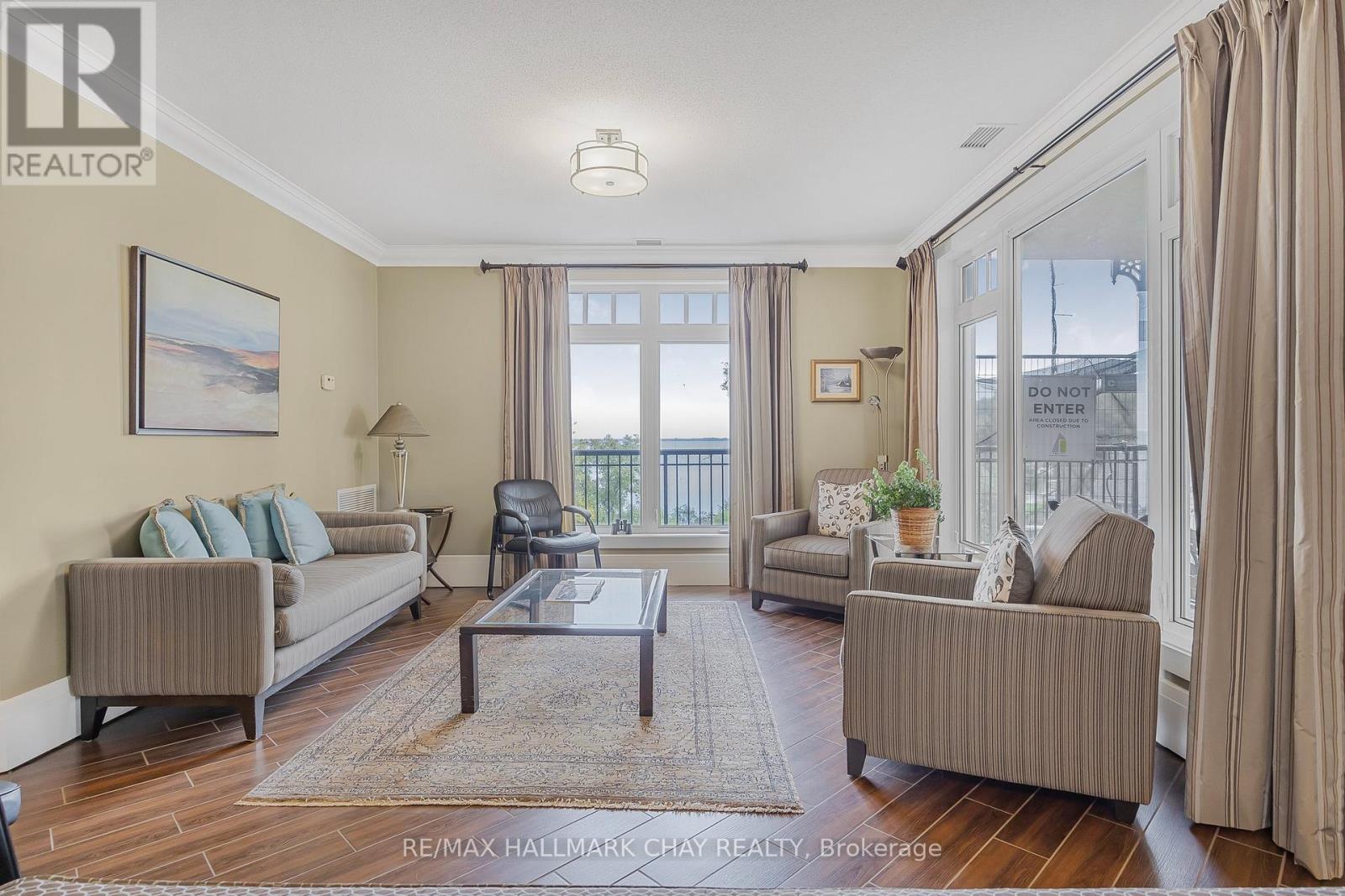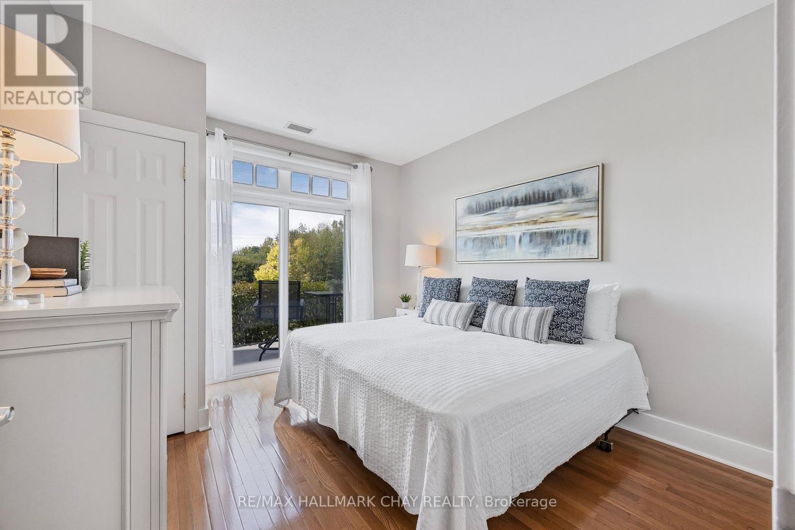 Barrie Condo Corner presents - elegant waterfront living nestled on the serene shores of Lake Couchiching. Own your very own private boat slip and condo unit in Orillia's premiere Elgin Bay Club Condos. This 1 bedroom, 1 bathroom gem boasts granite countertops, gleaming hardwood floors, tall baseboards and exquisite moulding, under the grace of 9ft ceilings. Revel in the abundant natural light, amplifying a bright & spacious ambiance. The open concept unit features a gorgeous living area with a gas fireplace to relax and unwind after a long day. Step out onto your quaint balcony overlooking lush greenery and the Millennium Trail, or entertain atop the rooftop terrace with breathtaking panoramic views of the water. The bedroom is a great size with an oversized closet and a separate walkout to a private patio. Included in the unit for your added convenience is a large laundry room with extra storage. Exclusive amenities include a party room, a private waterfront and heated underground parking. This unit also comes with a rare owned dock (only 25 units in this building) perfect for you to pull your boat right up to while getting to enjoy time outdoors on the water amidst the picturesque setting. For the days you don't want to take your boat out, also included is complimentary kayak storage. The location cant be beat. It is a short walk to Orillia's historic downtown district that features excellent restaurants, grocery, shopping, entertainment and more. It's also right next door to the Royal Canadian Legion. For nature enthusiasts there is direct access to Millennium Trail for year-round hiking and exploring. Your tranquil retreat awaits. (id:64974)