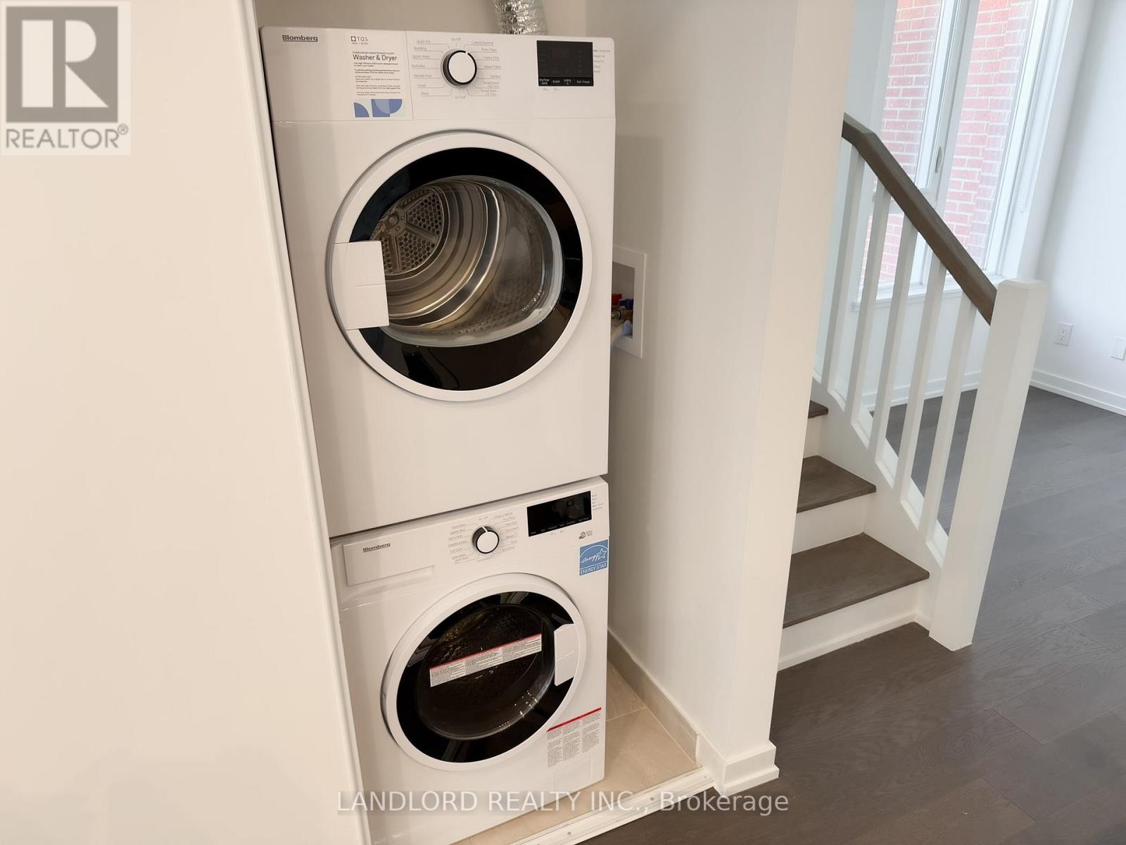 Vacant move in ready 1227 sqft unfurnished professionally managed corner two-level stacked townhouse 3-bedroom 3-bathroom plus den, part of The Keeley: A new development overlooking the lake of Downsview Park and walking distance to Downsview train & subway stations (little as ~20 minutes to downtown)! Parking and locker included. Layout is two levels, up to 9' ceiling heights, first floor consisting of open plan kitchen/living area (walking out to the building courtyard and exclusive-use semi-enclosed south facing patio) with den at base of stairs with large under-stair storage and laundry machines, and 3pc bathroom. Second floor consisting of primary bedroom (with 4pc bath, views overlooking courtyard, walk in closet), second bedroom (with built-in closet and 3pc bath), third bedroom, and third bedroom (with built in closet). Floor plans in listing images and attached to listing. Features and finishes include: engineered wood flooring throughout, stone countertops, stone backsplash, Whirlpool stainless steel appliances, Blomberg laundry machines, two-tone kitchen cabinets, tiled tub & shower stalls, pot lights, and more! || Appliances: Fridge, electric range, range microwave, dishwasher, washer, dryer. All existing window coverings. All existing light fixtures. || Building Amenities: Refer to listing images to see all! || Utilities: Metering of utilities by Carma. (id:64974)