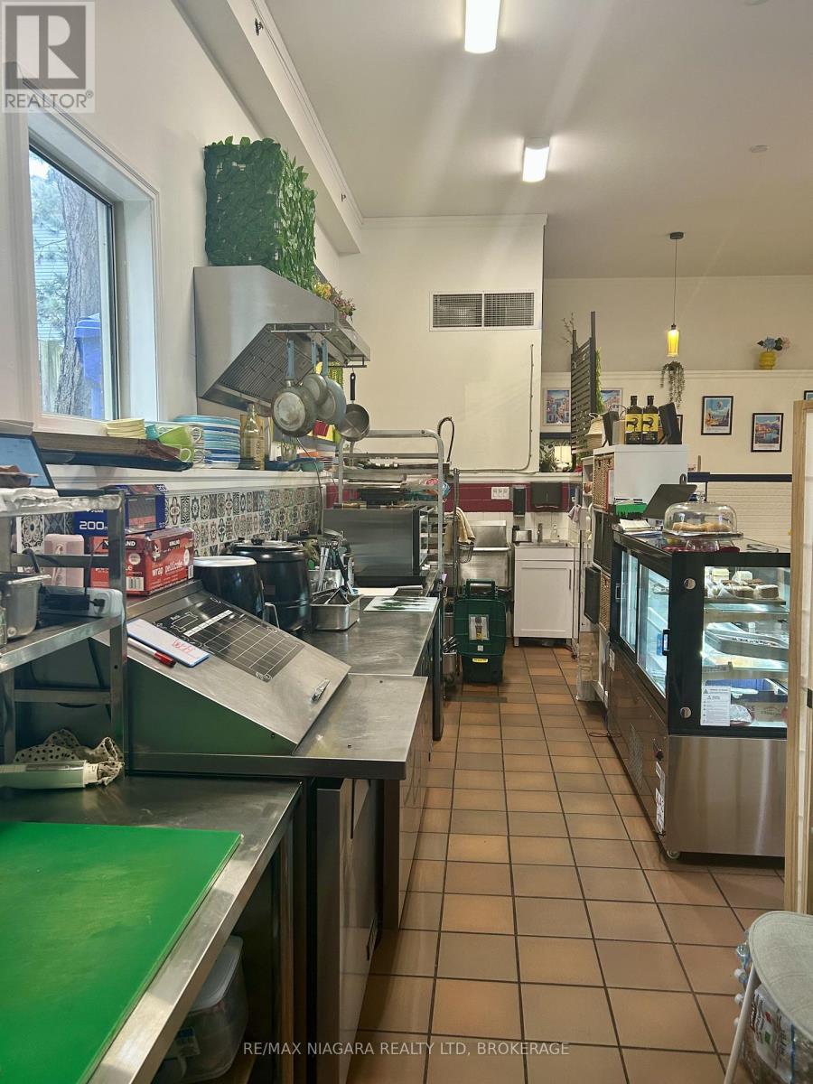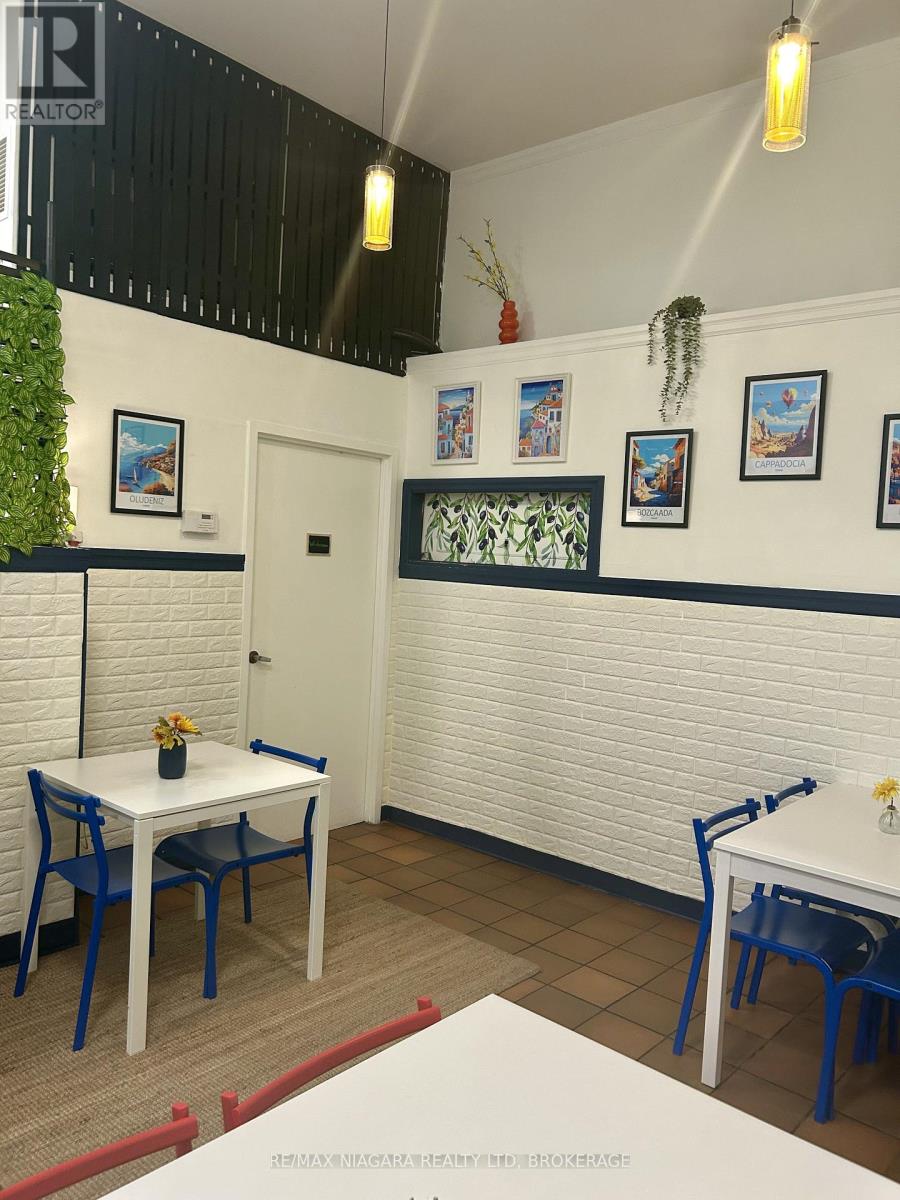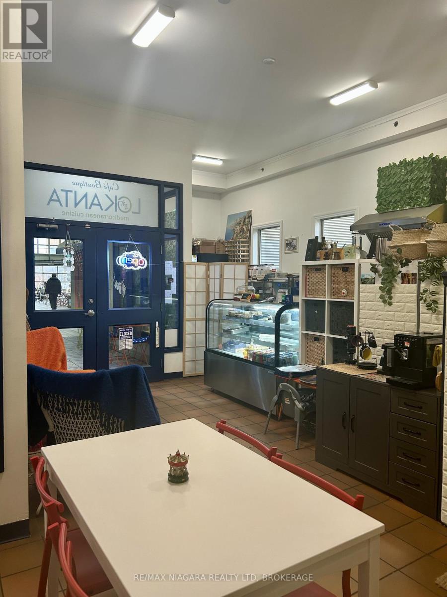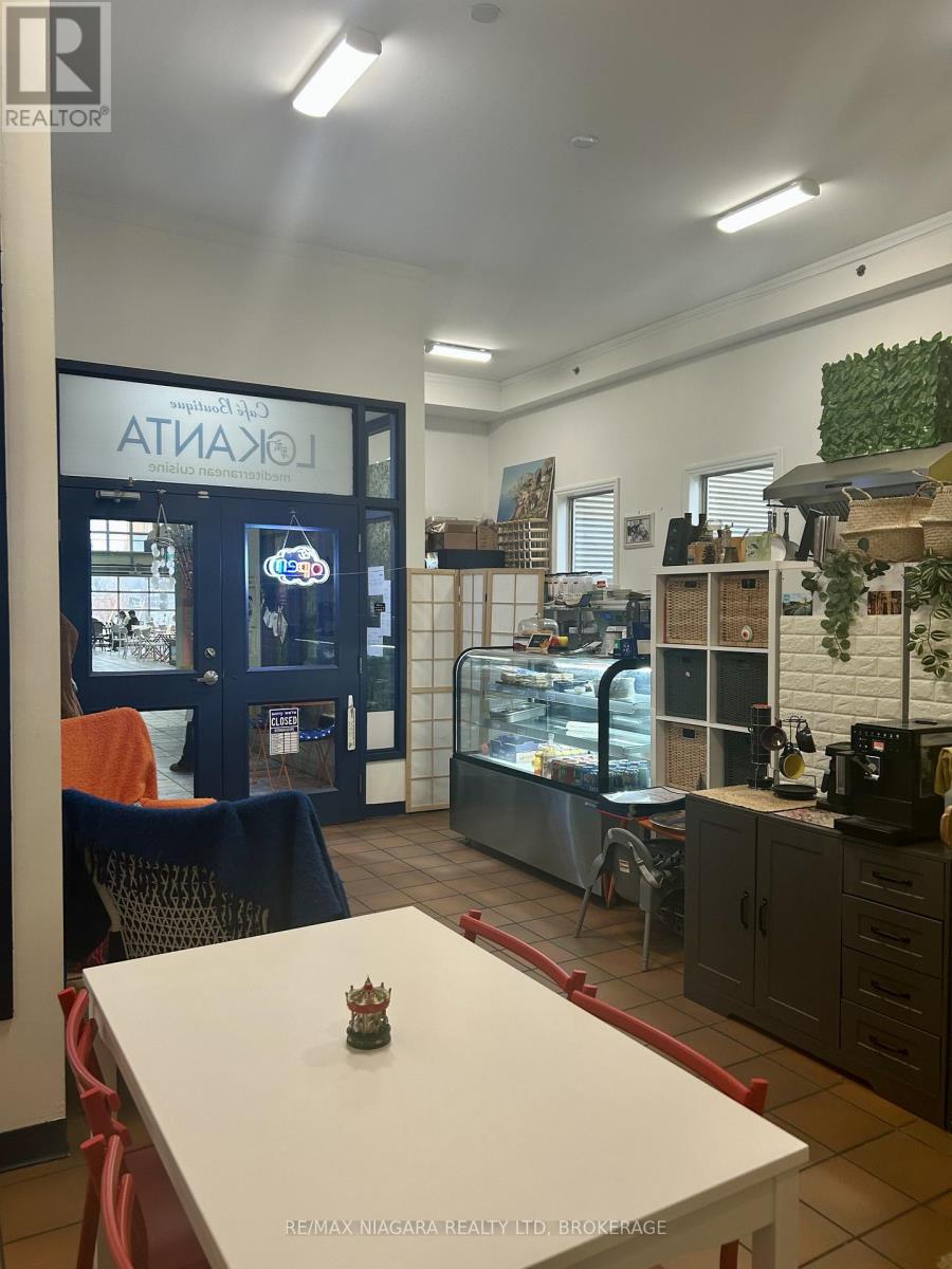 An exceptional opportunity to assume a well-positioned, high-traffic café space in the heart of historic Port Dalhousie, just steps from the waterfront. This established location in the Lock and Main Marketplace benefits from consistent local patronage and year-round tourist traffic, enhanced by its proximity to Lakeside Park, the Marina, Rennie Park, and the Royal Canadian Henley Rowing Course. This offering includes a commercial lease take-over and the sale of all restaurant equipment, representing a turnkey opportunity for a savvy operator or investor. All kitchen infrastructure, systems, and interior furnishings are included, allowing for immediate, hassle-free operation. The premises have been outfitted to accommodate a café or small restaurant concept, with seating for approximately 12 guests indoors and an additional 8 seats in the adjacent indoor marketplace.This is a rare opportunity to step into a functional, inviting space with a strong local presence and immediate operational potential, without the capital intensity of a startup. List of chattels and lease details available upon request. This listing is a commercial lease assignment and sale of equipment only. The current business name, branding and goodwill are not included in the sale. (id:64974)