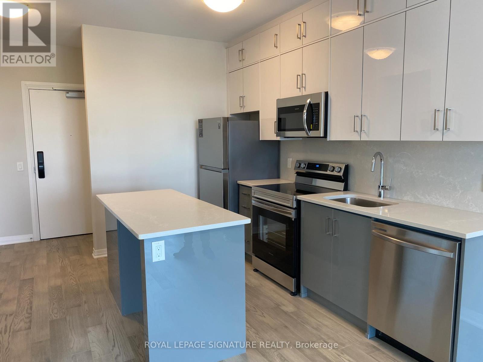 Luxury 1 Bed + Den Condo at Mattamy's 5North low rise building, 9 Ft Ceilings And Premium Upgrades Incl. S/S Appliances; Contemporary Island; Engineered Hardwood Floors; Keyless Entry, W/O To Private Balcony; Ensuite Laundry; privacy door (from Bed room) to the upgraded washroom. Enjoy Fitness Studio & Social Lounge, Outdoor Rooftop With Bbq ,Visitor Park; easy access to Highways, Hospital, Oakville Go & Shopping. (id:64974)