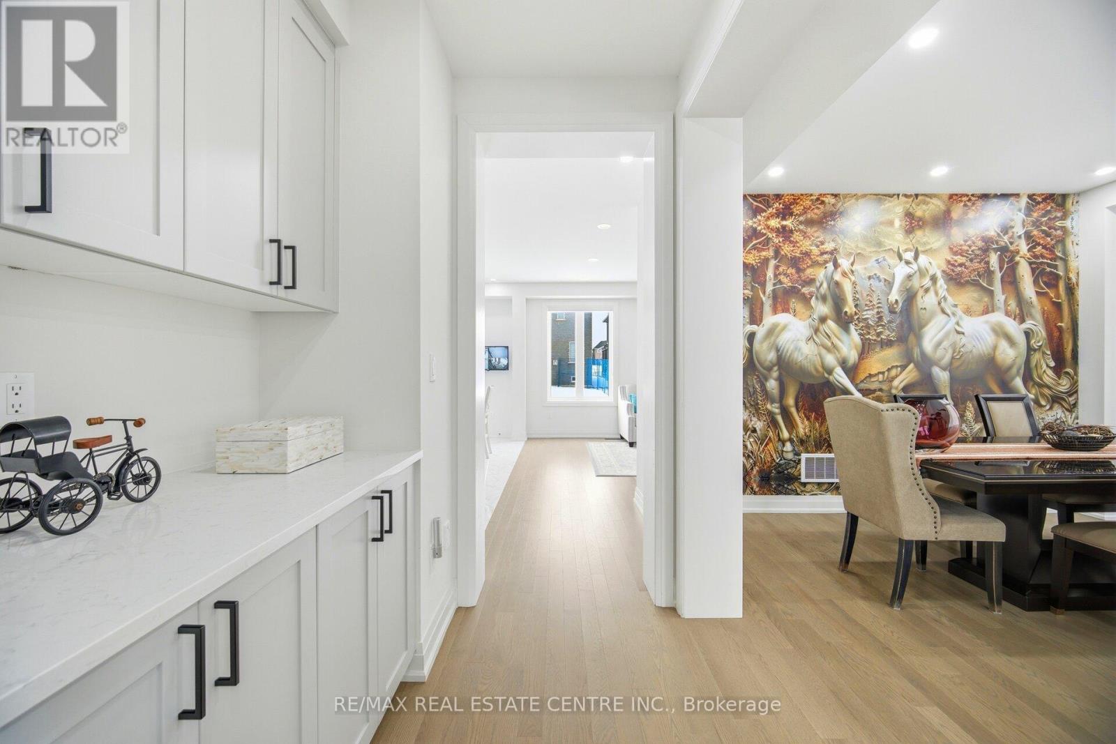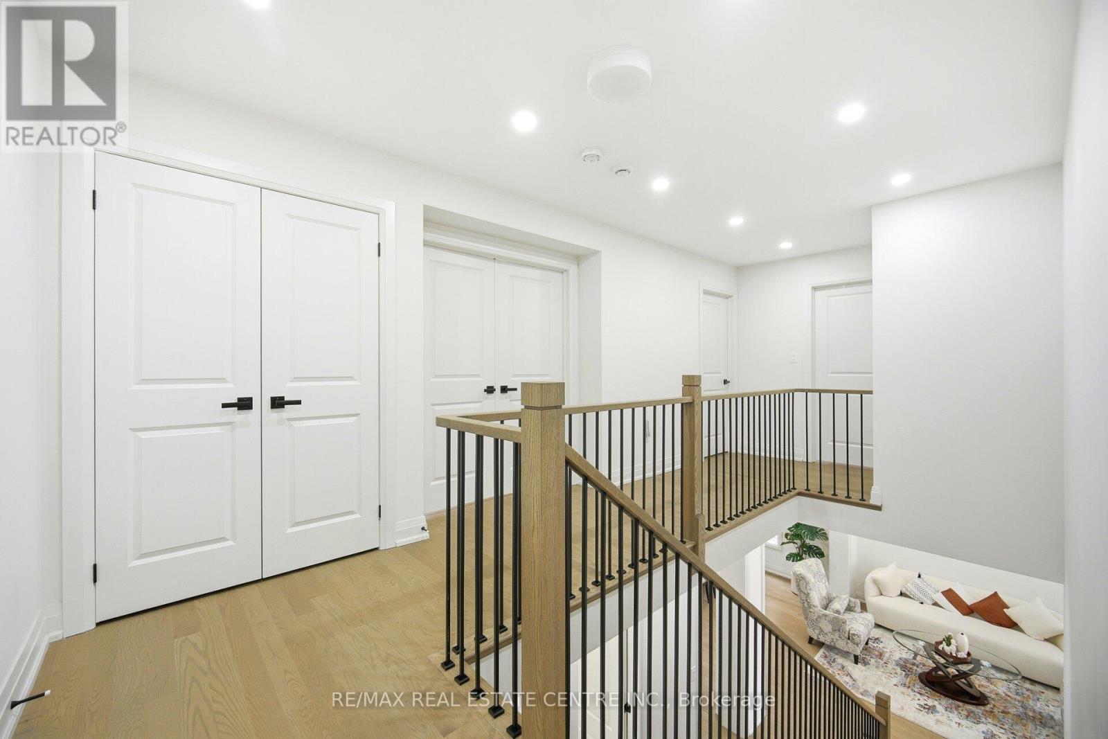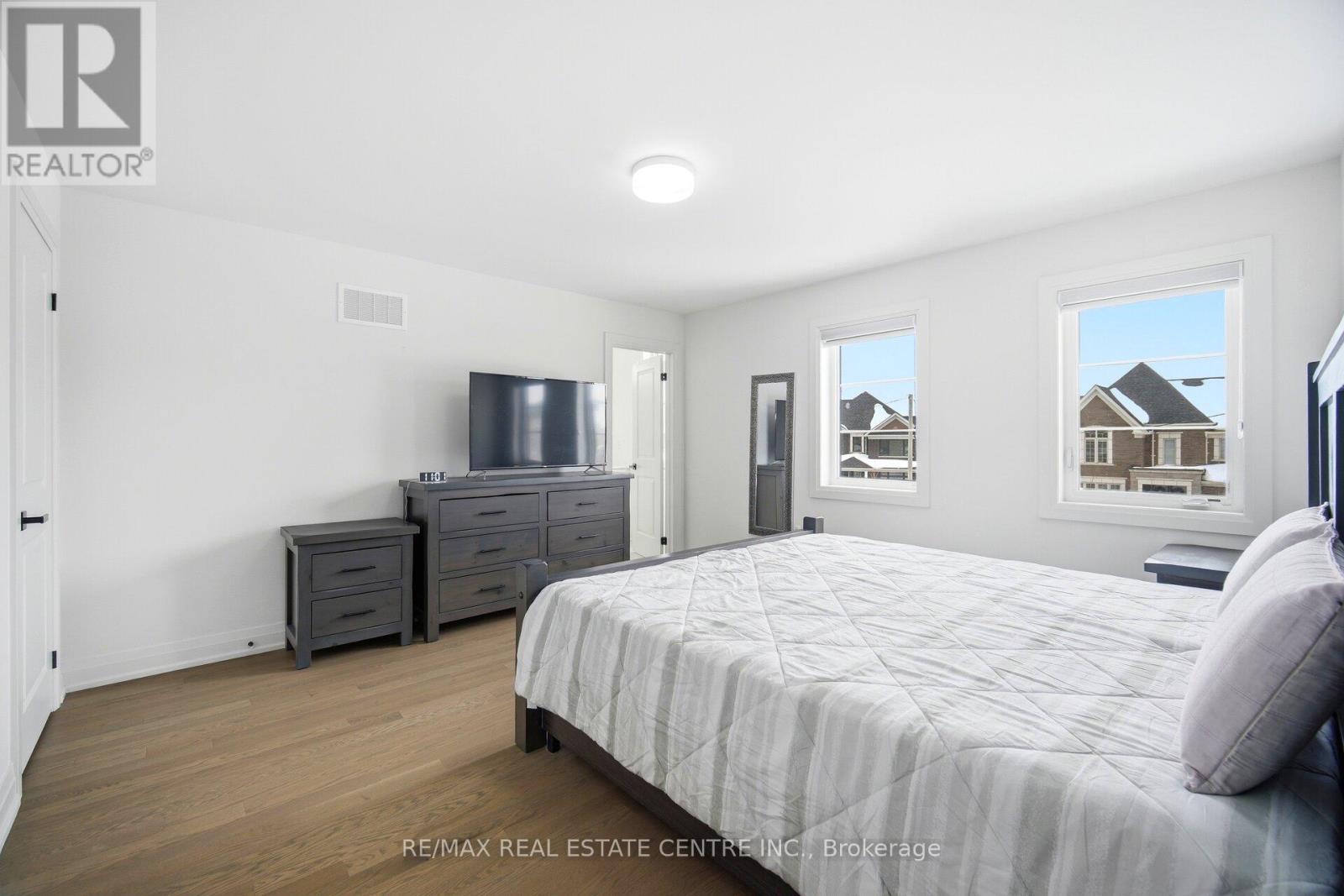 Luxury living in prestigious Colgan starts the moment you walk through the grand double doors into this beautifully upgraded home. It features quartz countertops, rich hardwood floors, custom roll-up blinds, pot lights, and 9-foot ceilings on both levels. The bright, open layout includes a welcoming family room with a coffered ceiling and fireplace, flowing into a modern kitchen with a large island that's perfect for entertaining. Upstairs, you'll find two spacious primary bedrooms, including a stunning main suite with a spa-like 6-piece ensuite, upgraded bathrooms, and a modern stand-alone soaking tub, plus convenient second-floor laundry. An upgraded staircase leads to the basement with great future potential, and smart garage door openers add extra convenience-all just steps from Woodington Lake Golf Club. (id:64974)
