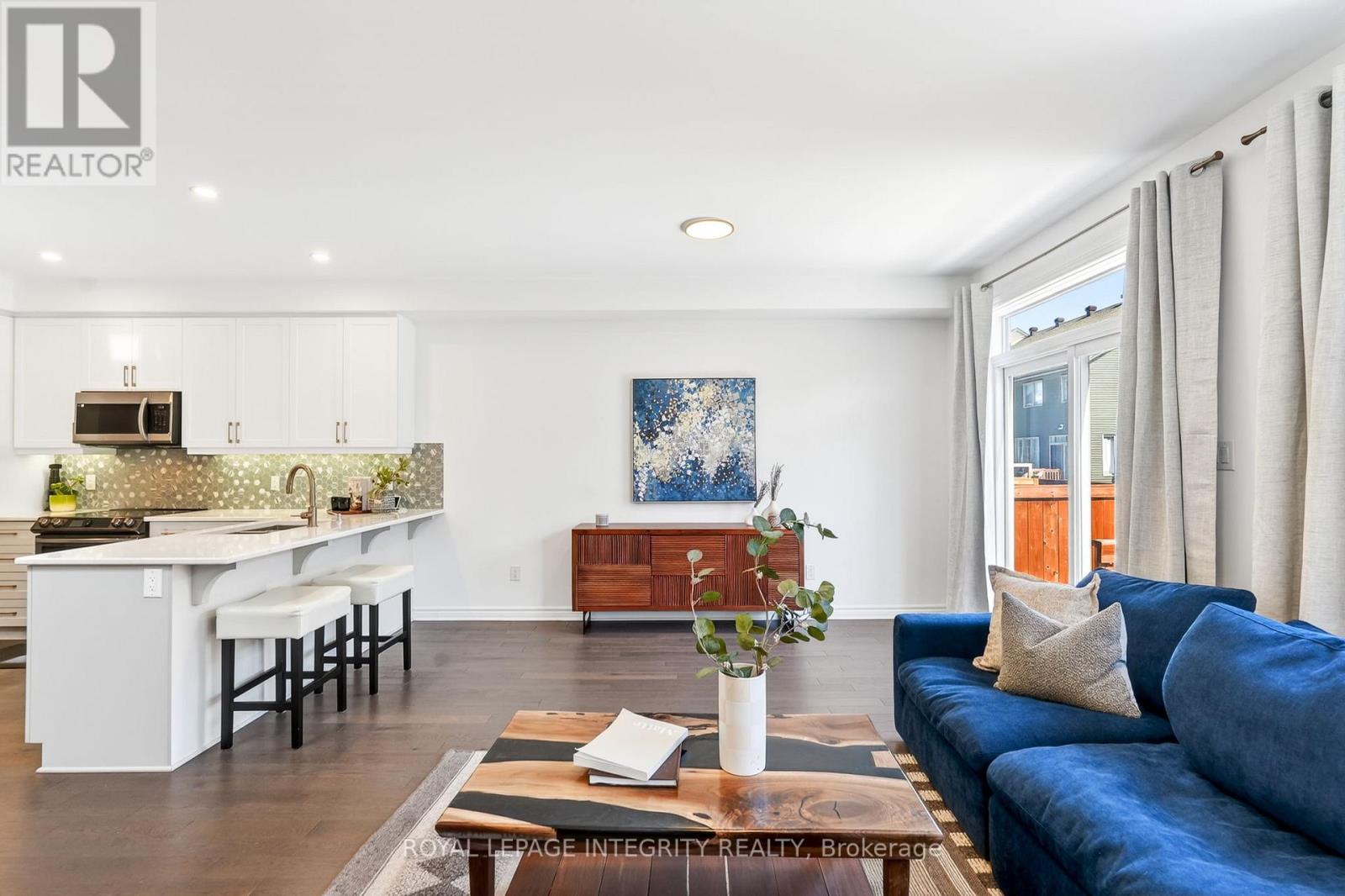 Open House Sunday April 12, 2026 from 2 PM - 4 PM. Welcome to 112 Jardiniere Street! This bright and spacious end-unit townhouse offers approximately 2,171 sq. ft. of thoughtfully designed living space, combining modern finishes, functional layout, and exceptional natural light throughout. A beautifully upgraded Ambrosia model by Tartan Homes, ideally located in the heart of family-friendly Stittsville.The open-concept main level features 9-ft ceilings, hardwood flooring, and additional side windows unique to end units, creating an airy and welcoming atmosphere. The upgraded kitchen is both stylish and practical, complete with premium cabinetry and counters, stainless steel appliances, a large island with breakfast bar seating, and a generous walk-in pantry-perfect for everyday living and entertaining.Upstairs, hardwood continues throughout, leading to an impressive primary retreat with 2 walk-in closets and upgraded ensuite. Two additional well-sized bedrooms share a full bath, while the convenient second-floor laundry makes daily routines effortless.The finished lower level expands your living space with a cozy gas fireplace, large windows for added natural light, and flexible room for a media area, play space, or home office, plus excellent storage or space for a gym!Thoughtful updates throughout the home include a new furnace (2021), fenced backyard (2025), removal of carpets on the stairs and in the basement (2023), and the addition of a backyard shed (2024), adding both comfort and long-term value.Located close to schools, parks, recreation, shopping, transit, and everyday amenities, this move-in ready home offers the perfect blend of comfort, convenience, and community living in one of Stittsville's most desirable neighbourhood settings. (id:64974)