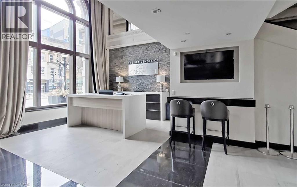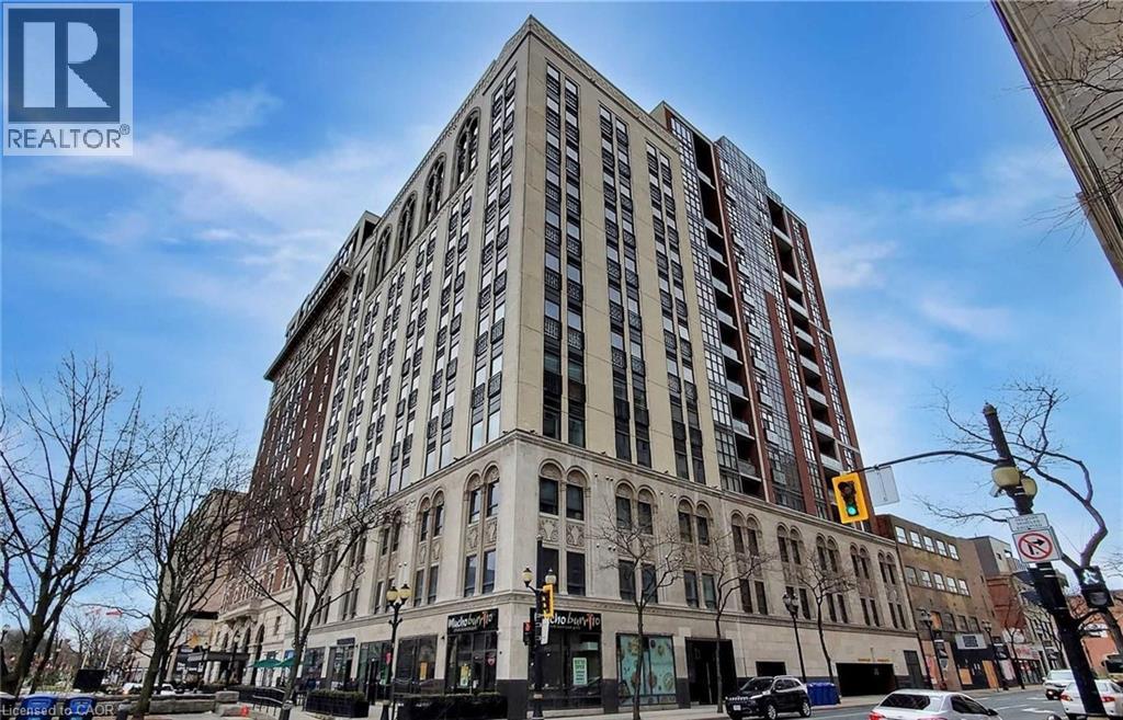 Welcome to the prestigious Residences of the Royal Connaught at 112 King Street East, located in the heart of downtown Hamilton. This bright 1 bedroom, 1 bathroom unit on the 12th floor features an open-concept layout, 9 ft ceilings, large windows with a Juliette balcony, and in-suite laundry. The modern kitchen includes a breakfast bar and updated finishes throughout. Includes 1 underground parking space and locker.Enjoy unbeatable urban living with a Walk Score of 100, meaning daily errands can be done without a car. Just a 4-5 minute walk to the Hamilton GO Centre, steps to Gore Park, and minutes to King William Street's popular restaurants, Jackson Square, and the Hamilton Farmers' Market. Ideal for professionals and students, with St. Joseph's Healthcare and McMaster's downtown Health Sciences campus within a 10-minute walk, and McMaster University just a short drive away.Residents enjoy premium amenities including 24-hour security, fitness centre, party room, media room, and a rooftop terrace with lounge seating and BBQs.Experience stylish downtown living in one of Hamilton's most iconic buildings (id:64974)