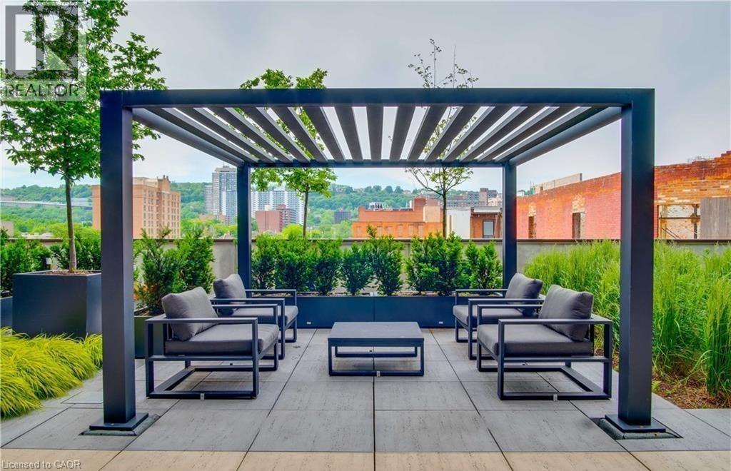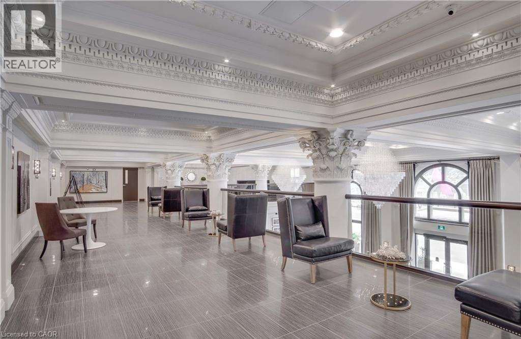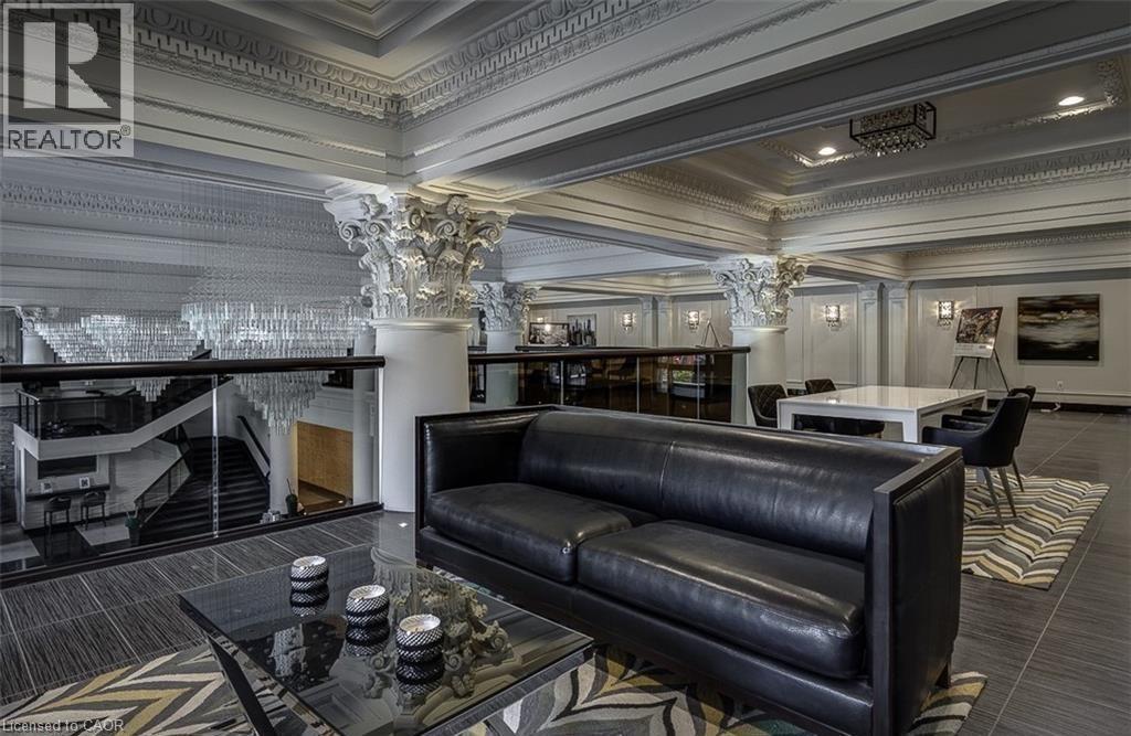 Experience modern luxury in this beautifully furnished 2-bedroom, 2-bathroom corner suite at the iconic Royal Connaught, where historic charm blends seamlessly with contemporary living in the heart of downtown Hamilton. This fully furnished unit is ideally located near hospitals, universities, the GO Station, Art Gallery of Hamilton, Hamilton Place, Jackson Square, Hamilton Farmers’ Market, and the vibrant shops and restaurants of James Street North. This North and West-facing corner suite features expansive windows and panoramic city views, filling the open-concept living and dining area with natural light. The modern kitchen offers quartz countertops, stainless steel appliances, and a breakfast bar. The primary bedroom includes a queen bed, walk-in closet, and private ensuite. Thoughtfully curated furnishings (removals available upon request) and engineered hardwood floors enhance the space. The unit also features smart home technology, including a smart thermostat, lighting, and plugs, along with the convenience of in-suite laundry. The beautiful rooftop garden and outdoor terrace located on the same floor as the unit, making it incredibly convenient to step out and enjoy the outdoor fireplace or host a BBQ with friends and family. Residents also have access to a fitness centre, movie theater, party room, and media room. Rent includes one indoor parking space and a private locker on the same floor. Tenant is responsible for water, heat, hydro, and internet. See the full list of furnished items in the supplements. (id:64974)