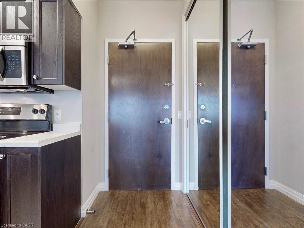 Opportunity to live in Hamilton's Downtown Historic Residence of Royal Connaught. Two Bedrooms and Two Bathrooms Suite with one underground parking and one locker included. Carpet-free with in-suite laundry, high ceilings and Juliette balcony. Building Amenities: Gym, Media Room, Party Room, Roof-top Terrace (Barbeques and Fireplace Feature), 24 Hours on-site Security. Public Transit, GO Station, Trendy Restaurants and Boutiques are all nearby. (id:64974)