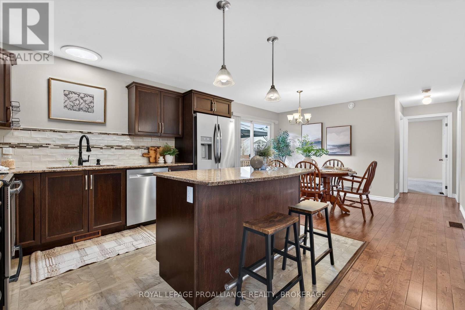Welcome to 112 Maplecroft Court! This lovingly maintained 2 bedroom bungalow is set on a quiet Gananoque street, awaiting a new family to enjoy it. Just 12 years new,this home offers lovely hardwood floors throughout much of the main floor. The oversized living room with bright morning sunshine is the perfect spot for your morning coffee! The pristine kitchen features an island, pot drawers and functional layout, next to the dining space. Patio doors from the dining room lead to a deck with a gazebo,for easy summer bbqs & outdoor dining. The spacious primary bedroom has walk through closets to the lovely 3-pc ensuite bathroom. This well designed home features a second sizable bedroom, a 4pc bathroom and convenient main floor laundry. The lower level will also impress you with the additional space it offers. From the recreation room, a family room with roughed-in bathroom, lots of storage in the utility room, to the large workshop with cold cellar, the possibilities are abundant! As an added bonus,there are stairs from the basement into the garage. With lovely gardens waiting to spring to life, this home could be just what you've been waiting for! (id:64974)