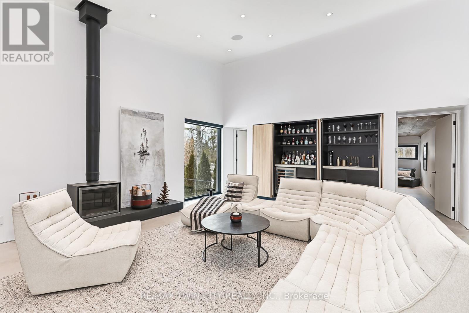 SEASONAL RENTAL AVAILABLE JUNE 1ST- Experience refined mountain living in this one-of-a-kind custom Swedish-inspired chalet, ideally situated in the heart of The Blue Mountains. Designed with both style and comfort in mind, this fully furnished retreat offers an exceptional blend of modern luxury and natural warmth. Expansive floor-to-ceiling windows flood the home with light, seamlessly bringing the outdoors in, while rich hardwood floors and two wood-burning stoves create a cozy, inviting atmosphere year-round. The thoughtfully designed layout features multiple spacious bedrooms, and 3 of 7 with their own ensuite, offering privacy and comfort for family and guests alike. At the heart of the home is a chef's dream kitchen, perfectly equipped for entertaining, with generous seating for up to 20 people-ideal for hosting unforgettable gatherings. The main floor also features convenient laundry and a functional flow throughout. Step outside to your private outdoor oasis, complete with a large hot tub and authentic sauna, perfect for unwinding after a day on the slopes or trails. Additional features include a garage, a bonus gym, and a dedicated games room, plenty of storage if needed and 2 extra basement bedrooms ensuring there's something for everyone in this exceptional property. This is more than a retreat-it's a lifestyle. (id:64974)