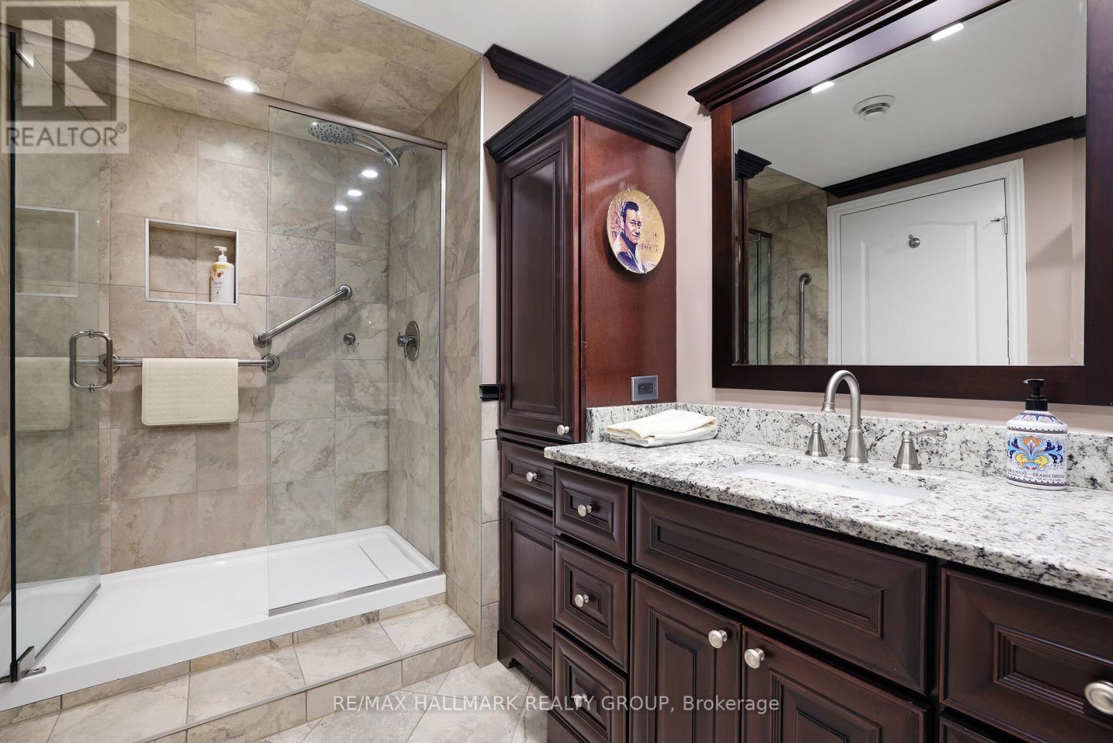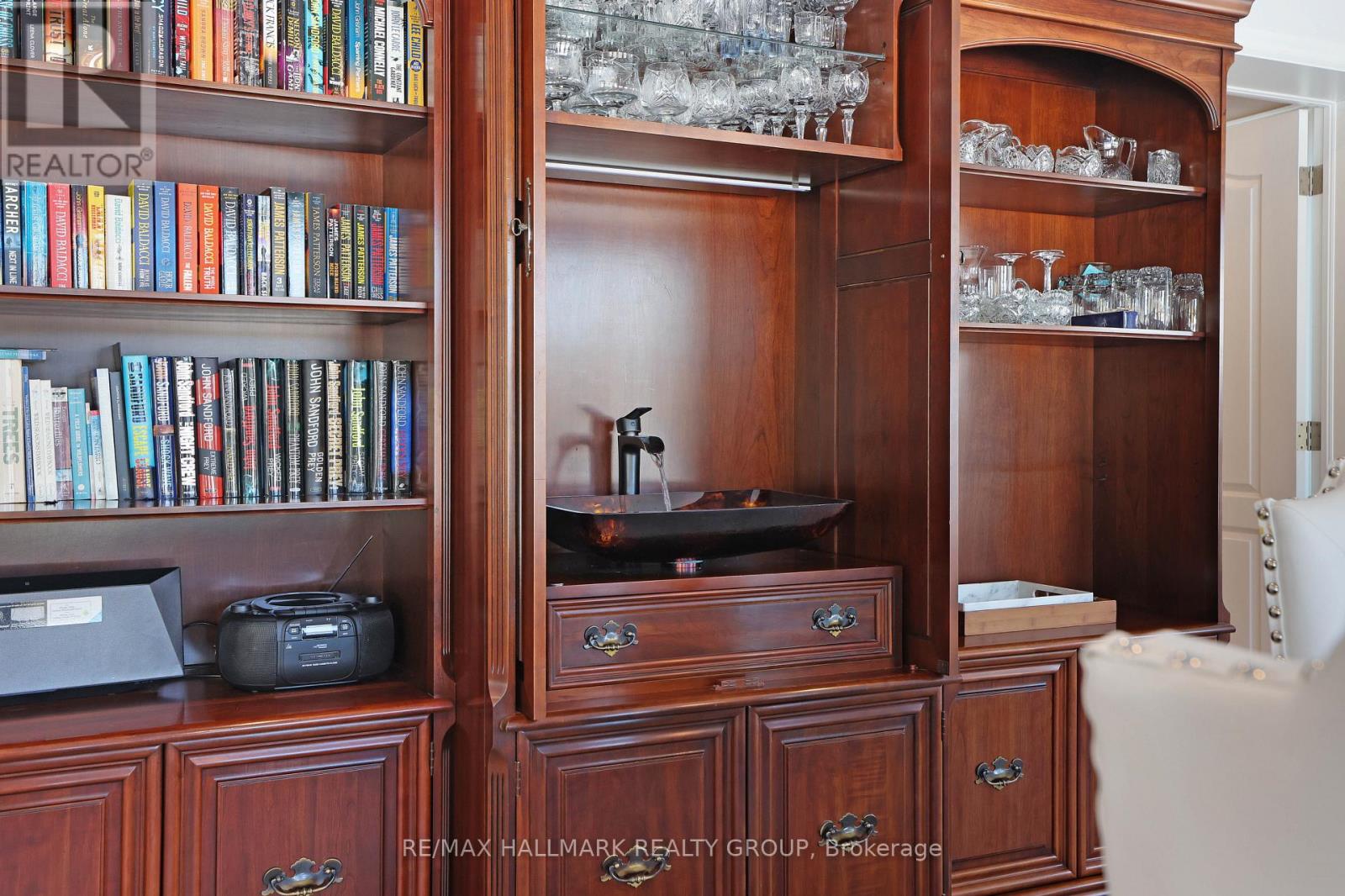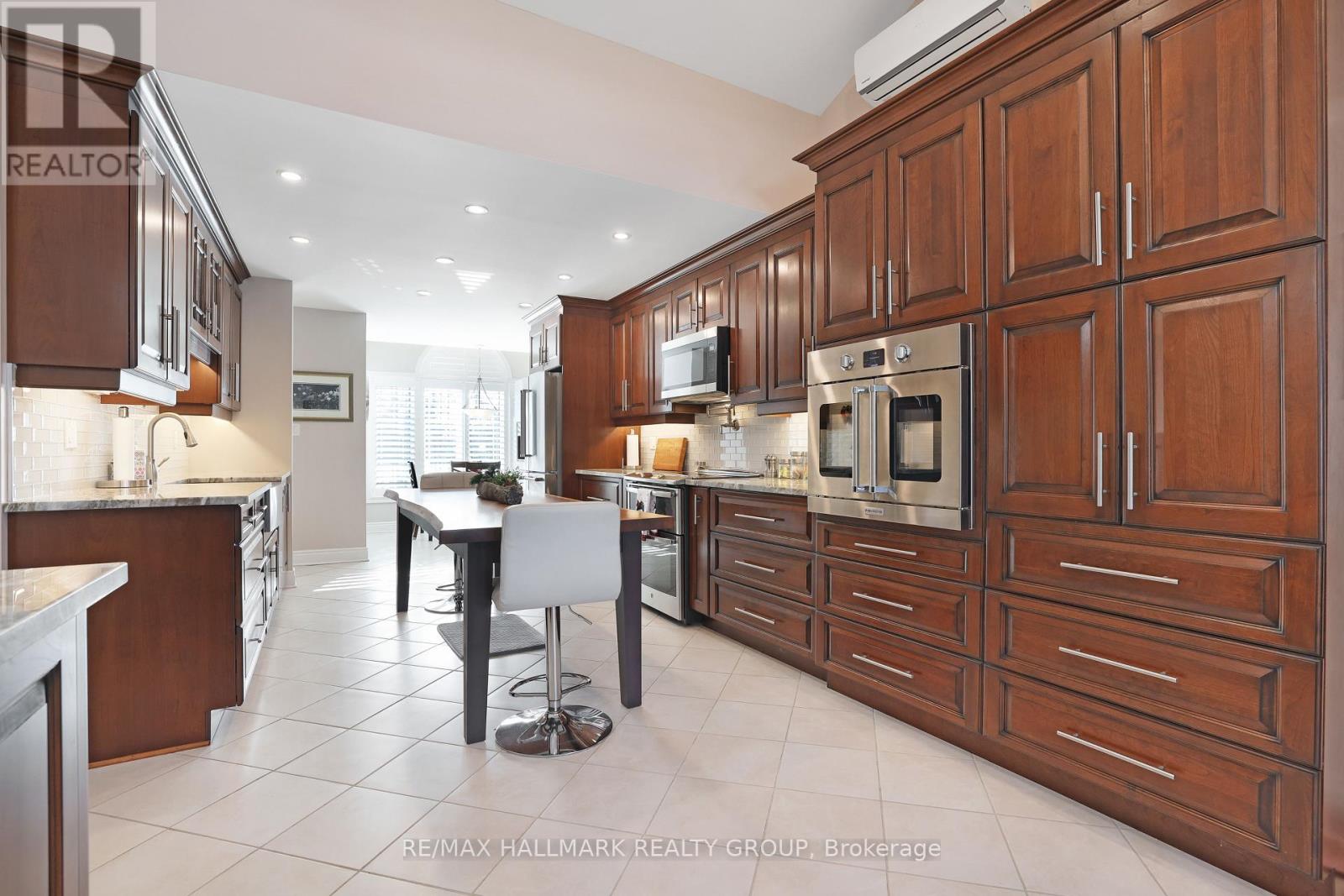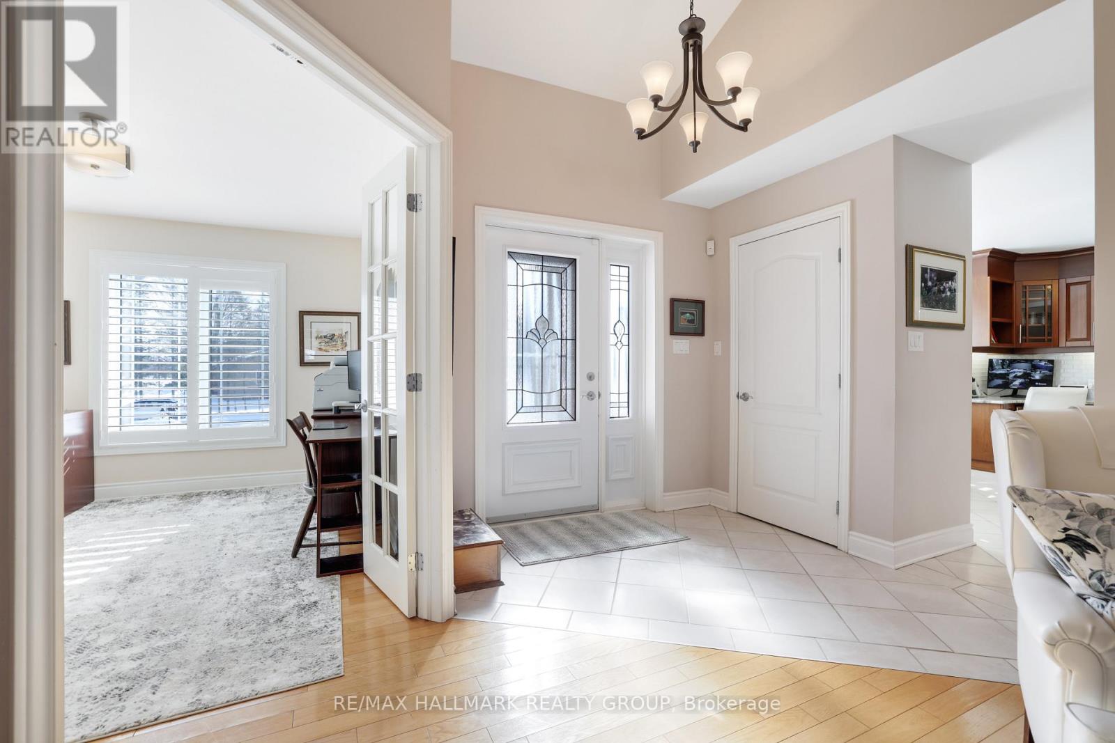A rare blend of quality, style and thoughtful design make this spacious bungalow a stand out! From 200 amp service, full insulated concrete form construction & in-floor radiant heating on both levels (including the garage) to cathedral ceilings & oversized windows that flood the space with natural light this home has it all. The main floor boasts a dream kitchen which features: marble counter tops, SS apron sink and coordinating SS appliances (double oven electric smooth top range, 5 door fridge, double door BLUESTAR wall oven), pot-filler, a separate 6' x 3' baker's peninsula with its own sink, cabinet mixer lift & bar seating and a walk-through Butler's Pantry between the kitchen and sunroom ideal for hosting or everyday living. Get cozy by the gas fireplace sitting area, enjoy a meal at the dining table or access the back deck from the grand sunroom, perfect for entertaining or unwinding while enjoying the view. The primary suite enjoys cathedral ceilings, walk-in closet, spacious en-suite with 2 sinks, fireplace, walk-in luxury glass shower & separate water closet. Two more bedrooms, (segregated from the primary), full bathroom, laundry room, office nook & eating area complete the main level. Direct access from the garage to the basement offers serious versatility with its radiant floor heating, large windows, family room, huge lounge/games area with custom built-in rosewood cabinetry wall & extensive wet bar (including dishwasher, wine fridge, beer tap and more), a den, full bathroom & plenty of storage. This sprawling 1+ acre country setting is just minutes from charming Perth with its rich history, vibrant art scene & beautiful natural setting along the Tay River. The hedged, private, yard offers: cherry & apple trees, 2 gazebos, an attached, oversized, heated garage, detached double garage with workshop and abundant paved parking. Whether you are looking for extra guest space, a home office setup, or a potential in-law suite, the possibilities are endless. (id:64974)