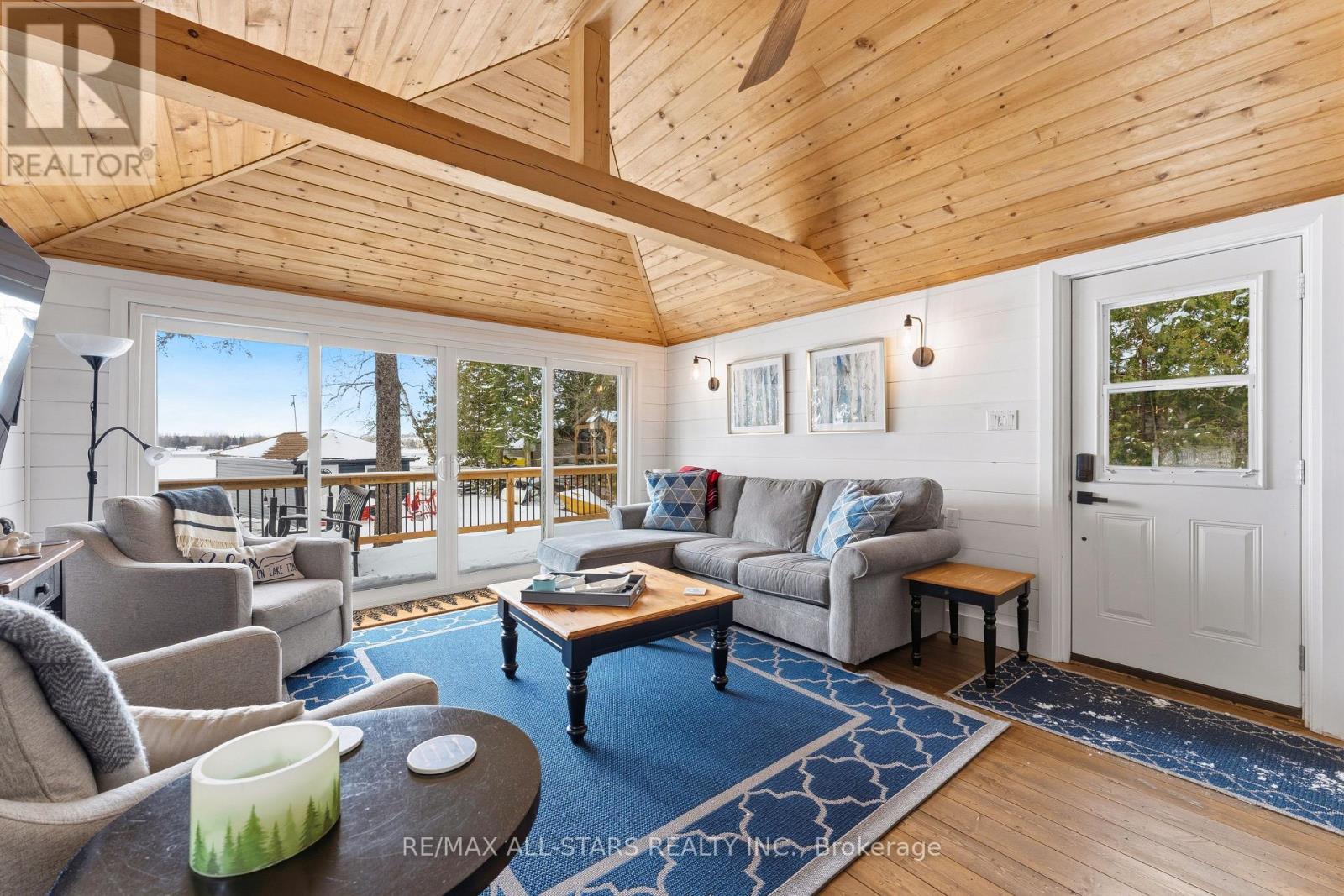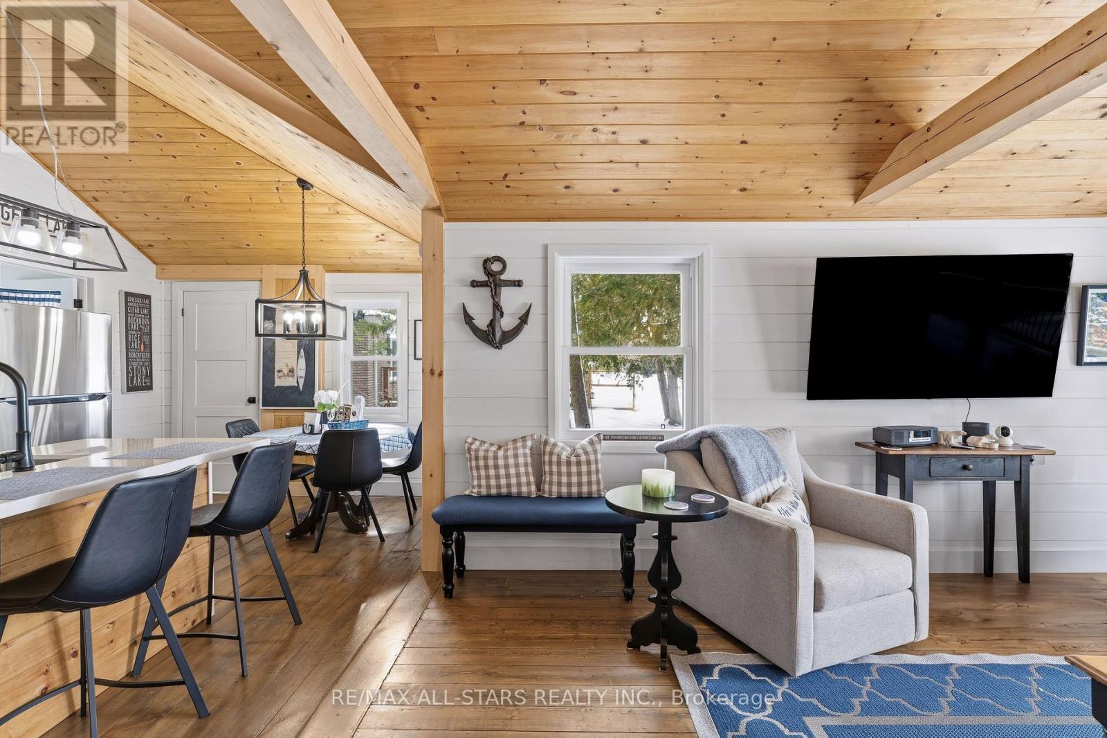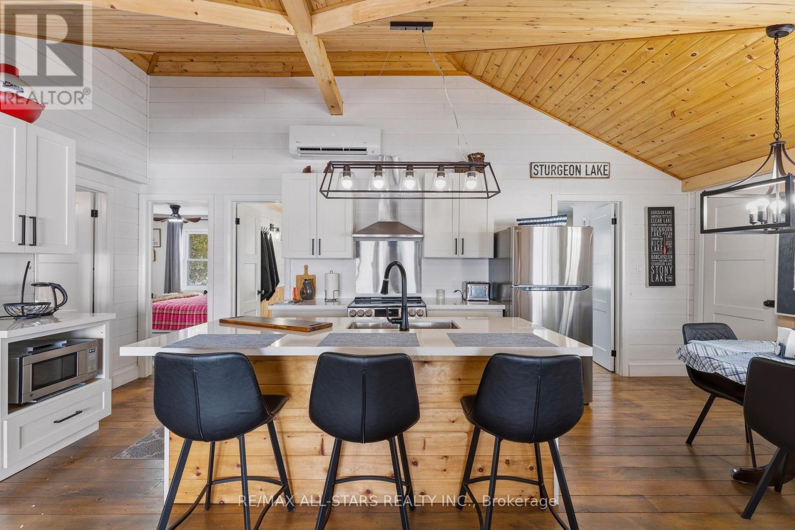 Enjoy hassle-free, year-round waterfront living on beautiful Sturgeon Lake! This well-maintained property features numerous upgrades, including all new windows and doors. The living room offers hardwood flooring and a vaulted ceiling, creating a bright and welcoming space. The kitchen features an island and quartz countertops, perfect for both everyday living and entertaining. The renovated 3-piece bathroom also includes quartz countertops. The home offers three bedrooms plus a storage/utility room with water treatment system and hot water tank. Outside, you'll find a single dry-slip boathouse with marine rail, a new dock, and a rock retaining wall along the clean, rocky shoreline. Enjoy summer evenings around the new firepit. Additional features include a shed for extra storage, a bunkie with hydro for guests, and an extended deck with new railings. Located on paved, municipally maintained Sturgeon Glen Road, this property offers easy year-round access and is less than five minutes from the shops, restaurants, and amenities of Fenelon Falls. (id:64974)