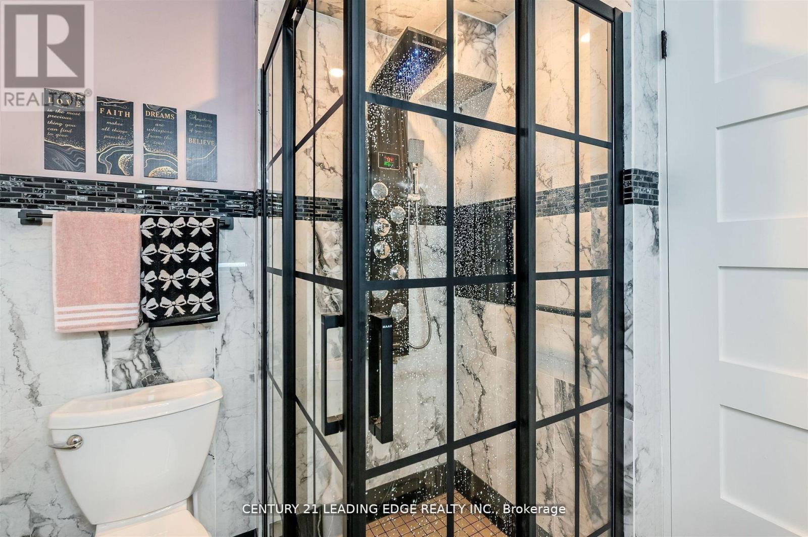 Beautiful RARE 4 BDRM (on the main floor), (1,500 sq.ft on MAIN floor-PLUS over 1,200 sq.ft. on the lower level with a separate side entrance for possible in-law suite or apartment with minor modification. 4th large bdrm can easily convert to a MAIN FLOOR FAMILY ROOM), brick and stone home with garage. Extensively renovated with too many features to list. Huge windows with great sunshine coming in and a true feeling of openness. Stone Fireplace in the lower level huge rec room, stone bar-b-q/pizza oven in the back yard all fantastic hang out places for get togethers, The perennial gardens, flagstone pathway and balcony with awning create an inviting outdoor space to enjoy even more special moments. Exquisite Renovated bathrooms with all the bells and whistles, Cedar Sauna and tons of storage, New doors systems, front and side and new interior doors thru-out. Cedar Sauna, tonnes of storage, new 3/4" European engineered white ash flooring on both levels, no expenses spared with this newly renovated bungalow, Brand New upgraded LG Appliances with massive Fridge and Induction oven, new interior shaker doors thru-out, lower level ceilings are sound absorbing to keep noise levels very low and private. Driveway is bordered by stunning Armour stone and carriage doors on the garage, Pride of ownership has been greatly displayed in this gorgeous home. DONT MISS OUT!!! (id:64974)