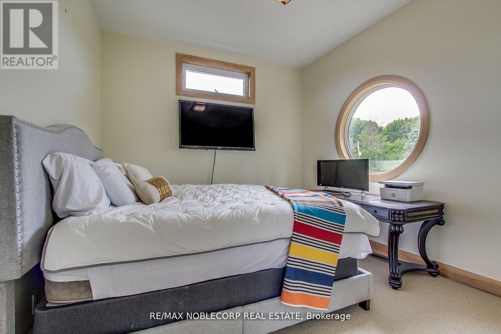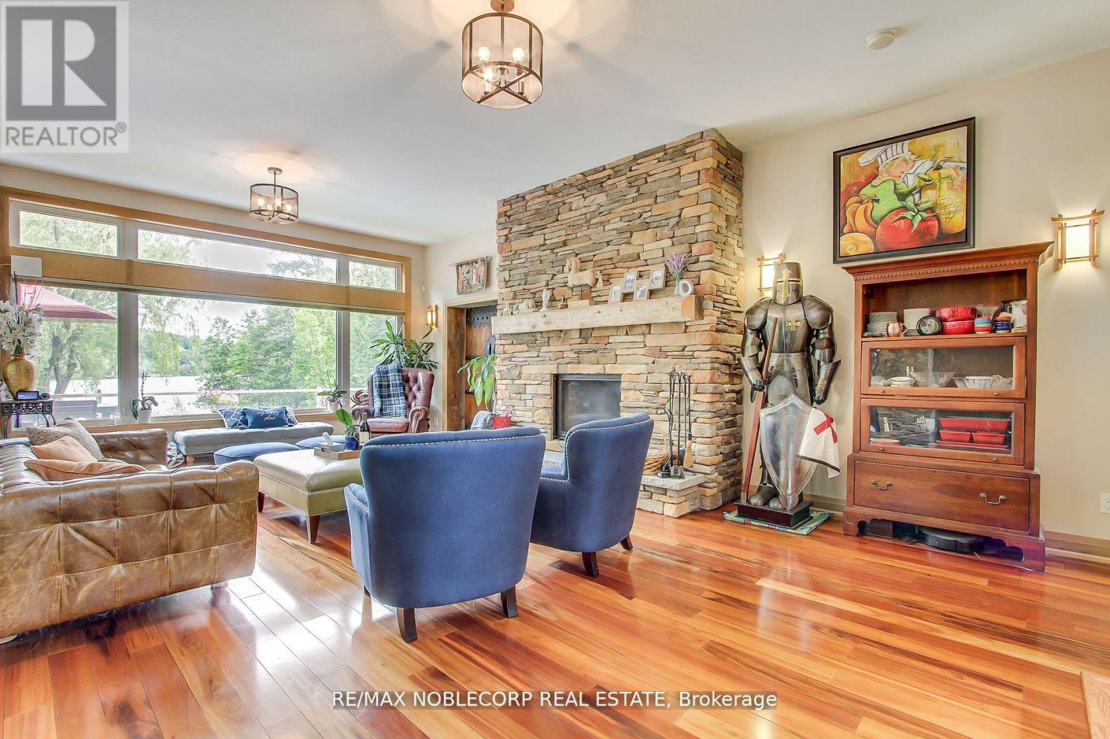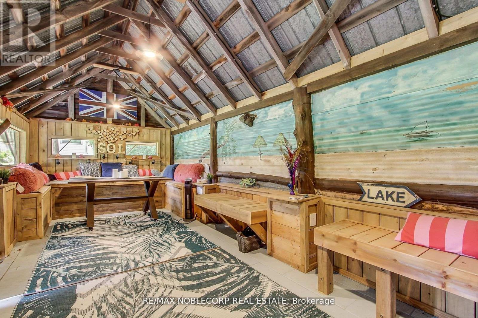 Asian Inspired Chalk Lake Beauty! Over 200K sent in upgrades, including a new fence. With 110 ft of waterfront & sandy beach, a 2-storey freshly painted "cottage," custom-built, 3 Br, 2-story Home w/ Exquisite Views of the Lake. Asian inspired Primary Br 12th century Japanese Castle Doors to the Asian influenced bathrooms, Elf & front entrance, this home is a must-see. Glass Railings and a large, Freshly Painted Deck on the house's waterside ensure No Obstructed Views. Newly Paved Driveway with Space for Ten Vehicles. Top floor: 10 feet high with a Custom Stacked Stone Fireplace in the great room; Main floor Master Br with WI closet and Exquisite Ensuite with Glass Shower and Soaker Tub, 2nd level with 2 Br, Fully Enclosed Tiki Hut, New Dock. Min To 407, Golf, Skiing. Too Many Upgrades to List, this property is an Entertainer's Paradise. Unique home with Meticulous Landscaping and a Lot of Love.. (id:64974)