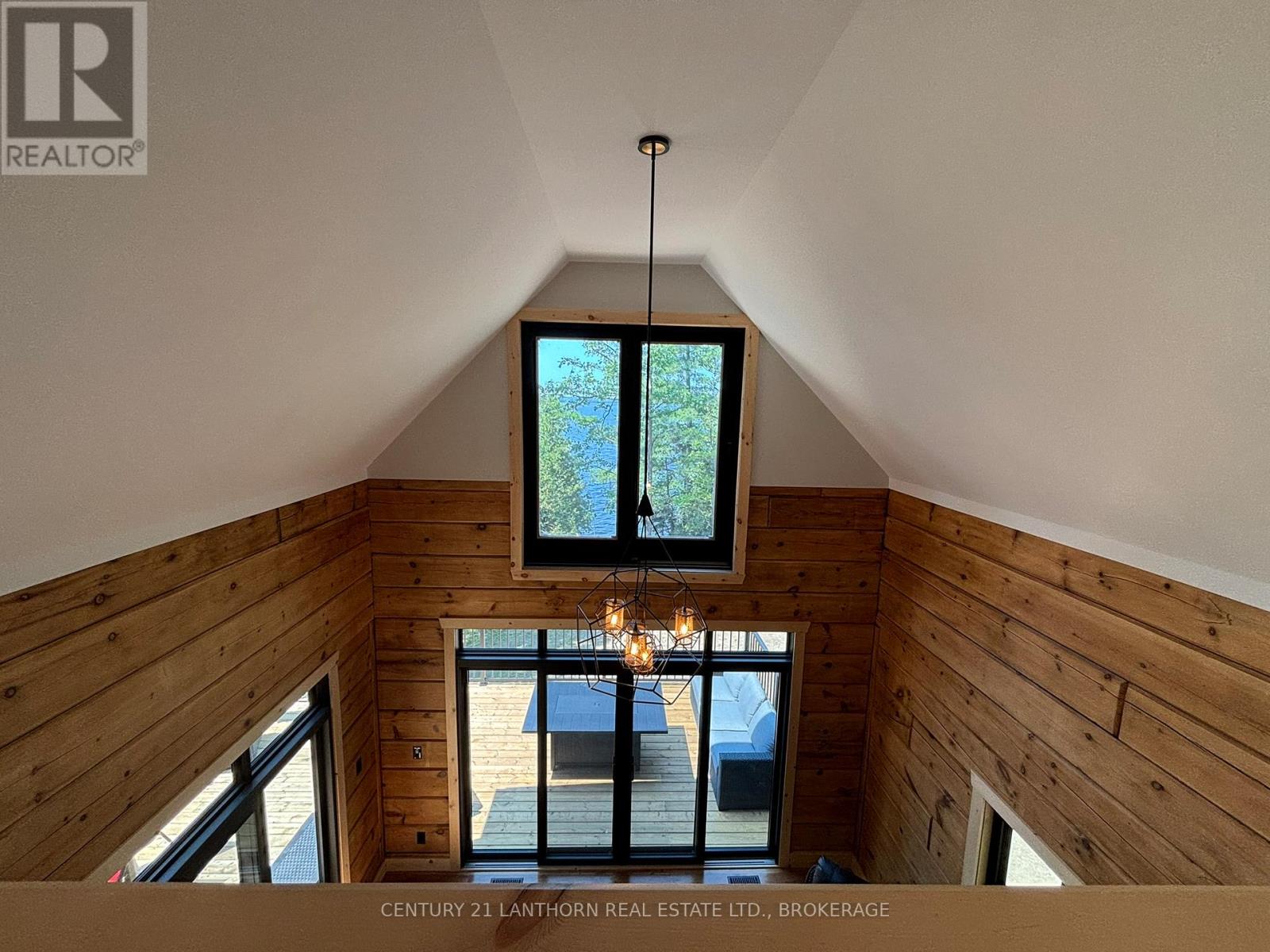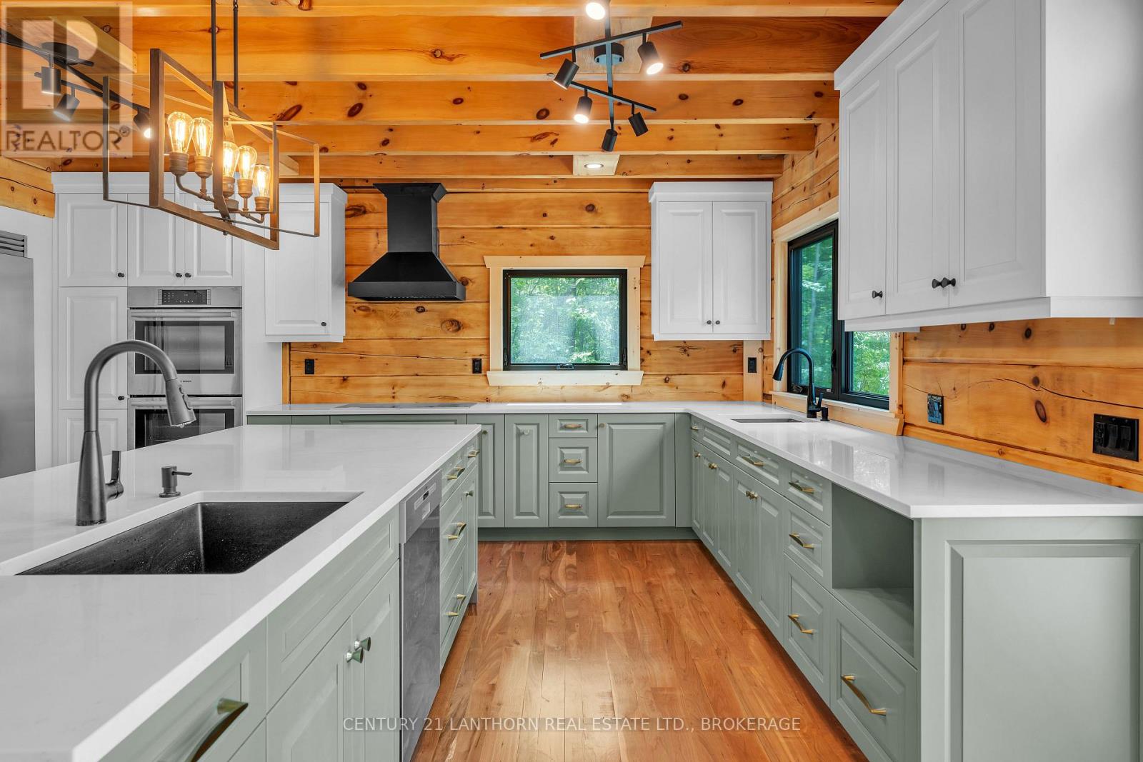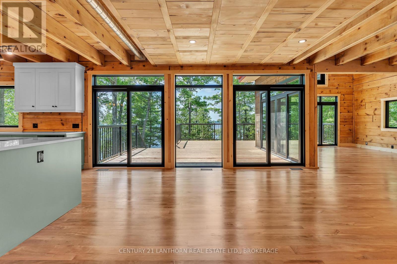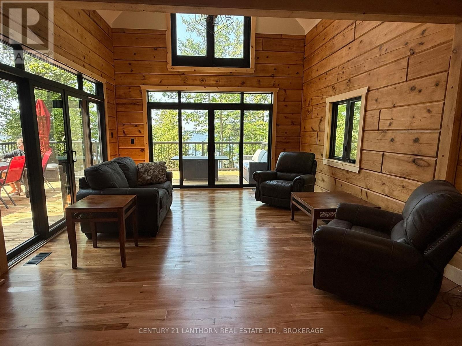 Stunning waterfront retreat on desirable Sharbot Lake. This fully renovated log home sits on a private 3.1-acre lot with mature trees, rocky shoreline, and peaceful views. Featuring 4 bedrooms, 2.5 baths, and upscale finishes throughout, including a heated ensuite floor, the home offers bright open-concept living with large windows showcasing the landscape. The property includes a detached garage with carport and loft, plus a versatile 1,080 sq ft auxiliary building with a cozy Bunkie, new bathroom, and flexible space for a workshop, studio, or recreation. Both main and auxiliary buildings have 200-amp service. Enjoy privacy, natural beauty, and year-round lake living-perfect as a family retreat or investment property. Move-in ready and waiting for you! Please do not visit property without a licensed Realtor. (id:64974)