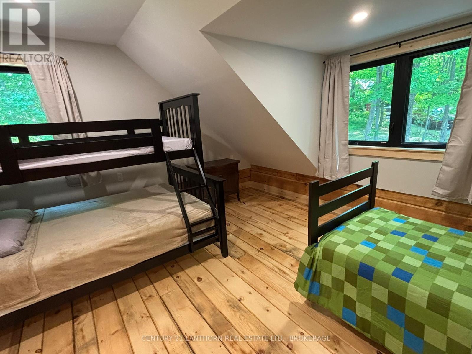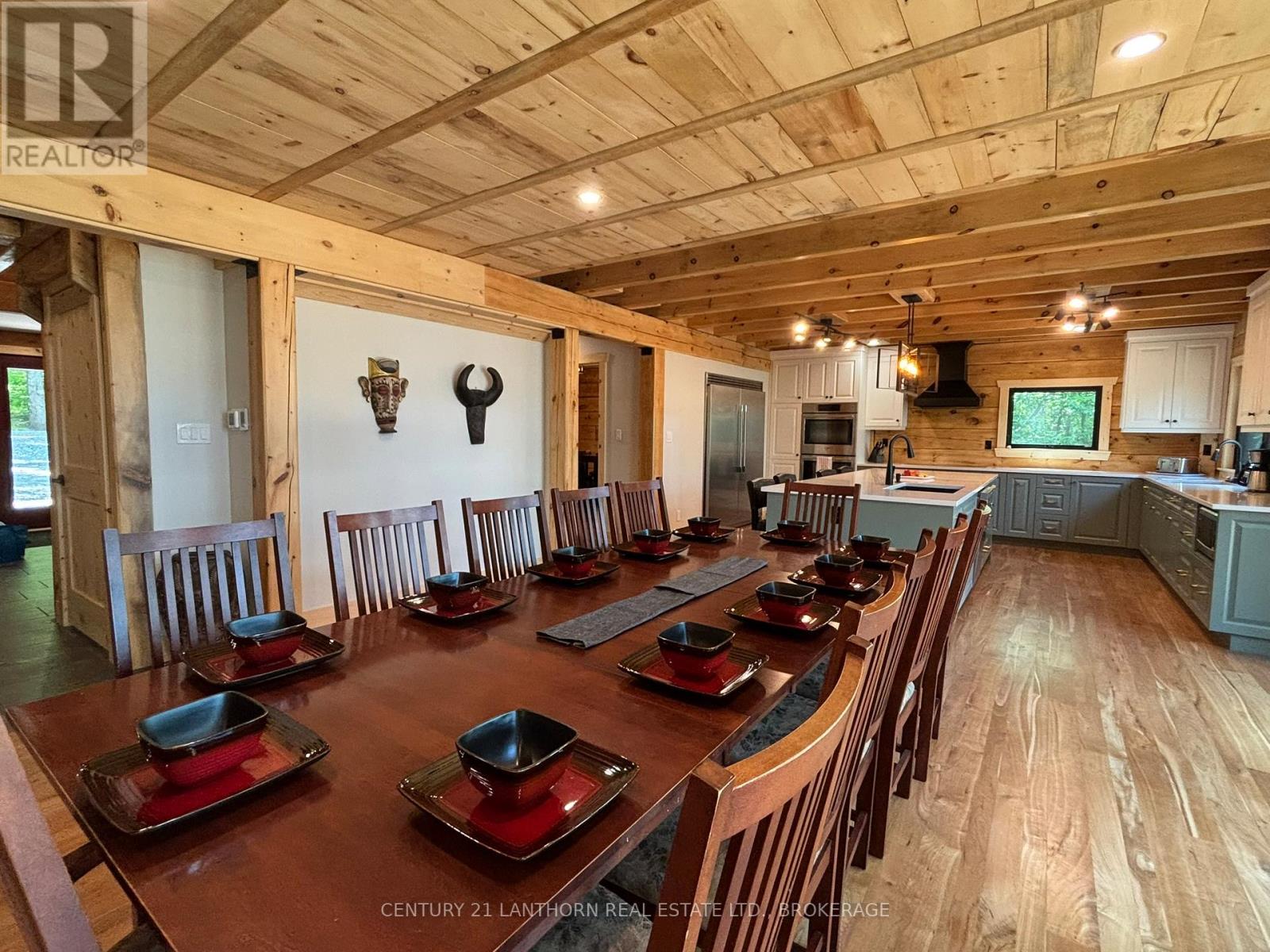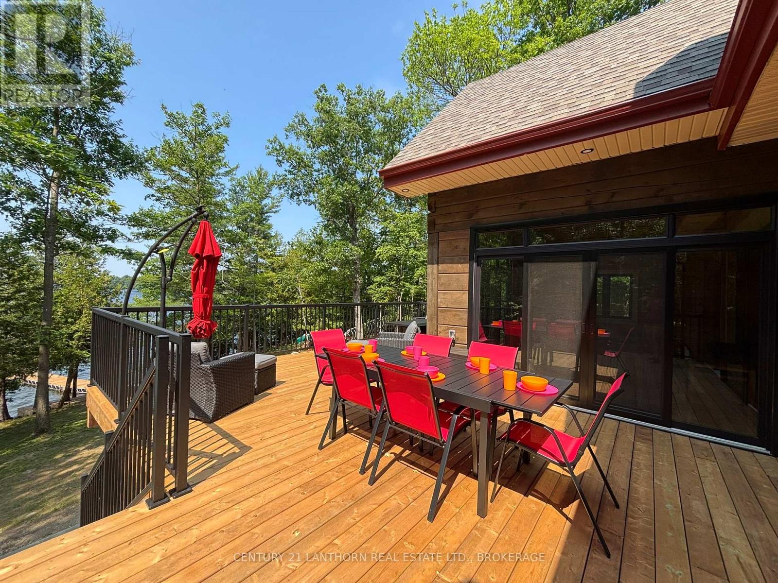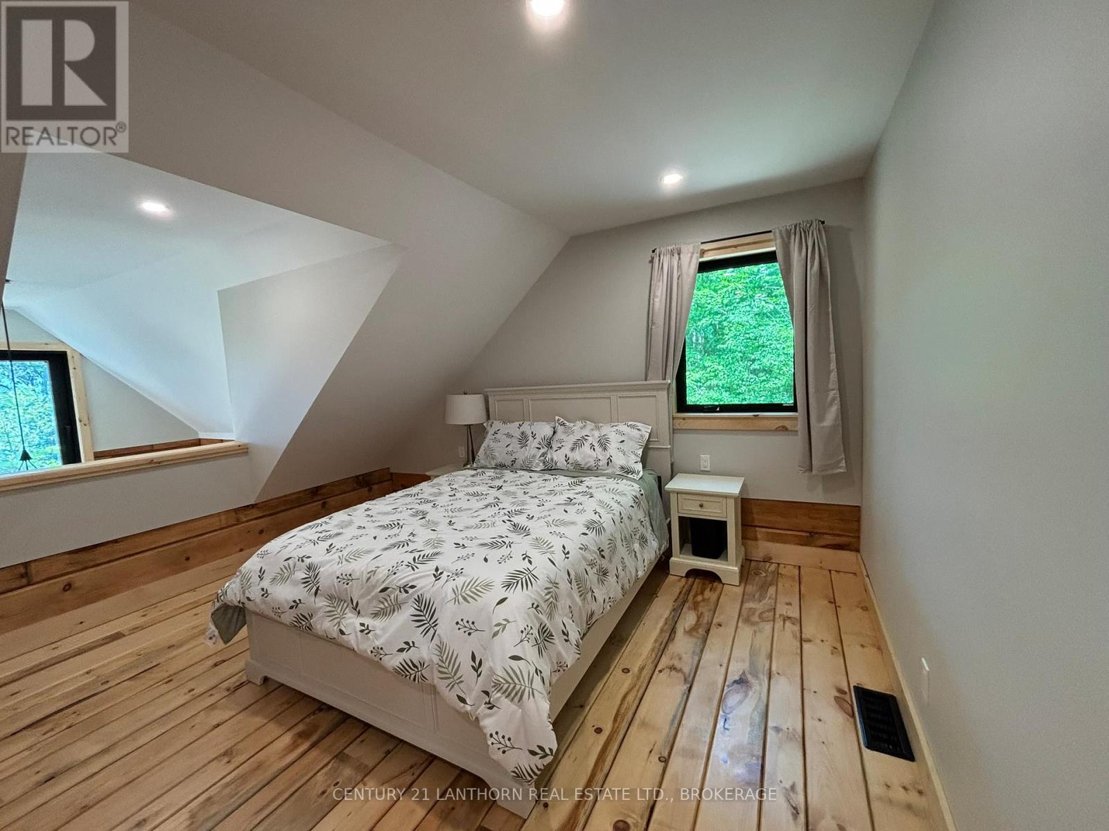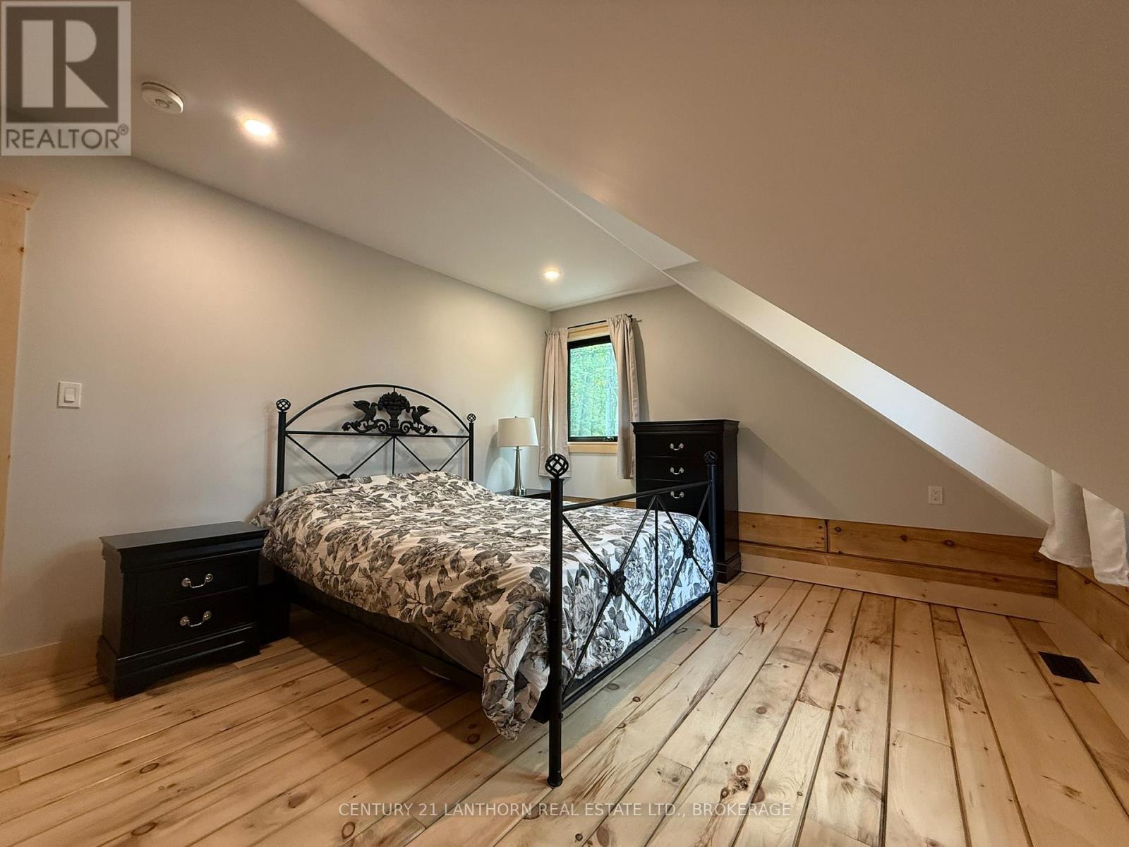 Stunning waterfront retreat on desirable Sharbot Lake. This fully renovated log home sits on a private 3.1-acre lot with mature trees, rocky shoreline, and peaceful views. Featuring 4 bedrooms, 2.5 baths, and upscale finishes throughout, including a heated ensuite floor, the home offers bright open-concept living with large windows showcasing the landscape. The property includes a detached garage with carport and loft, plus a versatile 1,080 sq ft auxiliary building with a cozy Bunkie, new bathroom, and flexible space for a workshop, studio, or recreation. Both main and auxiliary buildings have 200-amp service. Enjoy privacy, natural beauty, and year-round lake living-perfect as a family retreat or investment property. Move-in ready and waiting for you! Please do not visit property without a licensed Realtor. (id:64974)