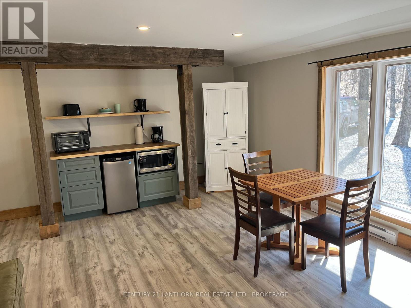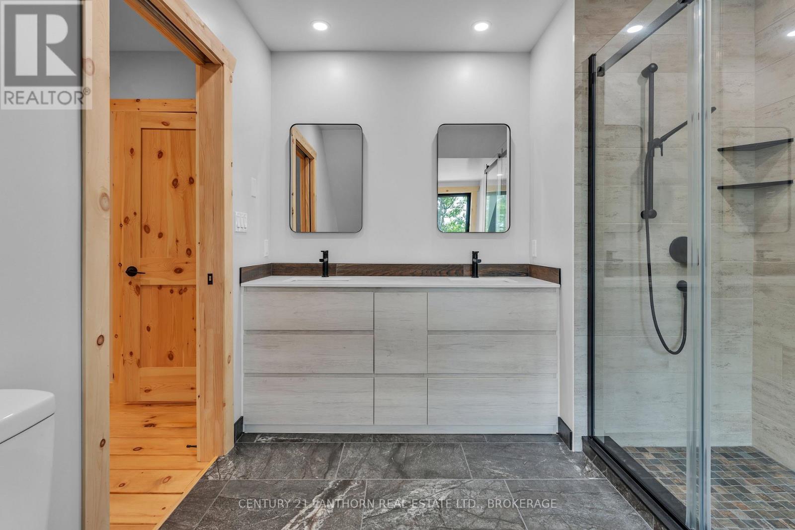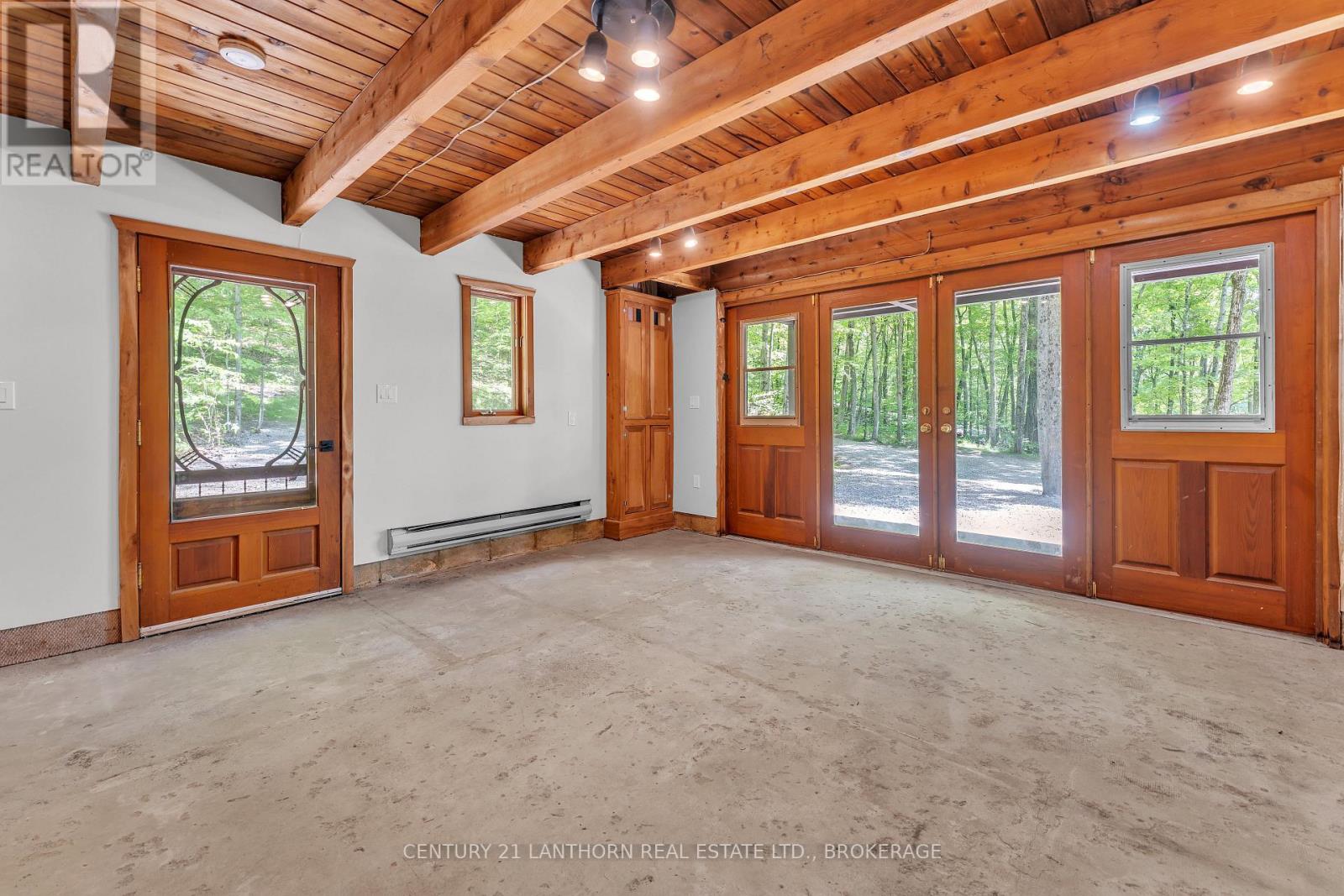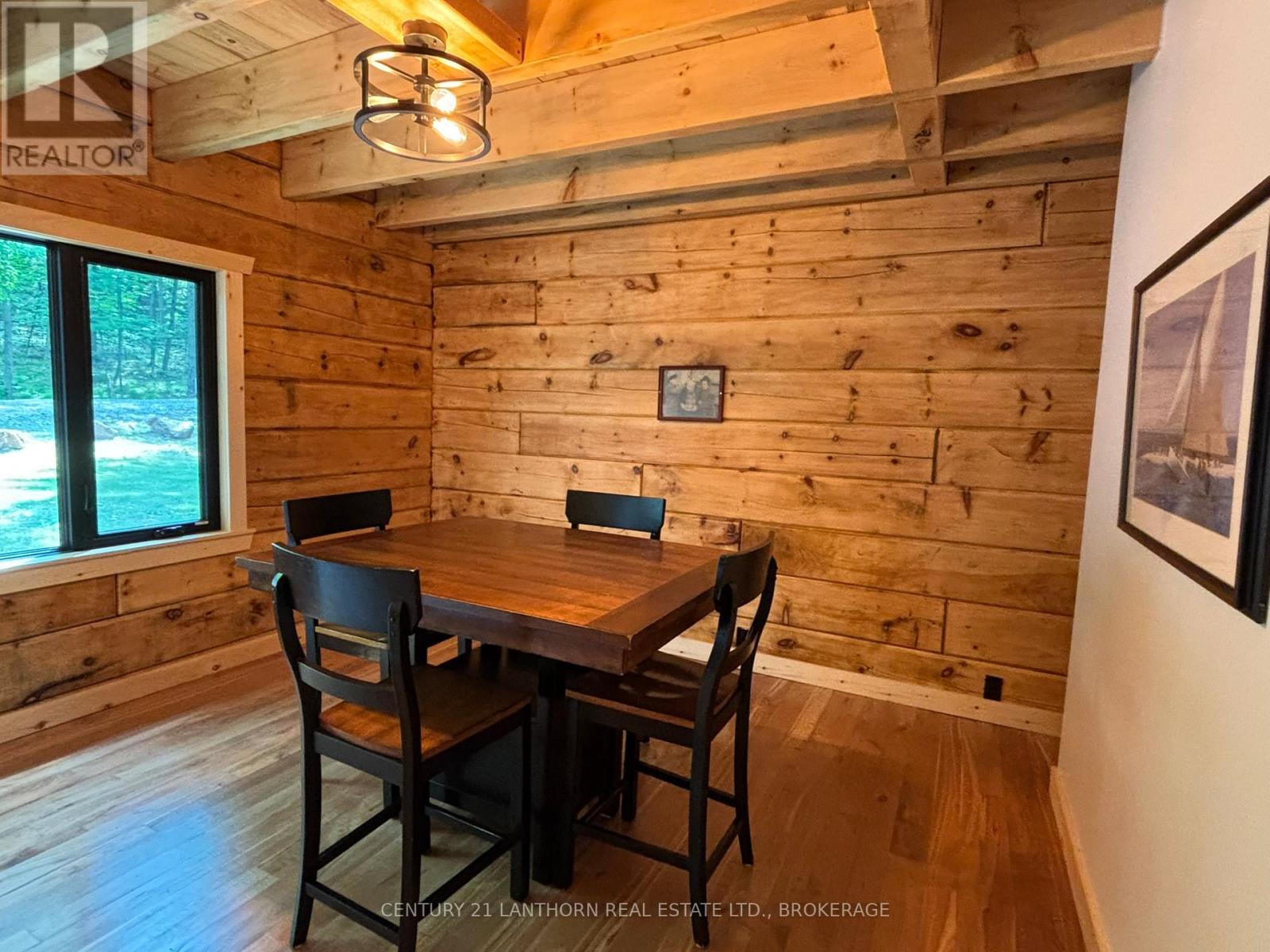 Stunning waterfront retreat on desirable Sharbot Lake. This fully renovated log home sits on a private 3.1-acre lot with mature trees, rocky shoreline, and peaceful views. Featuring 4 bedrooms, 2.5 baths, and upscale finishes throughout, including a heated ensuite floor, the home offers bright open-concept living with large windows showcasing the landscape. The property includes a detached garage with carport and loft, plus a versatile 1,080 sq ft auxiliary building with a cozy Bunkie, new bathroom, and flexible space for a workshop, studio, or recreation. Both main and auxiliary buildings have 200-amp service. Enjoy privacy, natural beauty, and year-round lake living-perfect as a family retreat or investment property. Move-in ready and waiting for you! Please do not visit property without a licensed Realtor. (id:64974)