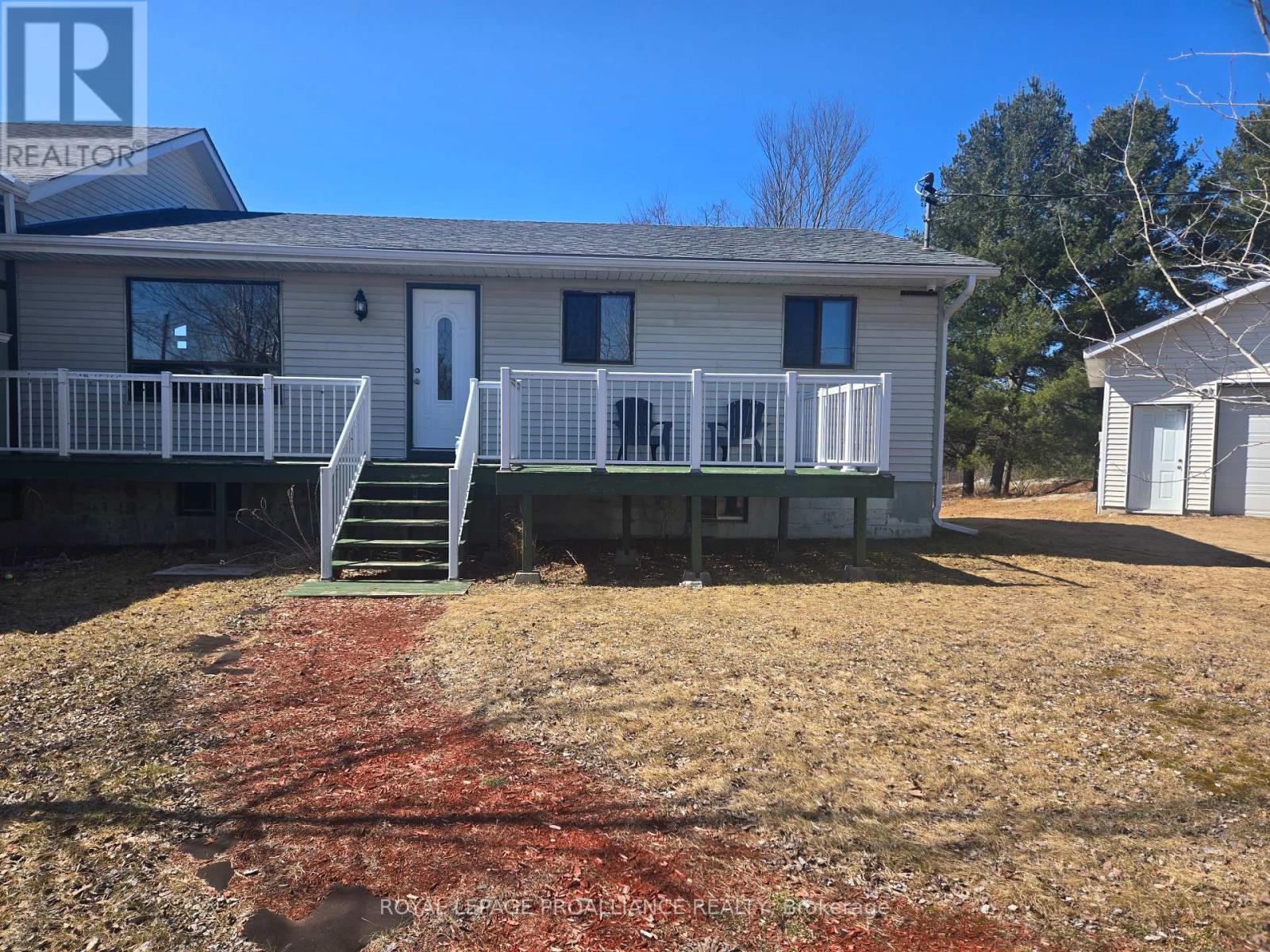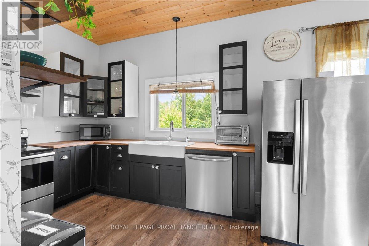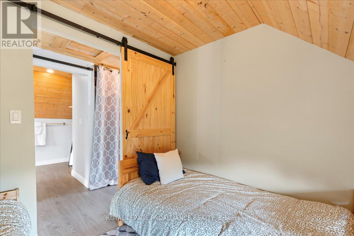 Set on 24 acres of private land, this exceptional property offers endless possibilities-whether for year-round living, recreational use, or working from home. This peaceful retreat must be seen to be fully appreciated. Start your mornings on the second-floor deck with a coffee in hand, taking in sweeping views of your own acreage and the abundant wildlife the Addington Highlands are known for. In the evening, return to the same spot to unwind and watch the sun set after a day spent exploring the property. Built in 2019, the home features open-concept main-floor living with soaring ceilings, expansive windows, a cozy propane fireplace, and a heat pump providing efficient heating and cooling. The main level also includes a 2-piece bathroom and a walkout to a covered porch. Upstairs, the spacious primary suite offers a walk-in closet, wall-mounted fireplace, a luxurious ensuite bathroom, a laundry nook, and direct access to the upper deck. Outdoors, the property invites year-round enjoyment with ample room for hiking and ATVing, and is conveniently located close to established snowmobile trails-ideal for winter enthusiasts. Additional cold-season activities include snowshoeing, cross-country skiing, and wildlife watching. A screened-in gazebo tucked into the woods provides a peaceful setting for outdoor meals in warmer months, while a detached garage offers plenty of storage for vehicles, equipment, and recreational toys, making it easy to enjoy the country lifestyle in every season. (id:64974)