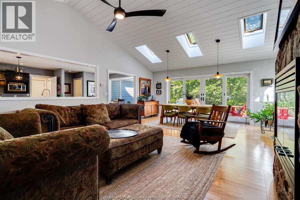 Nestled on a peaceful private drive, this charming home offers the perfect blend of tranquility and nature, sitting atop a scenic ravine on 1.2 beautifully treed acres. With 3 beds and 2 full baths, this residence is ideal for those seeking privacy and serenity, yet it's just moments away from the lake. The expansive primary bedroom wing provides a restful retreat, offering privacy and breathtaking views of the surrounding woods and ravine. Whether you're starting your day with a cup of coffee on the deck or unwinding after a long day, the peaceful ambiance of this home will have you feeling miles away from the hustle and bustle. The bright and airy living spaces flow seamlessly, with large windows bringing in plenty of natural light, and the surrounding trees ensuring a private, nature-filled experience. With ample space for outdoor activities and a large, treed lot that provides plenty of room for gardening or simply enjoying the natural beauty. (id:64974)