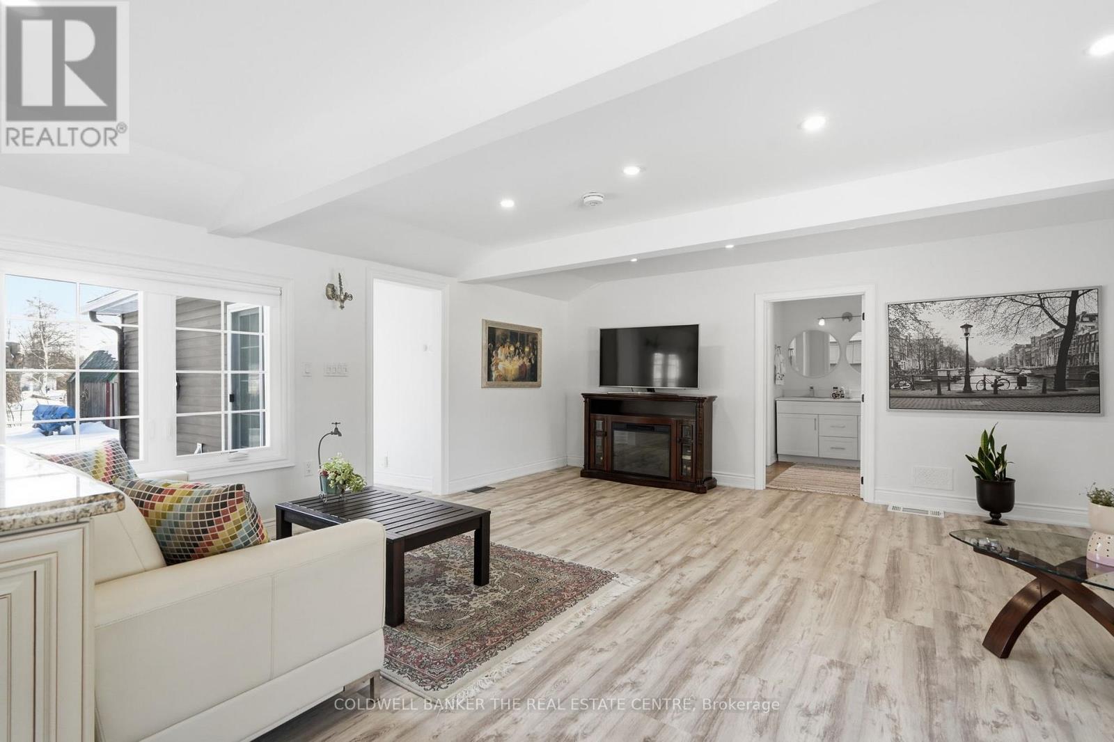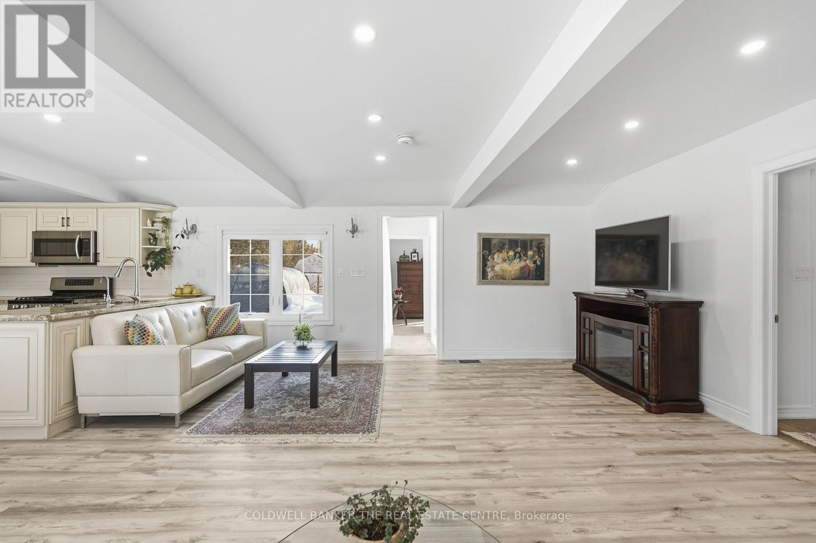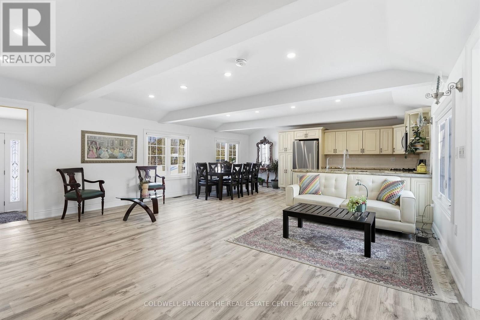 Imagine waking up steps from the lake and strolling across the street to the marina for your morning coffee. Welcome to this beautifully renovated 1,119 sq ft bungalow in the desirable community of Gilford, where lakeside living meets modern comfort. Perfectly located just minutes to Hwy 400 yet tucked in a quiet neighborhood, this home is move-in ready and ready to welcome you. Step inside to a bright, open-concept living space filled with pot lights throughout, creating a warm and inviting atmosphere day or night. The beautifully renovated kitchen is the heart of the home, complete with stainless steel appliances, abundant cabinetry, and seamless flow into the living area - perfect for entertaining or cozy nights in. The home features two spacious bedrooms, including a primary retreat with walkout access to your private backyard. The spa-inspired bathroom boasts a double vanity and a separate area with a rainfall shower, combining function with everyday luxury. Meticulously maintained, the home offers tons of built-in cabinetry and smart storage throughout, reflecting true pride of ownership. Outside, a large driveway with ample parking and a private backyard provide the perfect setting for summer evenings, weekend barbecues, or just unwinding after a day on the water. Whether you're searching for a year-round residence or a weekend lakeside escape, this Gilford bungalow isn't just a home - it's a lifestyle. *Washing machine and fridge-1 year, HWT-1 year, Furnace- 5 yrs, Insulation (roof & walls- 1 week) (id:64974)