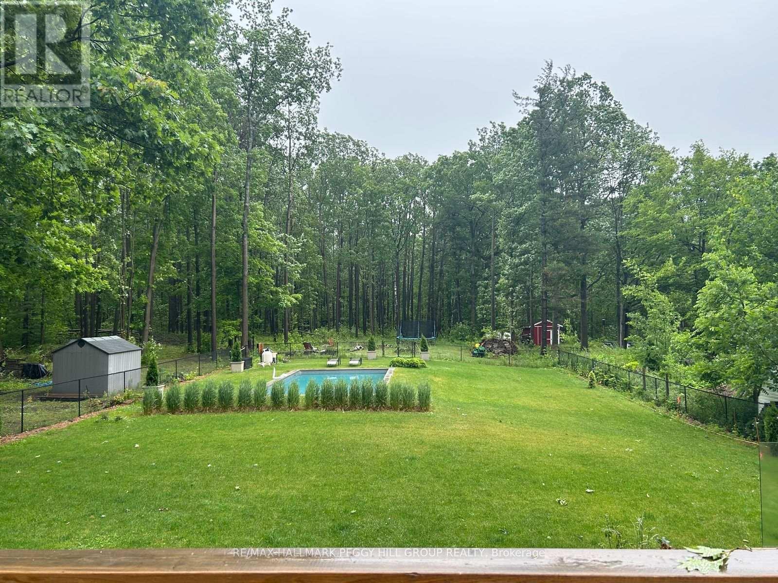 RARE FOREST-BACKED BUNGALOW WITH OPEN-CONCEPT LIVING & UNMATCHED CONNECTION TO NATURE! Set well back from the road among the trees, this beautifully finished bungalow feels like a private retreat where everyday life is centred around nature, fresh air, and time outdoors. The 0.896-acre lot backs onto forested agricultural land and offers rare access from the backyard into approximately 20 sq km of lush forest, so you can step straight from your lawn into nature for quiet walks, serenity, and a healthy, active lifestyle. Outside, interlocking walkways, colourful flower beds, and an irrigation system create a vibrant, beautifully maintained setting around an inground pool and a two-tier deck that give the backyard a spa-like feel. A large circular driveway leads to a detached double garage with an electrical panel, while inside, the bright main level features an open concept layout that keeps the living room, dining room, family room, and upgraded kitchen connected for easy everyday living. The kitchen is finished with quartz counters, stainless steel appliances, a walk-in pantry, and a large island with built-in electrical, and opens to a heated sunroom with Italian tile, panoramic forest views, and a walkout to the deck. The main level boasts sleek hardwood flooring, pot lights throughout the open living area, three comfortable bedrooms, and two full baths, while the family room is anchored by a natural gas fireplace with a floor-to-ceiling surround for cozy evenings in. The finished basement rec room offers extra living space for hobbies or movie nights, along with a large storage area and convenient laundry facilities, and the home is freshly painted throughout with updated windows, furnace, roof, front closet, and doors. Bringing together peaceful surroundings, unmatched forest access, and carefully designed living spaces, this #HomeToStay delivers a beautiful retreat in a rare natural setting that inspires wellness, comfort, and everyday tranquillity. (id:64974)