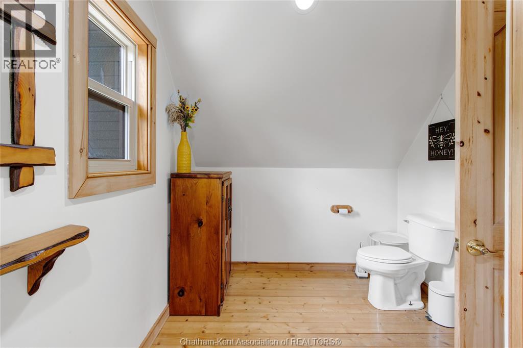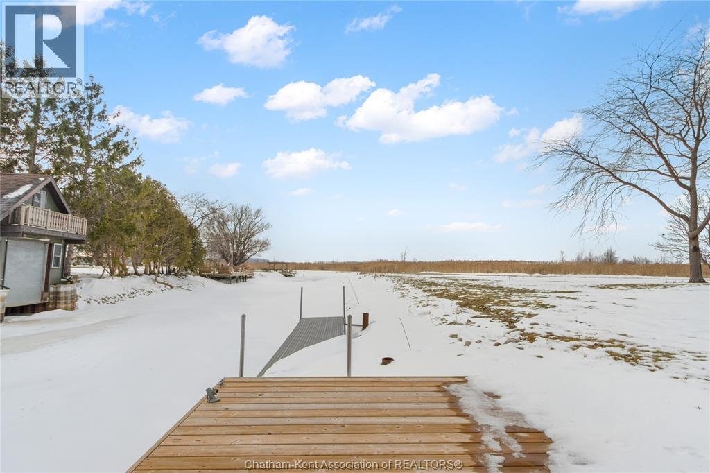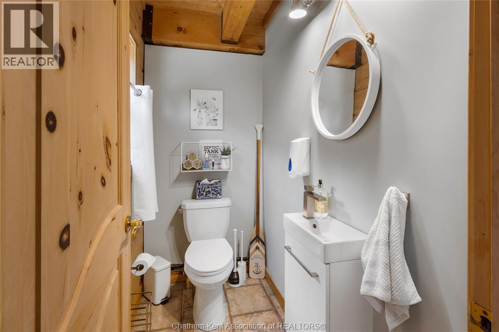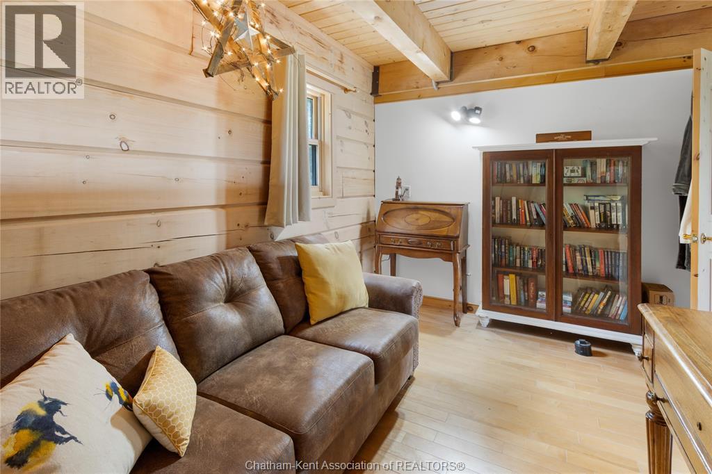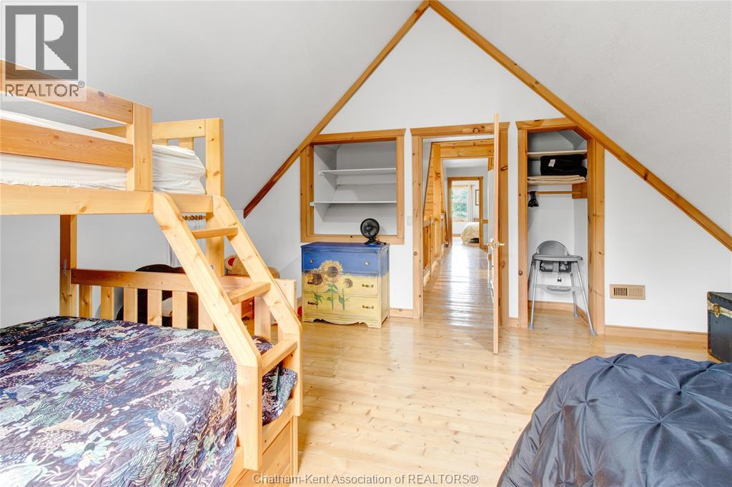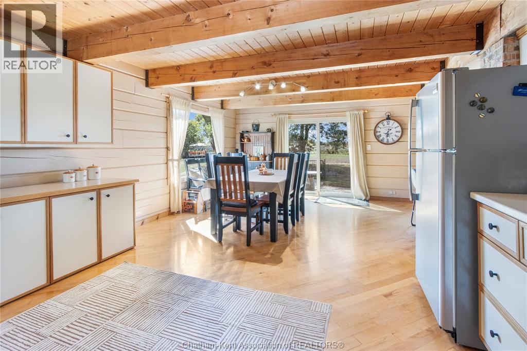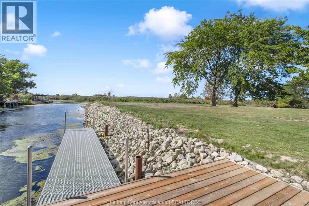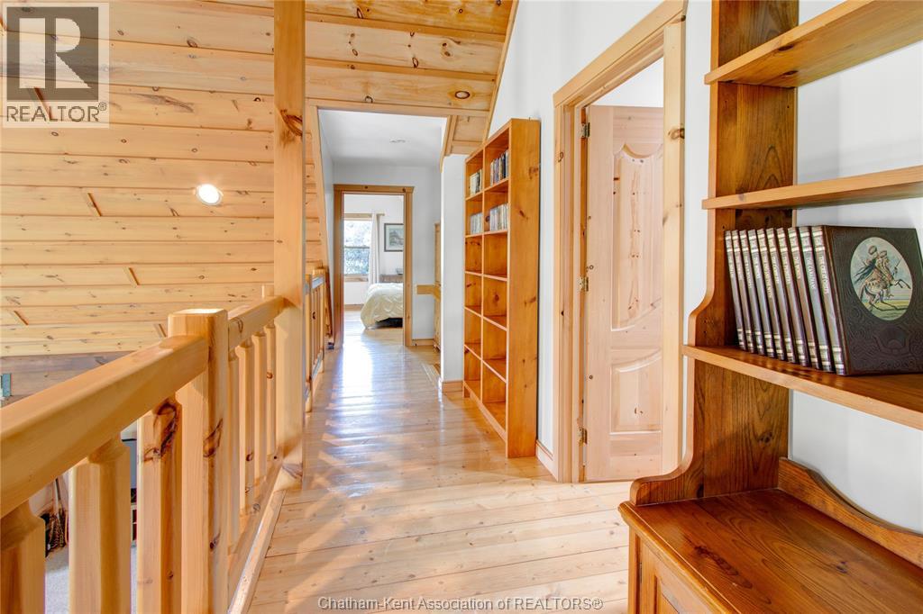 Embrace this impressive Confederation Log Home tucked away in a private retreat offering approximately 500 ft of canal waterfront and sitting on an impressive 2-acre lot. Inside this unique home, you’re met with an exceptional layout featuring a large great room with cathedral ceilings and an open balcony overlooking the space below. You’ll notice the rich wood tones, exposed beams, and detailed joinery showcasing the expert craftsmanship throughout. The massive eat-in kitchen provides plenty of room for large gatherings, dinners, and entertaining, with patio door access to the outdoor area where you can relax and take in beautiful canal views, wildlife and breathtaking sunsets! Enjoy the convenience of main floor living with a spacious primary bedroom offering a roughed-in ensuite with a walk-in closet area. A large foyer, a 2pc bath and laundry room complete the main floor. Upstairs, you’ll find two generous bedrooms and a 4pc bathroom. Outside, there’s room to roam across three parcels of land with a new wood and steel dock! This place really sets the tone for relaxation and enjoying life on the water. With access to Rondeau Bay, you can swim, boat, and fish in world-class waters right from your backyard. The heated oversized double detached garage/shop provides ample space for all your toys, a workshop, or future projects while you enjoy this peaceful and private setting. Services include municipal water, natural gas, septic and well water for your gardening or other uses! This property is truly one-of-a-kind!! Don’t miss your chance to make it yours. Call today for more information or to schedule your private viewing! (id:64974)