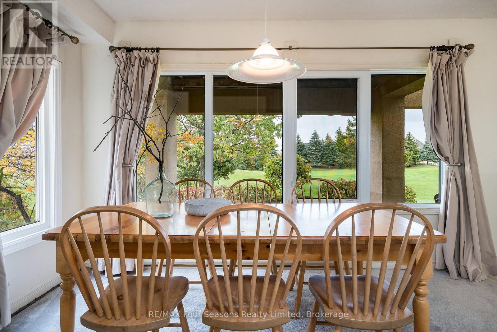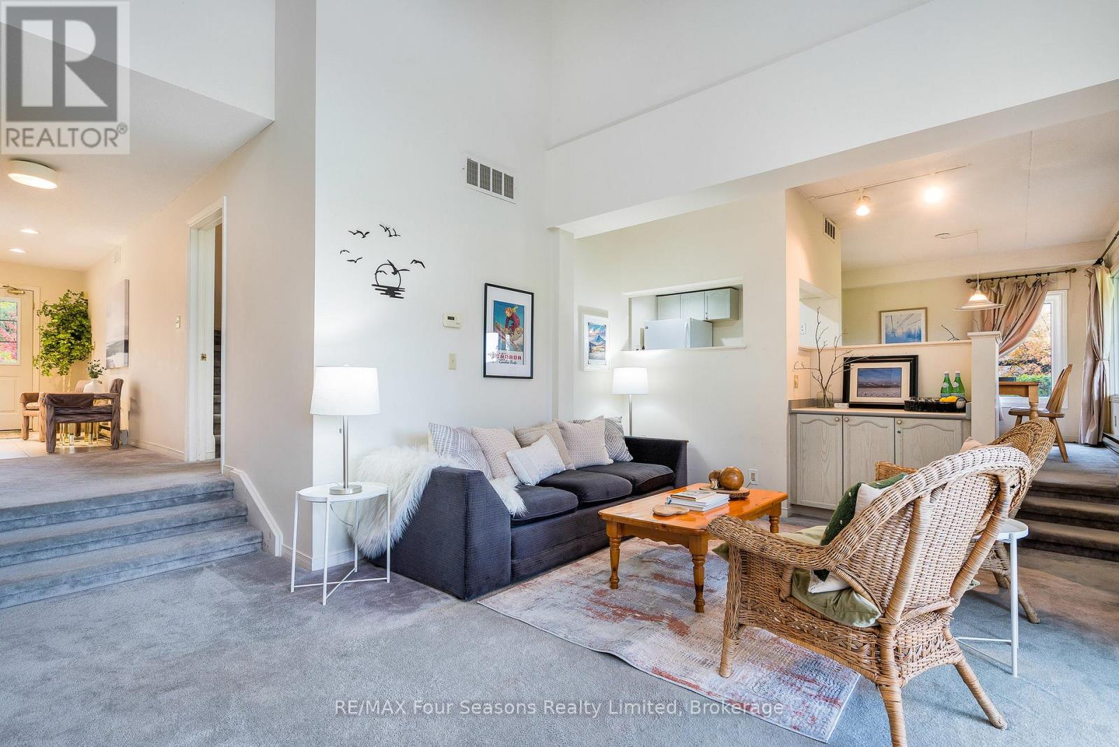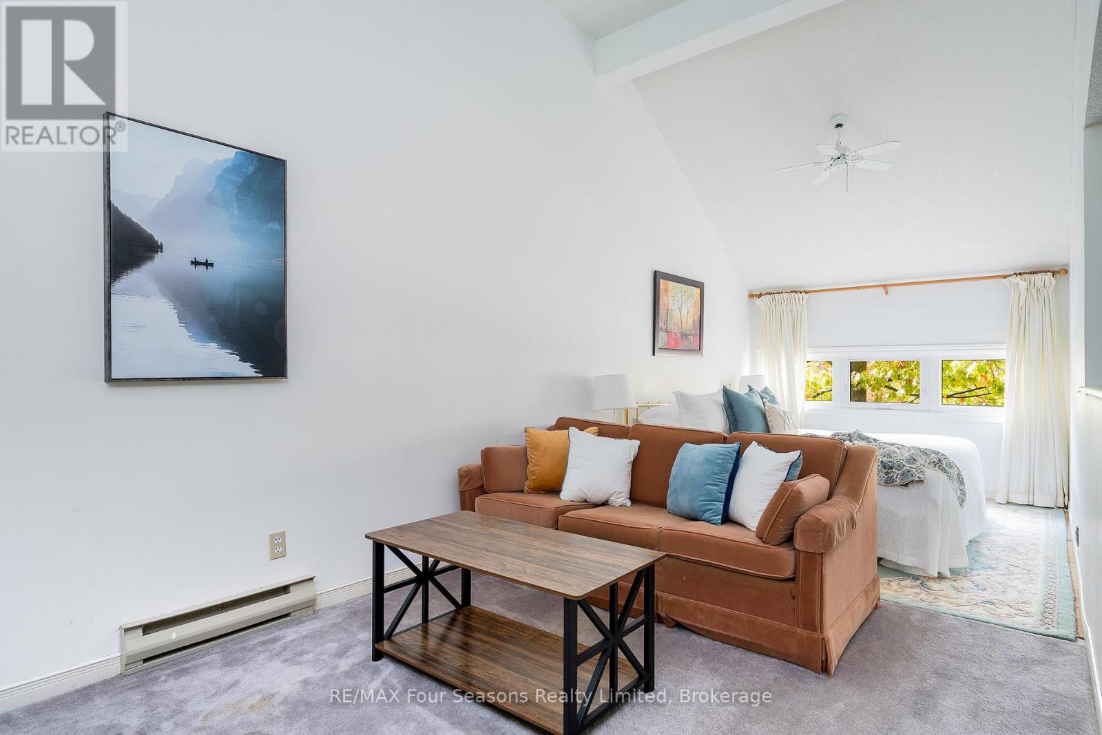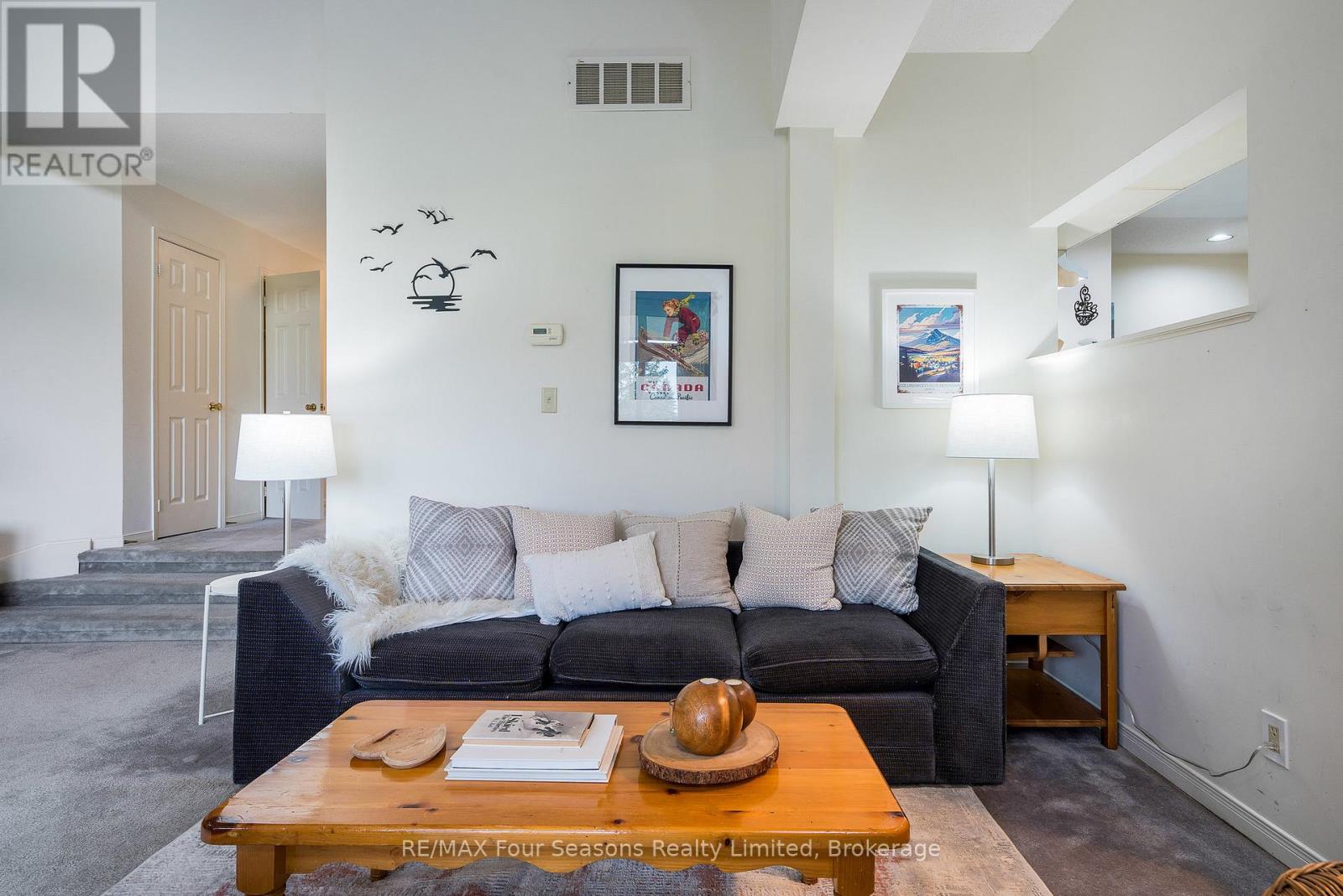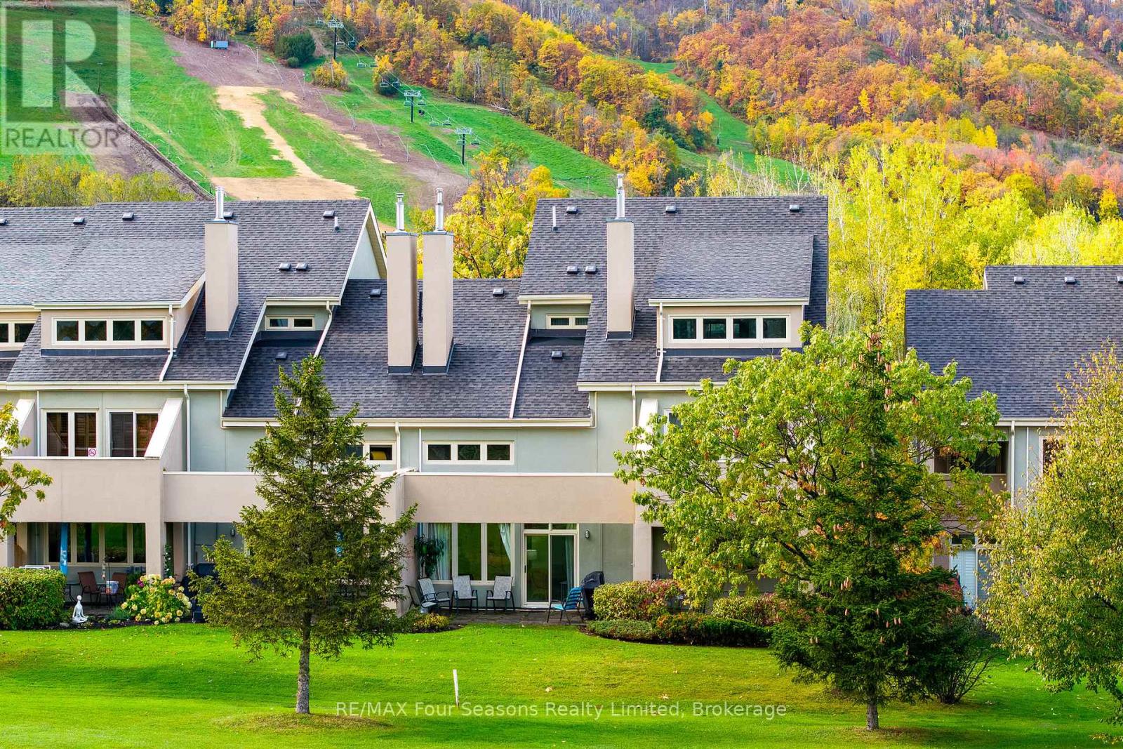 LOCATION, LOCATION, LOCATION! Welcome to Wintergreen, zoned for short-term rentals, enjoy a private getaway, a profitable Airbnb/VRBO rental or a combination of both to help pay the bills! This 3-bedroom, 2-bathroom townhome is perfectly located just a 2 minute walk to Blue Mountain Village, Monterra Golf and skiing at Blue. Designed for comfort and convenience, this condominium backs onto the 1st fairway of the award-winning Monterra Golf Course, and offers stunning year-round views of both the course and the nearby ski slopes. A perfect spot to relax after an active day outdoors, the main level boasts an inviting living/dining area highlighted by vaulted ceilings and a gas fireplace with a walk-out to the patio backing onto the golf course. A well-equipped kitchen, cozy primary bedroom with an ensuite and sauna, a second bedroom, full bathroom and lots of closets for storage. Upstairs, a spacious third bedroom with a sitting room provides an ideal retreat for guests, extended family or kids. Additional features include central air conditioning, an on-demand hot water system, and a convenient in-suite washer and dryer. Monthly condo fees include internet, cable, exterior upkeep, snow removal, and landscaping for easy, worry-free living. Enjoy Blue Mountain Village's shops, restaurants, and entertainment, this property embodies the ultimate "live where you play" lifestyle. Whether enjoyed as a private getaway or a profitable Airbnb/VRBO rental for investors, Wintergreen delivers both versatility and charm. Buyers are advised to complete their own due diligence regarding Short-Term Accommodation (STA) licensing and condominium regulations. (id:64974)