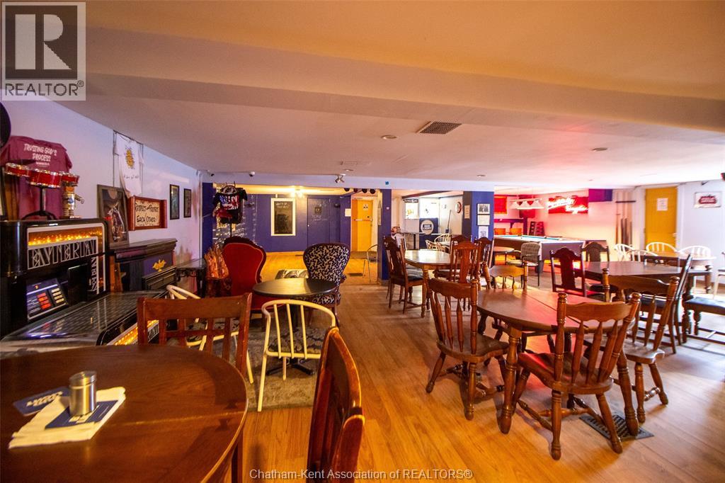 Own a piece of Chatham’s history with this incredible commercial property near downtown! Featuring an open-concept layout with a classic horseshoe bar, full kitchen, and walk-in cooler, this space is perfect for a restaurant, bar, or event venue. With a capacity of 149 guests, it offers ample room for dining and entertainment. The outdoor patio and private parking lot provide additional opportunities for expansion, whether for al fresco dining, events, or other business ventures. This prime location, rich in character and potential, is ready for your vision. Don’t miss out on this rare opportunity—schedule a tour today! (id:64974)