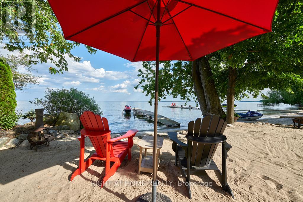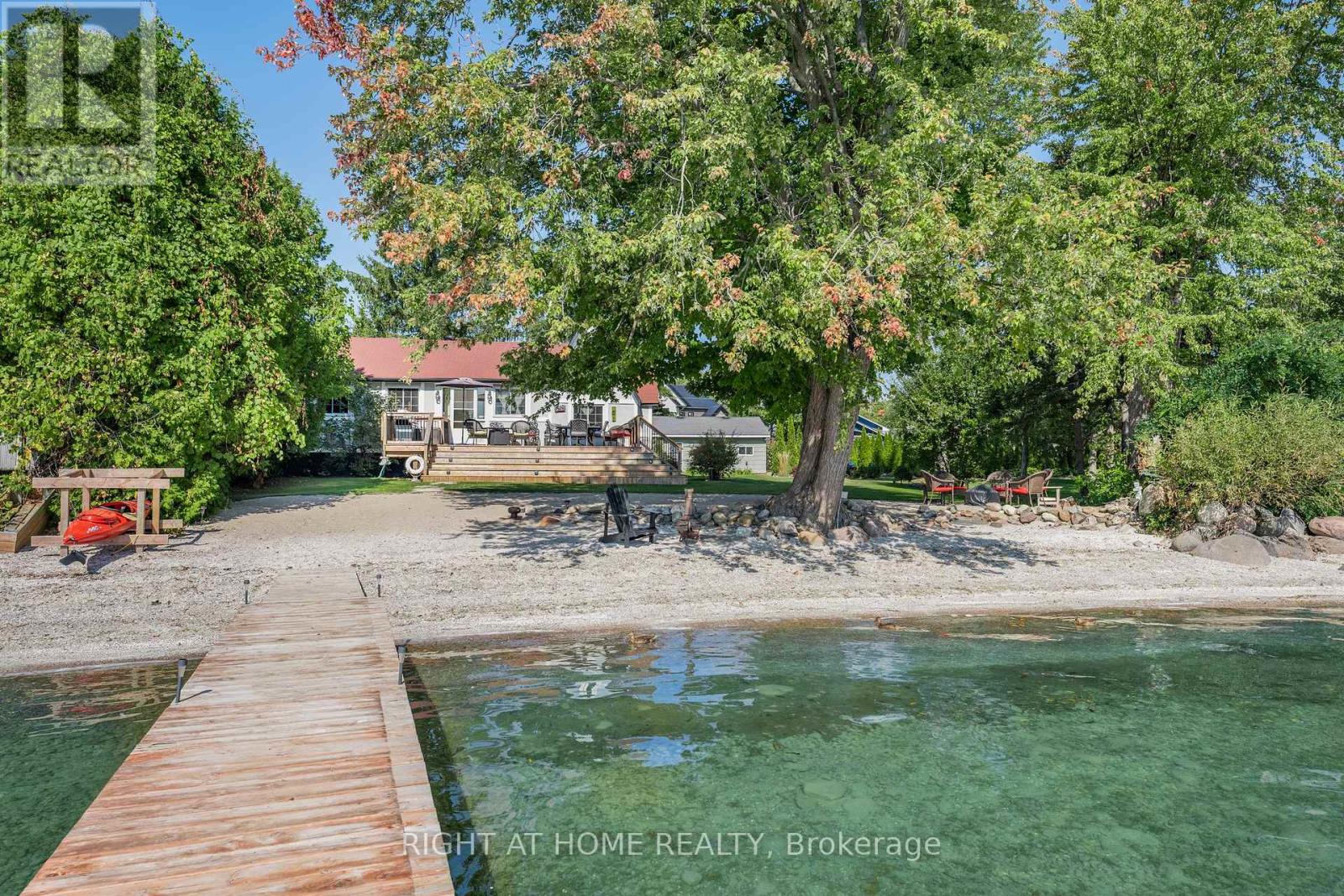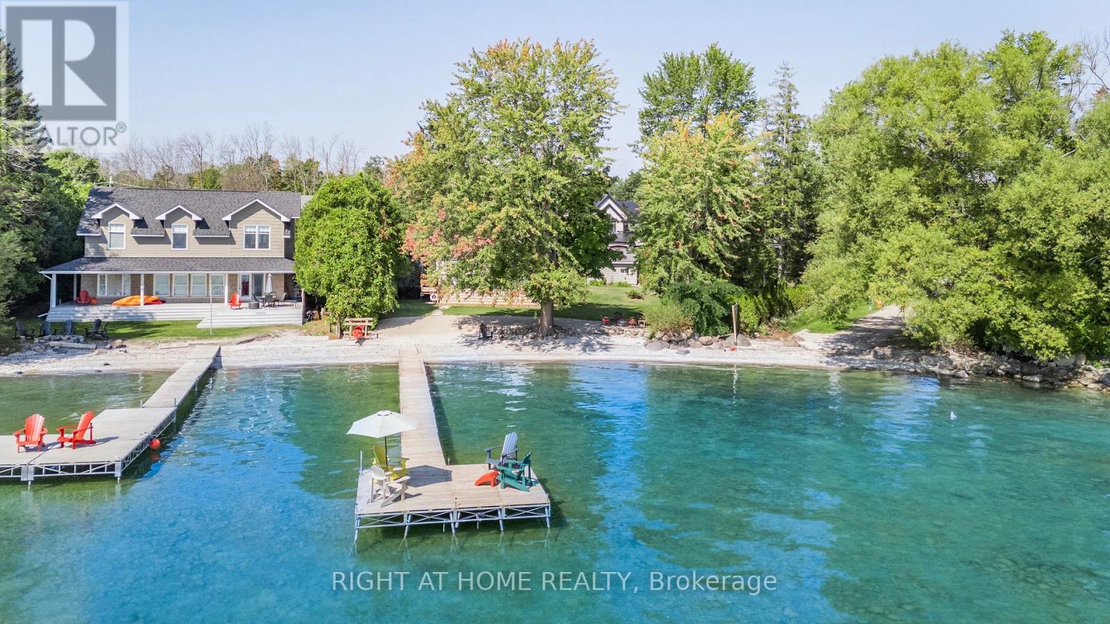 MOVE IN TOMORROW FULLY FURNISHED! Beautiful Waterfront Property in Big Bay Point! Over 1/2 acre with unobstructed views of Lake Simcoe from almost every angle of the property. Owner will sell as a Turn Key Property so just pack the Car and Enjoy this summer on the Water or rent it out and make $$. Pie shaped Lot will allow for a much Larger Home, or enjoy the existing 4 season residence. 85 feet of Sandy Beach Area. 73 ft of direct Water front. Enjoy the large Dock with a T-head Seating Area for entertaining. This property has a lot to offer including the 4 season Home with Great Room and a cozy fireplace, Large Deck for entertaining. Bbq with Gas Hook up. Double Car Detached Garage and a shed to store the water Toys. Very few properties in Big Bay Point that have lots like this. Book a private showing today! Come see the potential this property has to offer! This Property and Lot size must been seen to be appreciate. Close to Friday Harbour to enjoy their fine Restaurants and shopping. (id:64974)