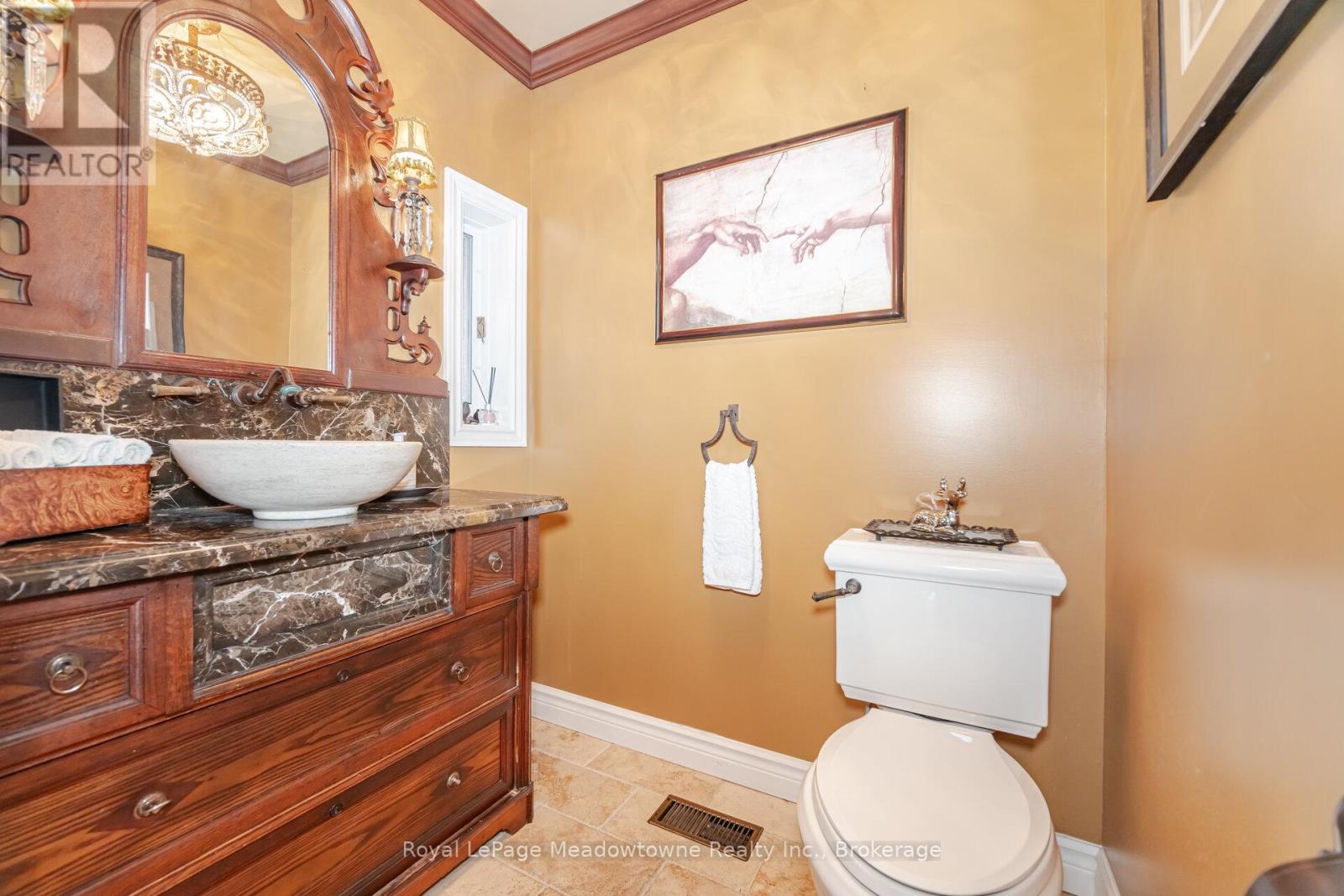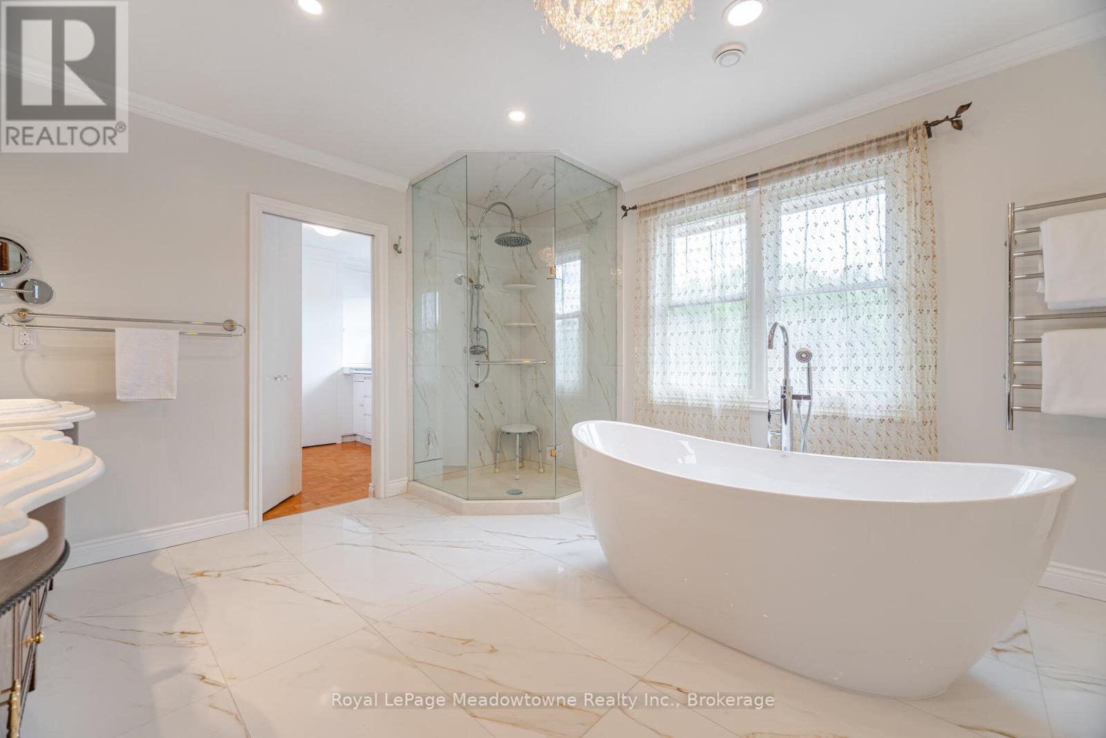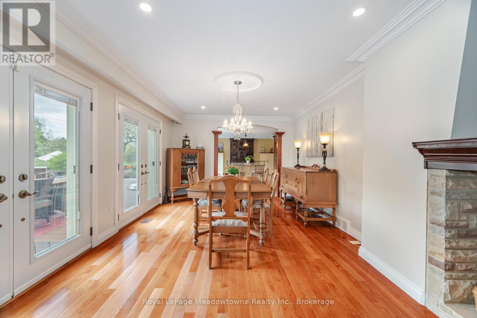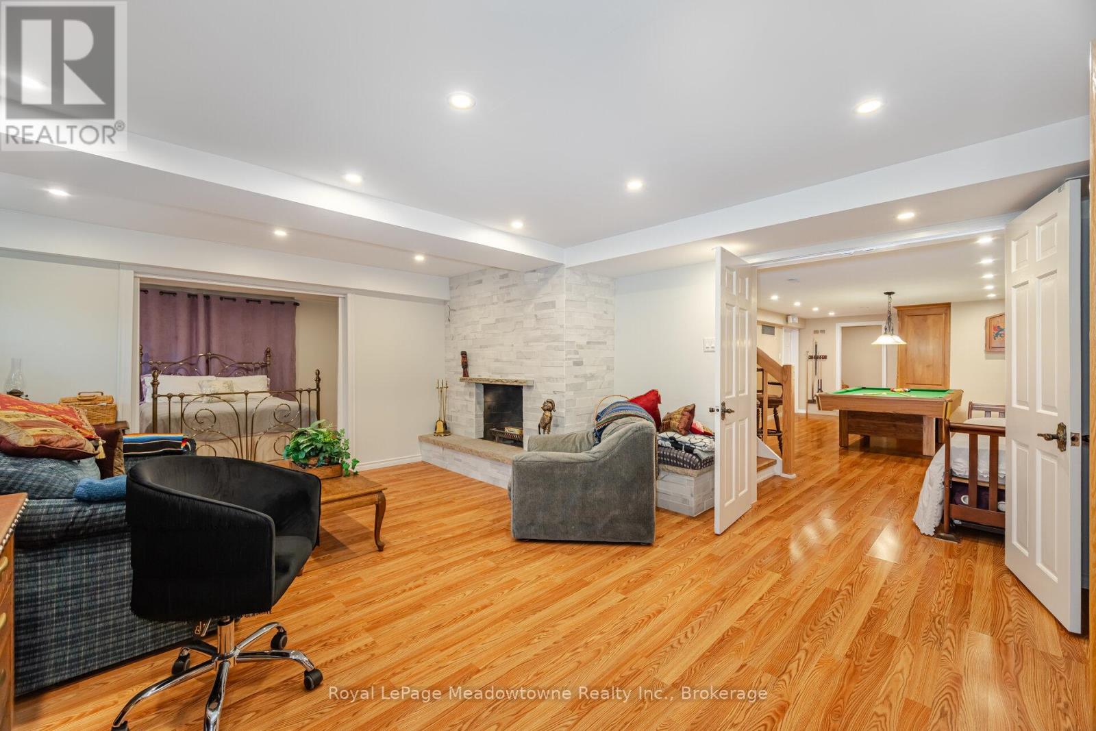 19.3 ACRES!! Elegant 3+1 Bedroom, 4 Bathroom Georgian-Style Home situated on a unique, one of a kind property that is very private and well set back from the road on 19.3 Acres. This beautifully updated and impeccably maintained home blends timeless style with modern luxury. A grand foyer welcomes you into spacious, light-filled rooms featuring hardwood floors, crown moulding, and panoramic views. The great room boasts a wood-burning fireplace and bay window, while the chefs kitchen offers custom cherry wood cabinetry, granite island, built-in appliances, a large window that overlooks the pool and garden, and a walk-out to the entertainers deck overlooking a previous gold award winning saltwater pool with Halton Pools, hot tub perennial gardens and an enclosed garden 30x80 feet area with raised garden boxes with cold frames. Upstairs, the luxurious primary suite includes motorized blinds, double closets with organizers, and a stunning ensuite with standalone tub, rain shower, and custom walk-in closet. Two additional bedrooms share a Jack-and-Jill bathroom with separate wet room. The finished basement offers a rec room with fireplace, games room, bedroom, sauna, 3-pc bath, cold room, mechanical room and ample storage. Extras include a pool house with bar/change room, den with custom built-ins, second kitchen, tool room, potting room, 220amps electrical, and access to wooded trails, gardens, and Speyside Creek. Peaceful country living just minutes to city amenities! (id:64974)