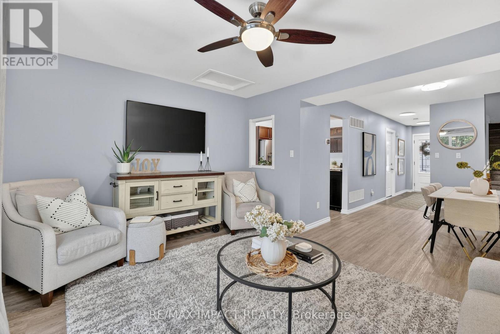 Welcome to this beautifully maintained 3-bedroom condo townhome located in Oshawa's desirable Centennial community. This bright and inviting home features a spacious, open-concept living and dining area filled with natural light, making it perfect for everyday living and entertaining. The kitchen features ample cabinetry and a functional layout ideal for busy families. Upstairs, you'll find three generously sized bedrooms and a full bathroom, offering comfortable living space for growing families, first-time buyers, or those looking to downsize without compromise. The finished lower level provides additional versatile living space, perfect for a recreation room, home office, gym, or playroom. Step outside to enjoy your private outdoor space backing onto green space-a rare feature within the complex that adds privacy and a peaceful setting. Perfect for relaxing, entertaining, or enjoying the warmer months. Located in a well-maintained, family-friendly community close to schools, parks, shopping, public transit, and convenient commuter routes. A fantastic opportunity to own a move-in-ready home offering space, comfort, and low-maintenance living in a highly convenient Oshawa location. (id:64974)
