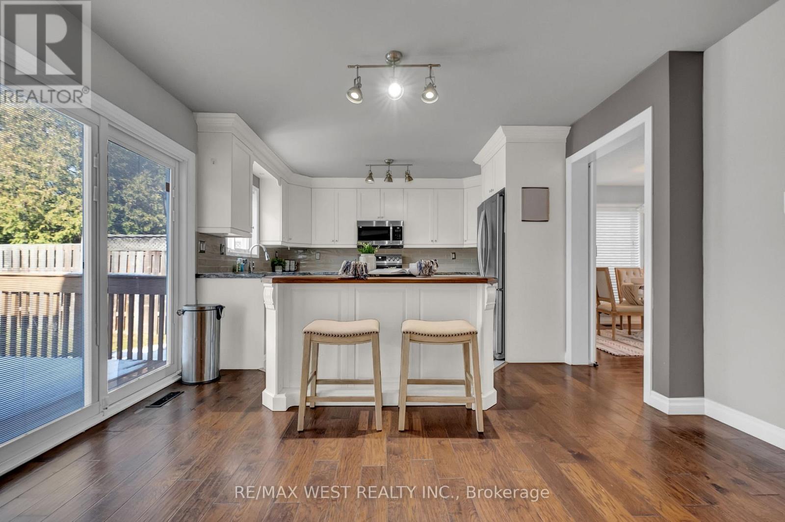 Welcome to a home that truly checks every box. Offering nearly 2,000 sq ft of well-designed living space, this 3+2 bedroom, 4 bathroom property delivers the perfect balance of functionality, comfort, and style for today's modern family.From the moment you walk in, you're greeted by soaring cathedral ceilings and oversized windows that flood the home with natural light, creating a bright and inviting atmosphere throughout. The open-concept layout seamlessly connects the living, dining, and kitchen areas-ideal for both everyday living and entertaining.The kitchen has been thoughtfully updated with granite countertops, custom cabinetry, porcelain flooring, and a stylish backsplash, all centered around a functional island-perfect for hosting or casual family meals. Hardwood flooring runs throughout the main living areas, adding warmth and elegance.Upstairs features a spacious primary retreat complete with a walk-in closet and a private 4-piece ensuite, along with generously sized additional bedrooms and fresh updates throughout.The fully finished basement offers incredible versatility with a separate in-law style setup, including its own kitchen, living space, two bedrooms, and a 3-piece bathroom-perfect for extended family or potential income.Step outside to a private backyard with a covered deck, creating the perfect setting for summer gatherings, BBQs, or simply relaxing at the end of the day.Located in a highly convenient area close to top-rated schools, parks, shopping, restaurants, and entertainment. Quick access to Highways 401, 407, and 418 makes commuting a breeze.This is the type of home that offers real value, flexibility, and lifestyle-all in one. (id:64974)