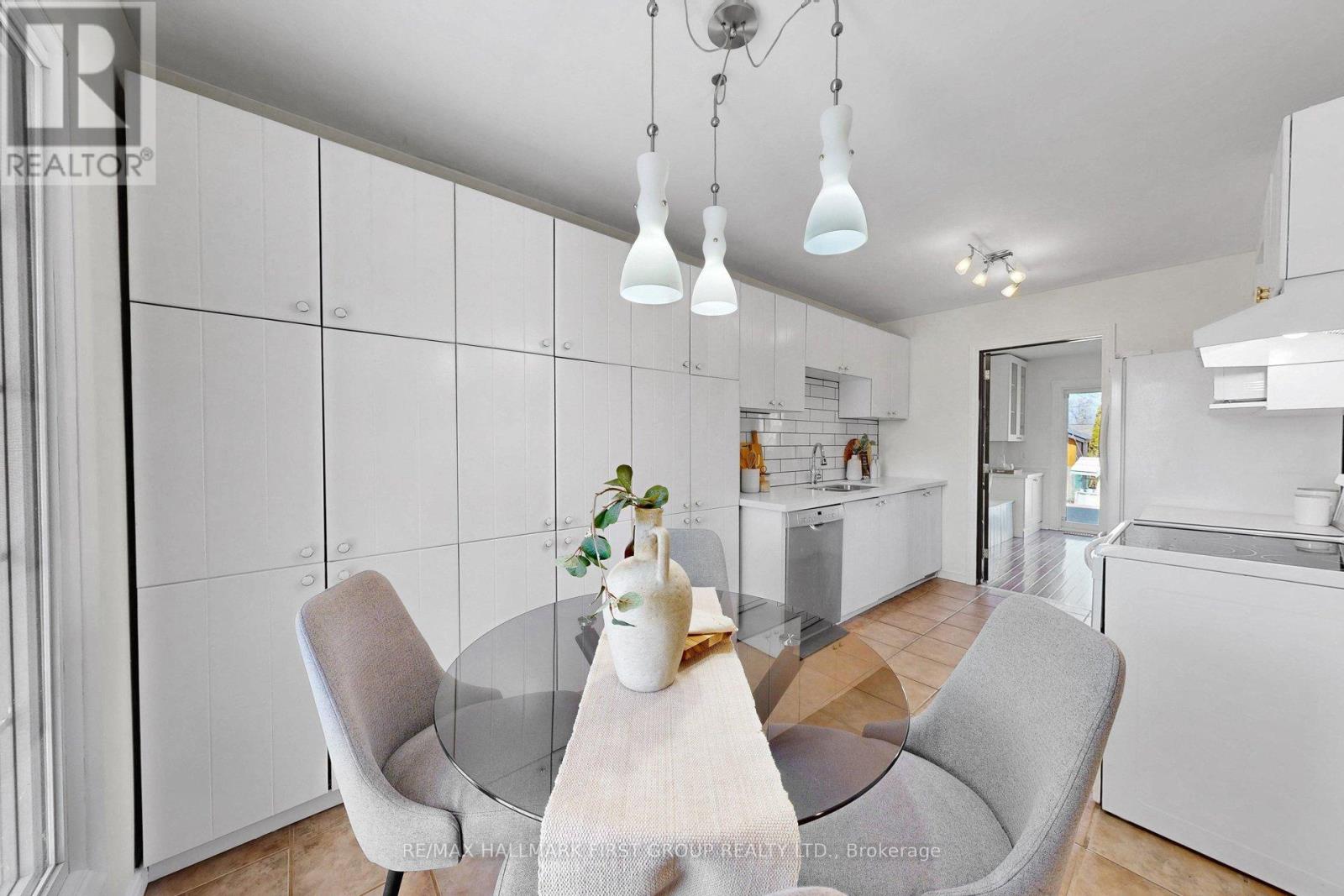 Welcome to 1138 Tanzer Court, a charming semi-detached 2-storey home tucked away in one of Pickerings most desirable family-friendly neighbourhoods. Perfectly blending comfort and style with prime location, this home has been thoughtfully updated and is move-in ready for its next chapter. Step into the heart of the home, where a recently renovated kitchen awaits with upgraded countertops, a stylish backsplash, and ample cabinetry to keep everything organized. Just off the kitchen, a cozy eating/dining area with custom added storage offers a perfect spot for casual dining and provides a walkout to your private outdoor retreat. The main floor continues with a bright living room, featuring a large and a welcoming fireplace to gather around on cooler evenings. Upstairs, the spacious primary bedroom offers plenty of room to unwind, while two additional bedrooms are filled with natural light, perfect for family, guests, or a home office. The updated upper-level bathroom adds a fresh, modern touch, making daily routines a little more enjoyable. The finished basement extends your living space with an entertainment area designed for movie nights or game days. Outside, the deep backyard is a true highlight - a beautifully landscaped retreat with a large deck and vibrant gardens, creating the ultimate entertainers paradise. You'll enjoy the best of Pickering living close to parks, schools, walking trails, shops, transit, and just minutes to the waterfront and 401 for easy commuting. Tons of storage with additional sheds in backyard. Extended driveway for 4 total parking spaces. This home is the perfect opportunity to get a freehold property with a large backyard, in the heart of Pickering. (id:64974)