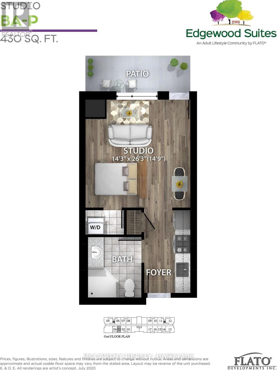 Adult 55+ Ground Floor Studio/Batchelor Apartment W/Patio,430 Sq Ft Edgewood Suites Adult Lifestyle Apartments The Heart Of Dundalk. This Is A Studio Apartment On The Ground Floor, Other units also available, Choose From Other Studio Rentals and One Bedroom Apartments. Beautiful Building with tile floors, carpet free, Common area Building Amenities, Games Room, Kitchen /Dining/ Gathering Room, Faith Room, Library, Gym, Guest Suite, 2 Patios One With Bbq Gazebo, Concierge. Cable/Internet Package Available Directly From Supplier. Parking is also available for Extra $35.00 per month (id:64974)