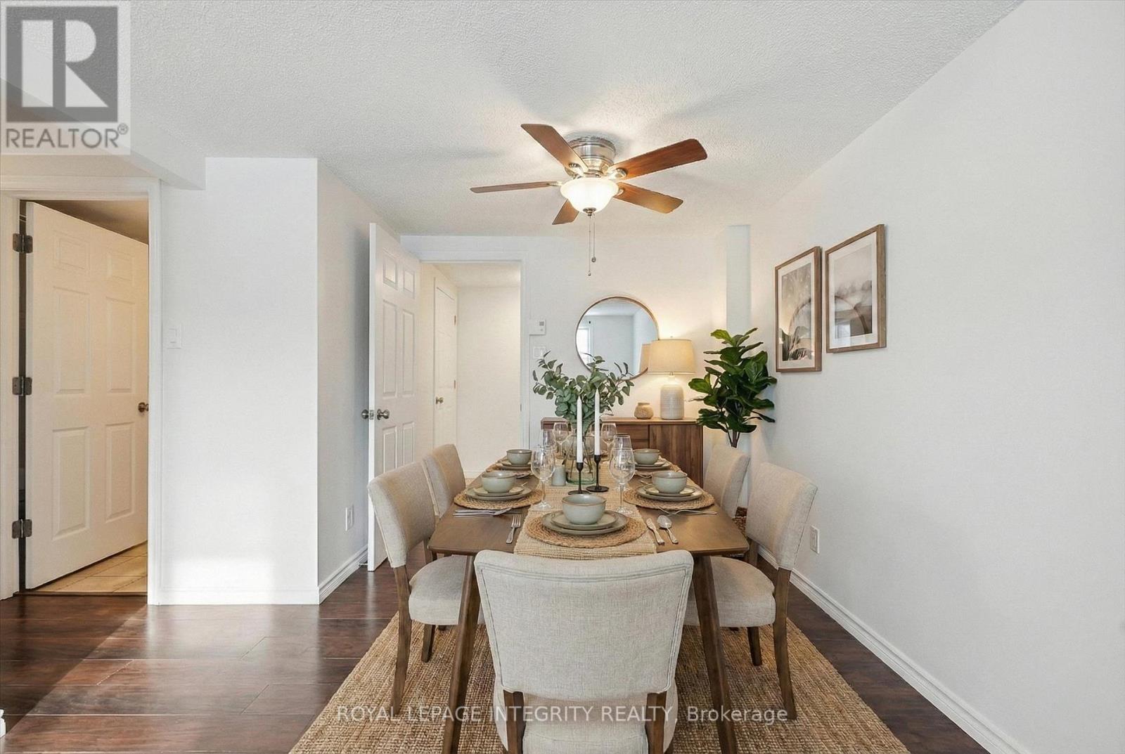 Perfectly positioned for easy living, this carpet-free 2-bedroom, 1.5-bath condo offers comfort, convenience, and value in a well-established Orleans community. The bright main-floor layout features a generous open living and dining space, ideal for both everyday living and entertaining, with patio doors leading directly to a private outdoor terrace - a rare bonus for condo living. The refreshed kitchen offers ample cabinet and counter space, white appliances including a dishwasher and microwave/hood fan combo for efficient, space-saving functionality. The bedroom quarters feature two well-proportioned bedrooms, both with great size closets, providing flexibility for small families, guests, a home office, or rental potential. The primary bedroom is complemented by its own private 2-piece ensuite with newer vanity, while both bedrooms share the full bathroom featuring a tiled tub/shower combination, also with a newer vanity. Shared laundry facilities are located within the building, and the unit includes one surface parking space with plenty of visitor parking throughout the complex. Optional underground parking may be available at an additional cost. Also included is a storage locker just down the hall! Recently painted in July 2025 and move-in ready, this property is an excellent option for first-time buyers, downsizers, or investors. Enjoy quick access to transit, shopping, schools, parks, river pathways, and scenic walking and biking trails, with a future LRT station just minutes away for effortless commuting. A smart opportunity in a connected, amenity-rich location. Quick possession available! (id:64974)