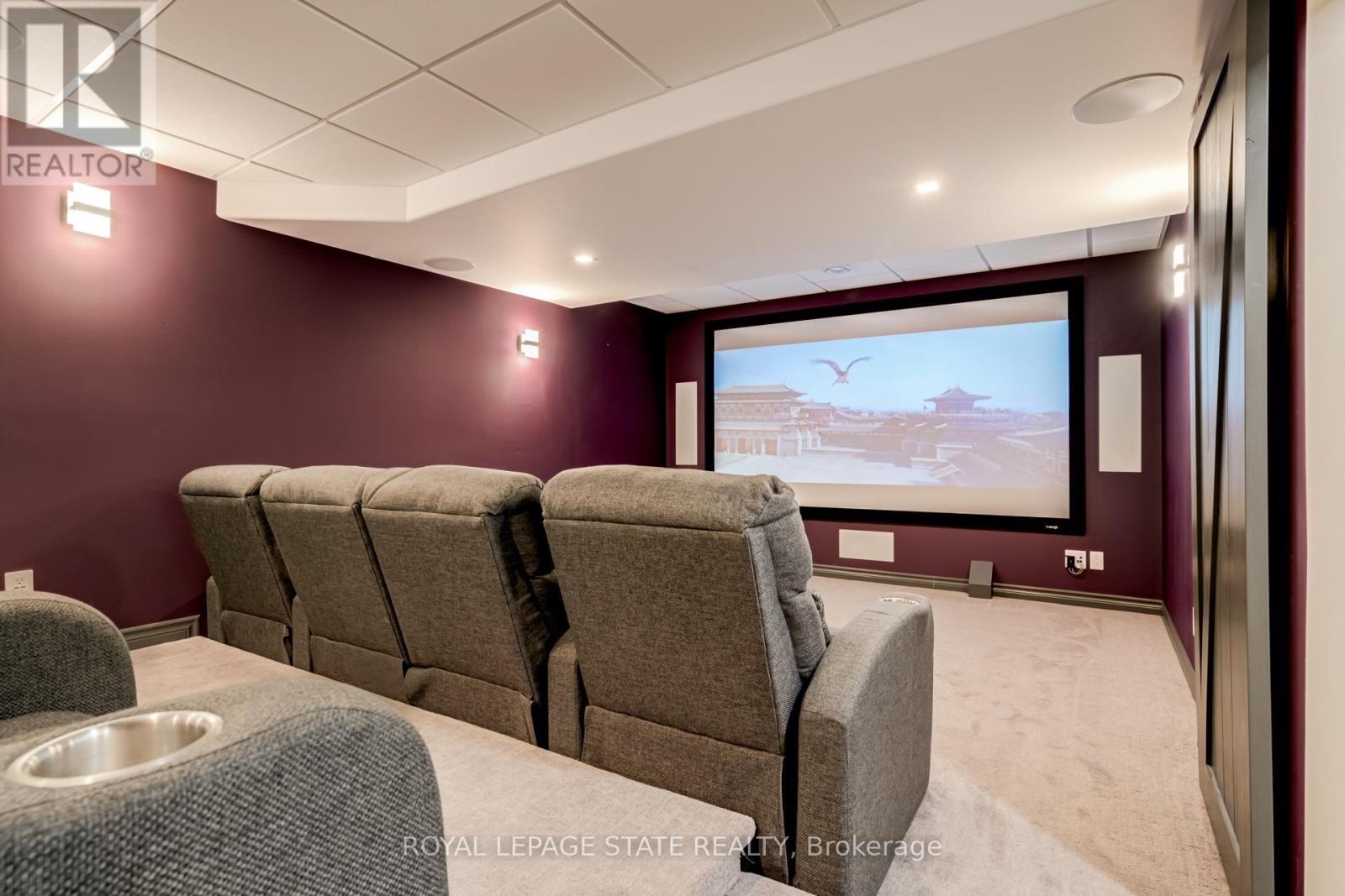 Custom designed two-storey home set on a premium 40 x 147 ft lot in the heart of Ancaster Meadowlands. Ideally located just steps to top-rated schools, parks, sports programs, shopping, dining, and every convenience at the Meadowlands Power Centre-with quick highway access-this is family living without compromise. Freshly painted throughout, the home feels new and move-in ready. The main level offers 9-foot ceilings, rich hardwood, and a striking double-sided gas fireplace that anchors the functional open-concept living spaces. The eat-in kitchen has been thoughtfully updated with two-toned cabinetry, quartz counters, and sleek black stainless-steel appliances. Upstairs, four spacious bedrooms provide flexibility for growing families, three featuring walk-in closets with custom organizers, and a 4-piece main bathroom. The primary suite is a private retreat complete with its own gas fireplace, spa-inspired ensuite, and the convenience of in-suite laundry. The fully finished lower level sets this home apart. It has been sound insulated with a raised ceiling and larger windows. Designed for both wellness and entertainment, featuring a dedicated home gym with commercial-grade flooring and a private home theatre with stacked recliner seating and a built-in bar. There is also a fifth bedroom or home office with a built-in desk and storage. What truly distinguishes this property are the premium amenities and advanced technology features: An EV plug in the garage, whole-home generator, battery-backed sump pump, surge protection, security cameras, and upgraded high-efficiency mechanicals (furnace, ac, tankless hot water 2018) provide a level of performance and peace of mind typically not found at this level. The backyard completes the lifestyle-offering a hot tub, pergola, gas BBQ hookup, and designer shed, creating a private outdoor retreat ideal for entertaining. A luxurious family-friendly opportunity in one of Ancaster's most desirable neighbourhoods. (id:64974)