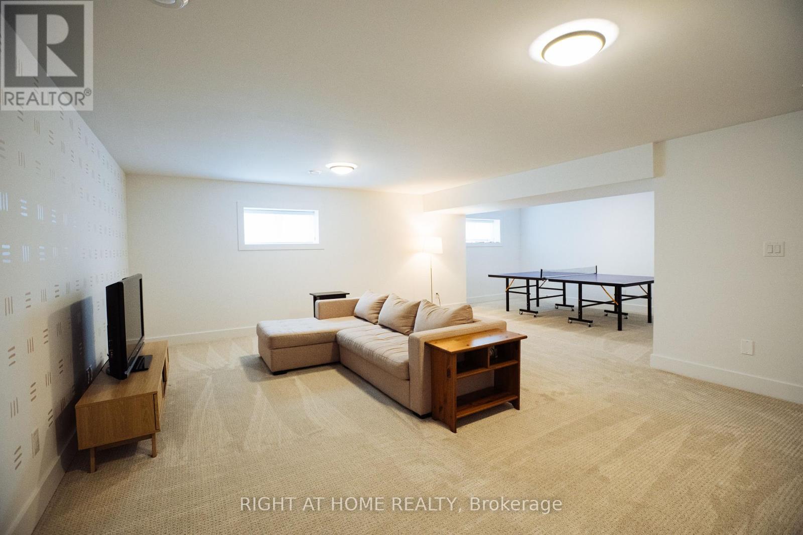 Fully furnished and *All-Inclusive* - Included: Access to The Shed (saltwater hot tub, pool, sauna, gym, party room), snow removal, heat, hydro, gas, Rogers cable & wifi. This is the largest model in Windfall, boasting over 3,500 sq. ft. of luxurious living space. Double garage (with ski rack) & large driveway = parking for 4 cars. Luxurious Main Bedroom w/ King bed & vaulted ceiling, large w/i closet & ensuite w/ double vanity, soaker tub & massive shower. Guest room with Queen Bed, large w/i closet & ensuite with shower. 3rd & 4th bedrooms each have bunkbeds, blackout curtains, and LED lights for the kids. Large Media room on 2nd floor with 65" TV. 5th bedroom & 5th bathroom are in basement as well as large living area with a 2nd TV & play area including ping-pong table. Dining room seats 8 comfortably & the island seats 4. Appliances are all GE Cafe & includes a 36" gas range. Covered rear deck includes gas line BBQ, picnic table & rocker chairs. Front office includes a printer. 3 adult bikes, 3 kids bikes, fire pit also available for use. Price is per month. One month minimum. Available starting November 1st $8,000 for November, $10,000 for December. Not available Dec 27 2025 - March 31st 2026. $7,000/mos for April/May 2026, $8000 for June 2026, $10,000/mos for July/August 2026 (id:64974)