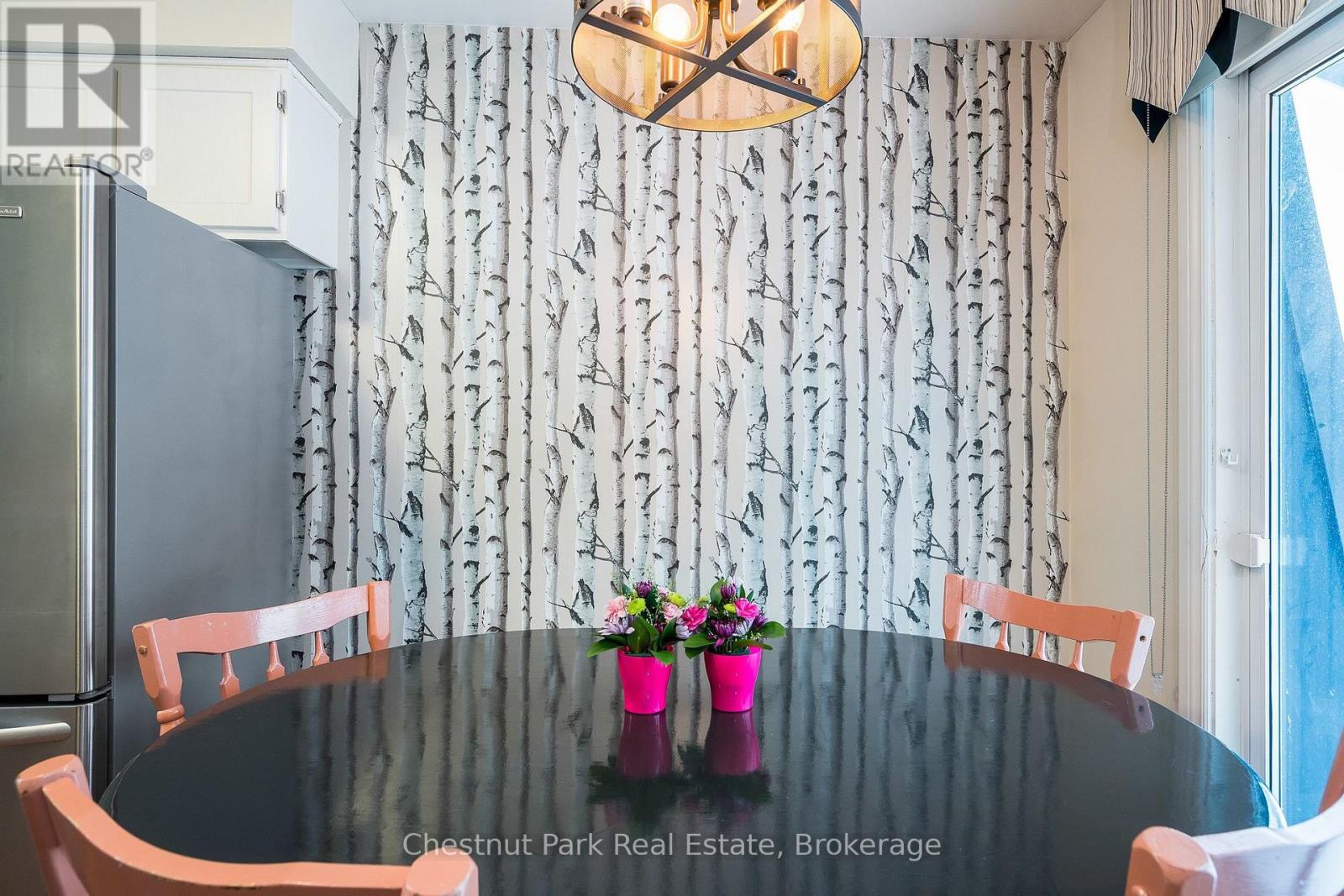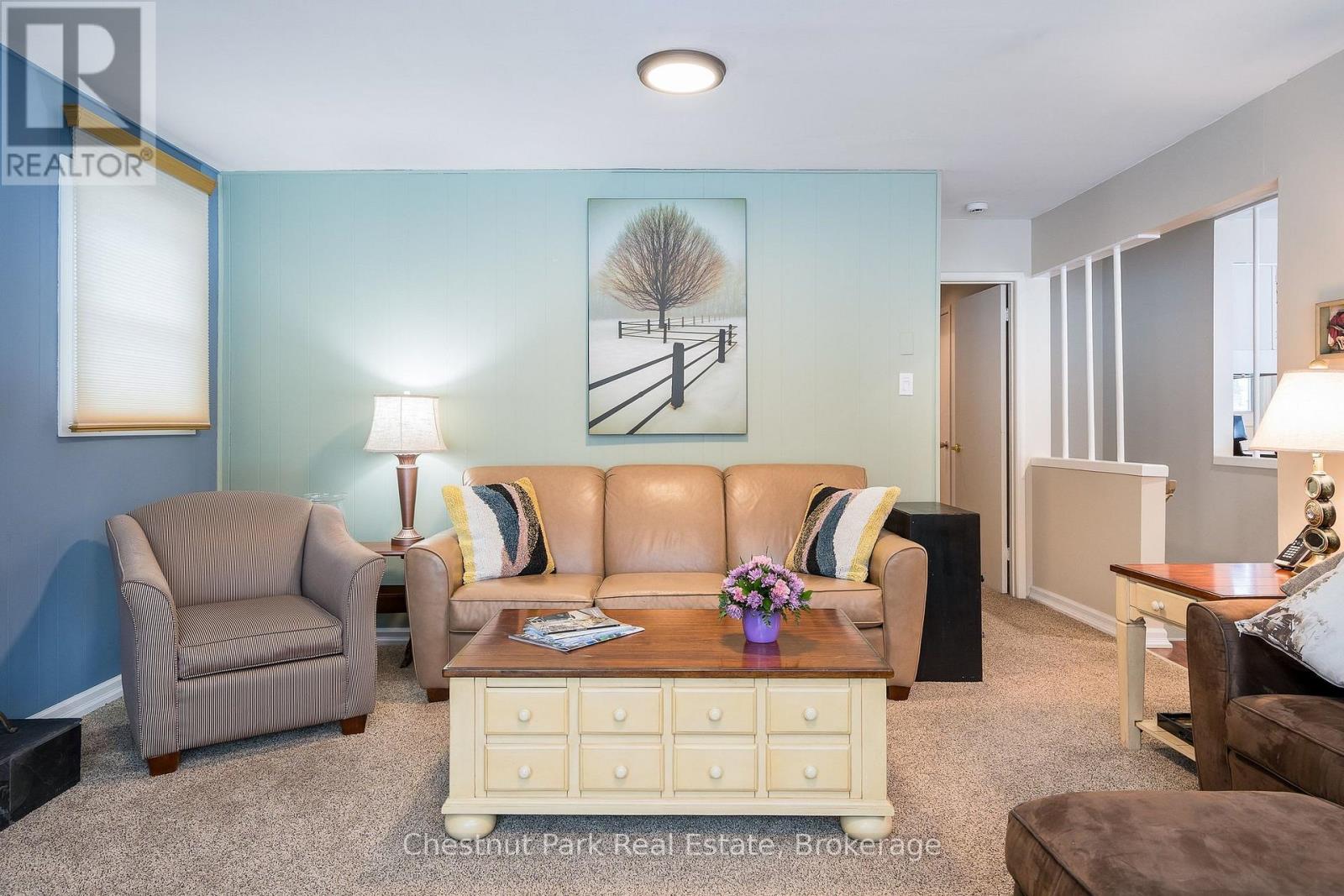 Turn-Key - Leave your car in the driveway and live the ultimate mountain lifestyle, ideally located on one of the best streets at the base of Blue Mountain. Just walk through your back yard, across the road and catch the first chair lift of the day. A short 2 minute walk to the Village at Blue, this street is known for its welcoming neighbours and unbeatable convenience - everything you need is steps away. This reverse floorplan home offers 1760 sq. ft. of finished living space with 6 bedrooms and 1 full bath and 2 1/2 baths. Backing onto the panoramic views of the ski hills, here kids can run and play freely in your yard, take your pets for long walks or enjoy après ski gatherings around a backyard firepit with family and friends. Upon entering the main floor foyer, 4 bedrooms and a 2-piece bath with separate shower provide comfort and flexibility for family or guests. A utility room with ski storage, boot/hat and mitt cubbies and back door access to your yard offer immediate ski access. Upstairs the open floor plan kitchen and dining room open to a small deck with views of the mountain. The family room features an inviting wood-burning fireplace and sliding doors that walk-out to a large deck designed for great gatherings with front-row panoramic views of Blue Mountain's night-lit ski runs or summer BBQ's. Down the hall is another guest bedroom, a primary bedroom and 4 pc bathroom. Five minutes to private ski clubs, golf courses, and a short ride to Northwinds Beach, the Georgian Trail, and downtown Collingwood's shops, restaurants and cultural attractions or the charming town of Thornbury 15 minutes away. Don't miss your chance to start your next chapter in Southern Georgian Bay. Enjoy slopeside living at its finest. (id:64974)